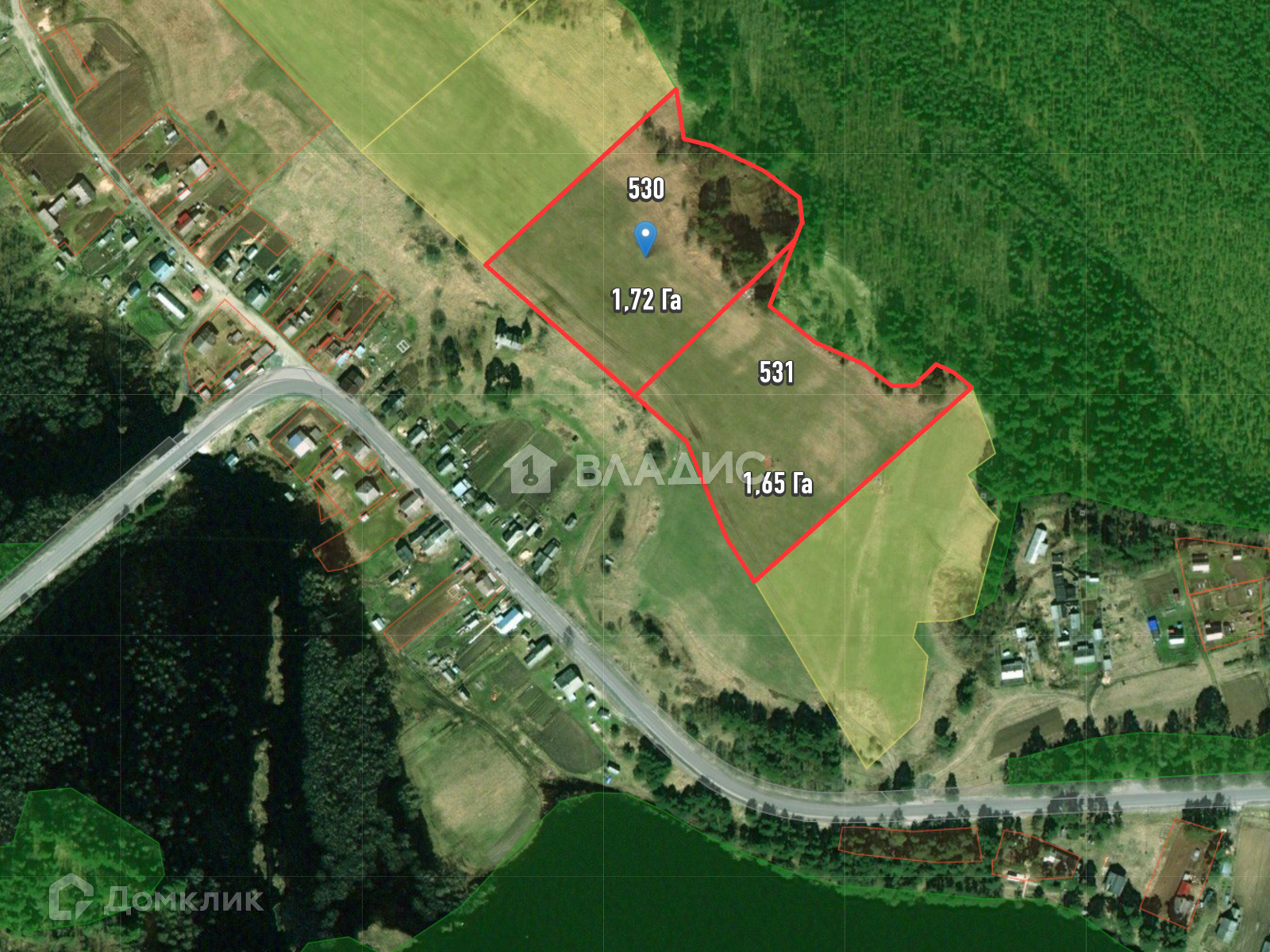 - С двух стоpoн от участка озepa, одно чеpез дорогу (100-150 м), второе с другой стороны участка - лесная ламбушка (200м)