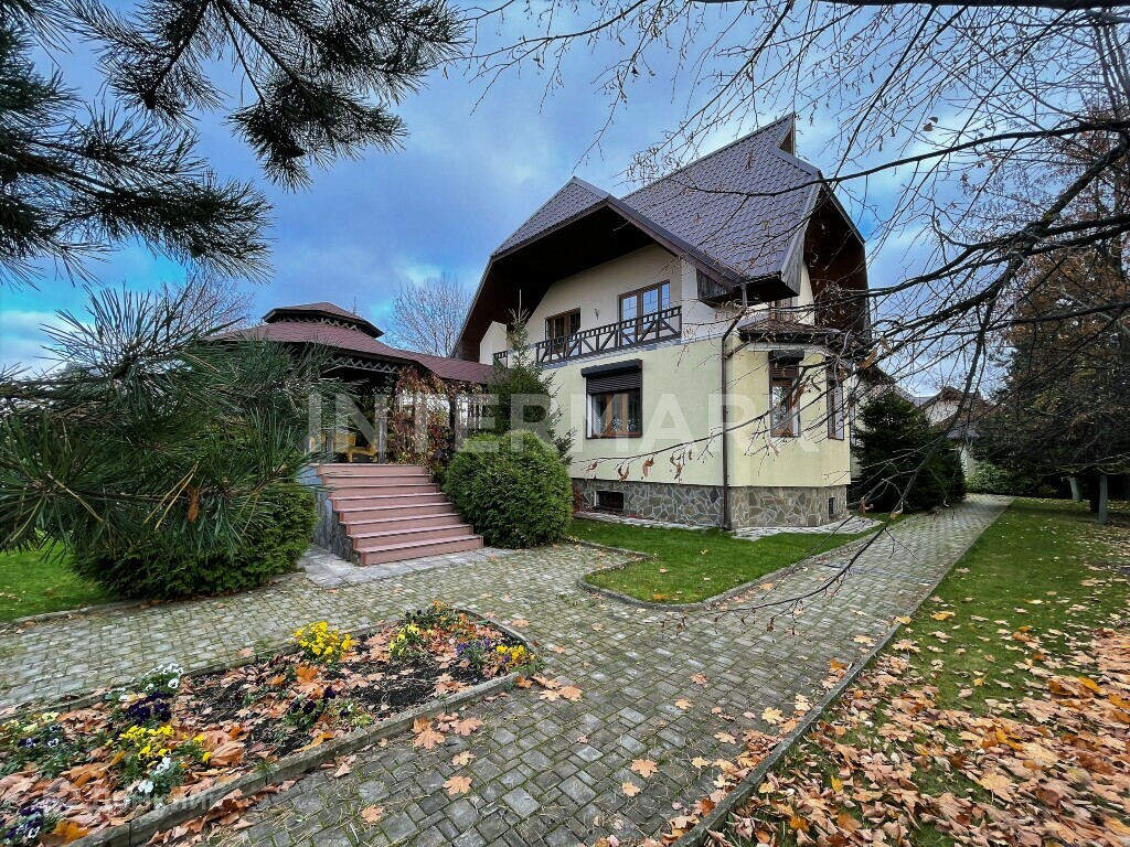 с/у; 2 уровень - холл, 3 спальни с балконами и спальня с гардеробной, просторная ванная комната. Дом расположен на участке общей площадью 18 соток. Помимо основного дома на участке расположены: отдельно стоящий гараж с квартирой для персонала на втором этаже (100 кв.м.). Дом оборудован комфортной SPA-зоной с сауной. В коттеджном поселке Манюхино современные инженерные коммуникации: газоснабжение - магистральное, подведено электричество, водоснабжение - скважина, канализация - септик. Проведены телекоммуникации: интернет, спутниковое tv. На участке находится отдельно стоящий гараж. Год постройки 2007