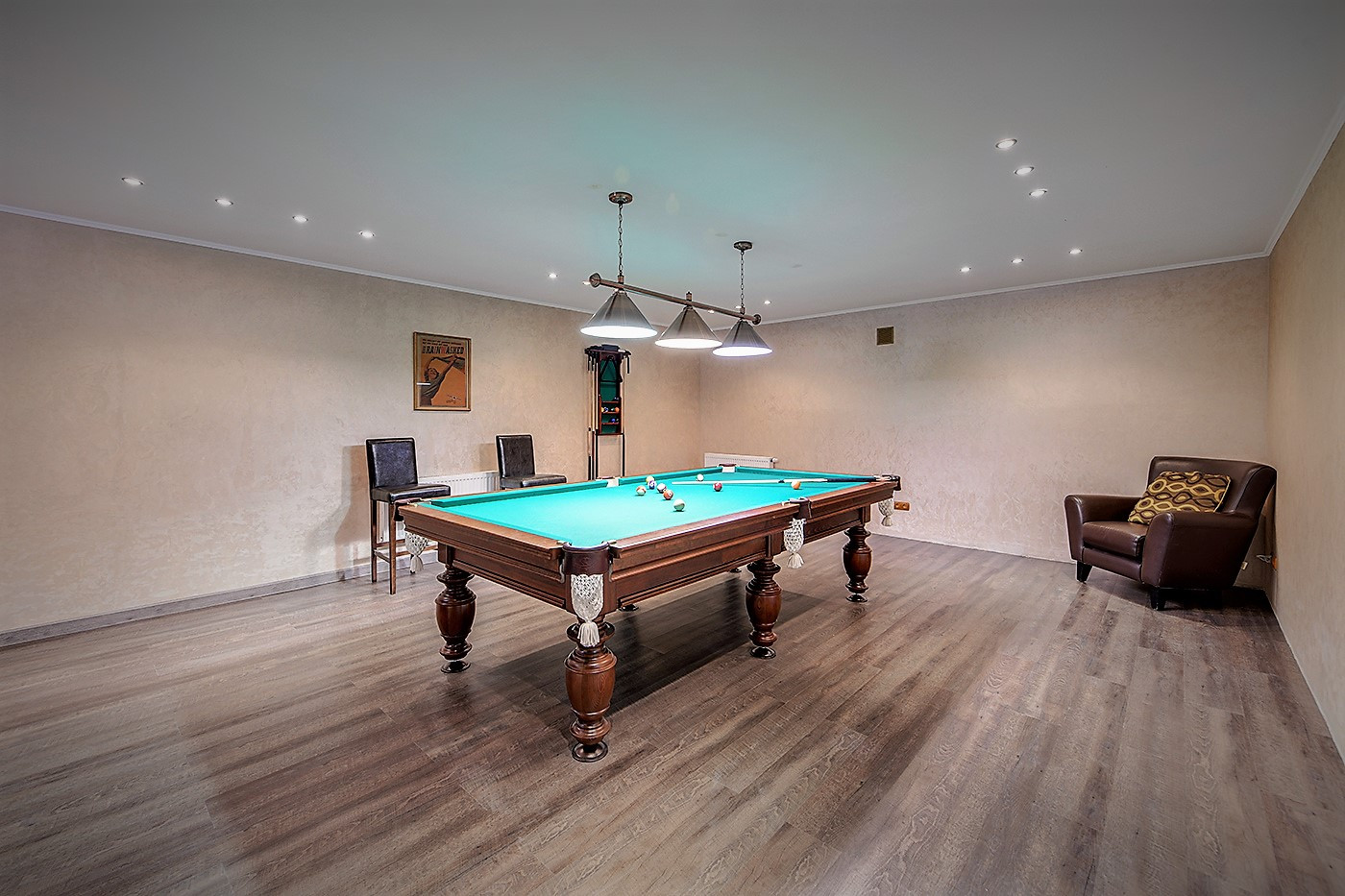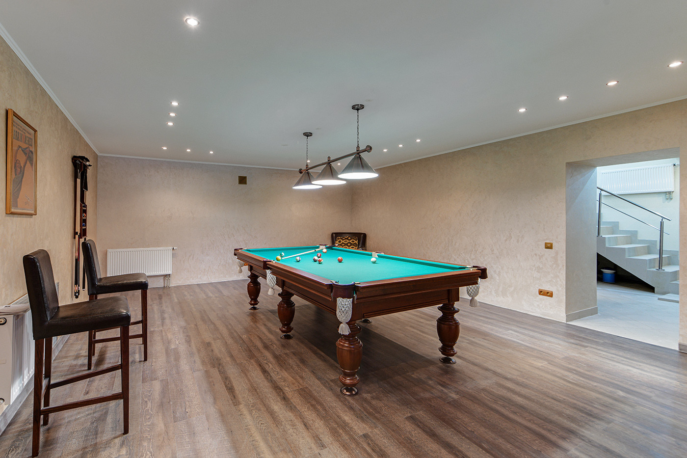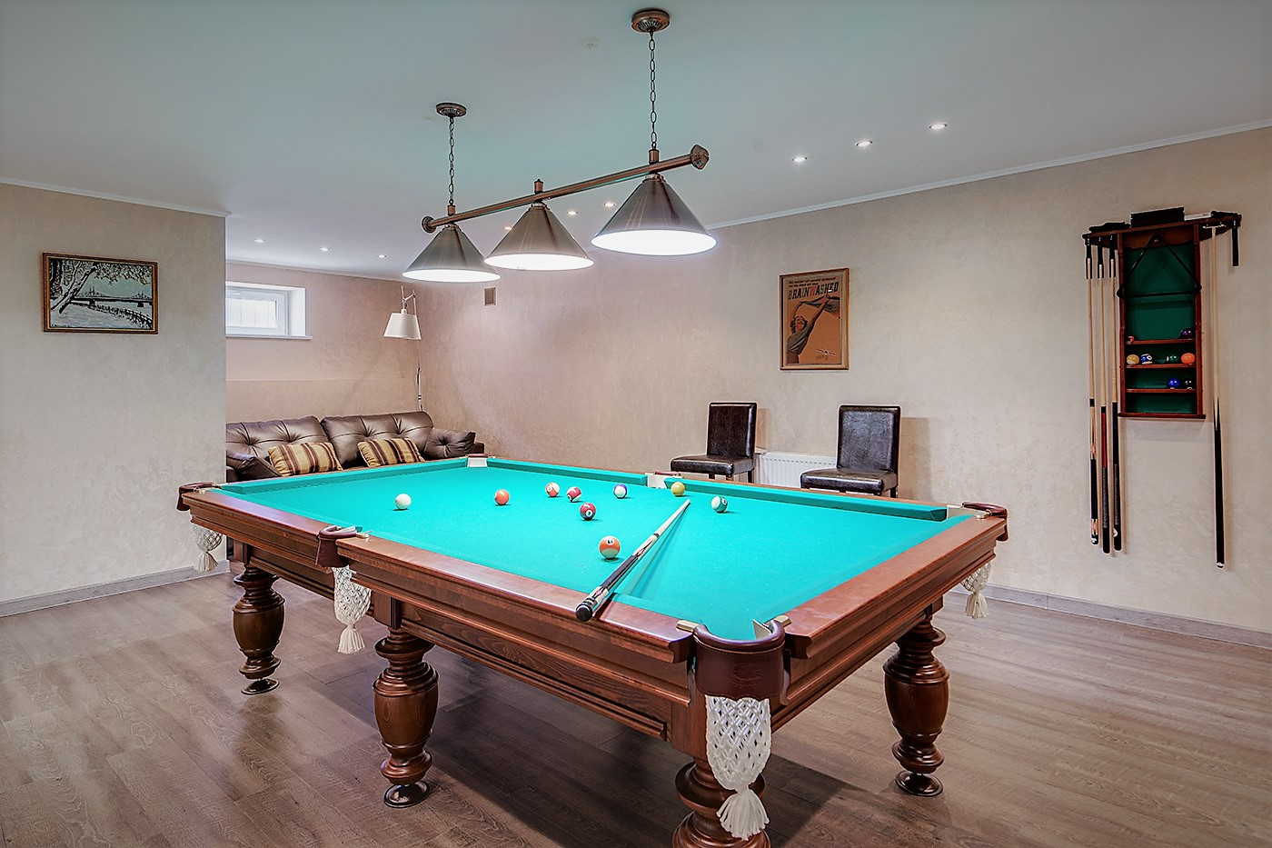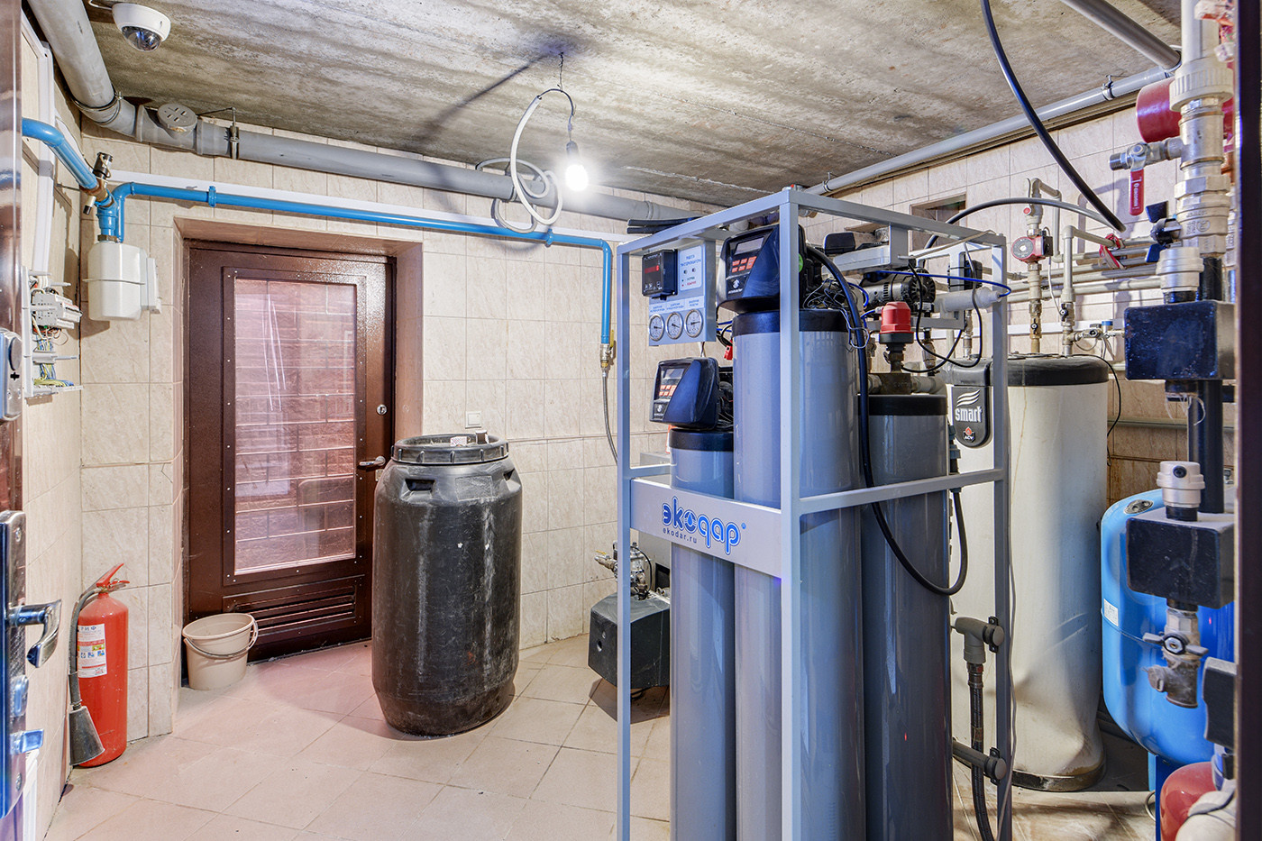 Цокольный этаж с окнами, здесь расположена бильярдная, хозяйственная зона, Техническая зона