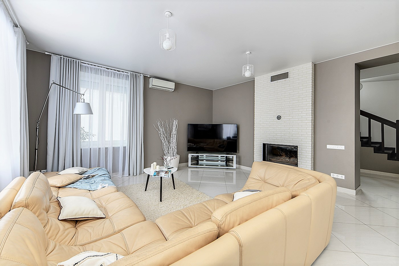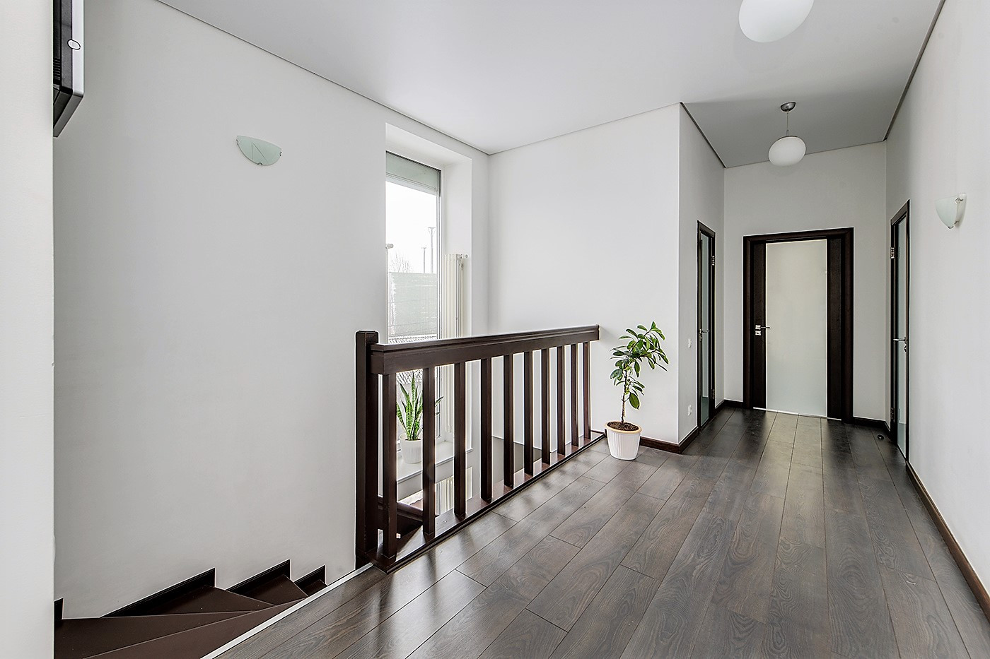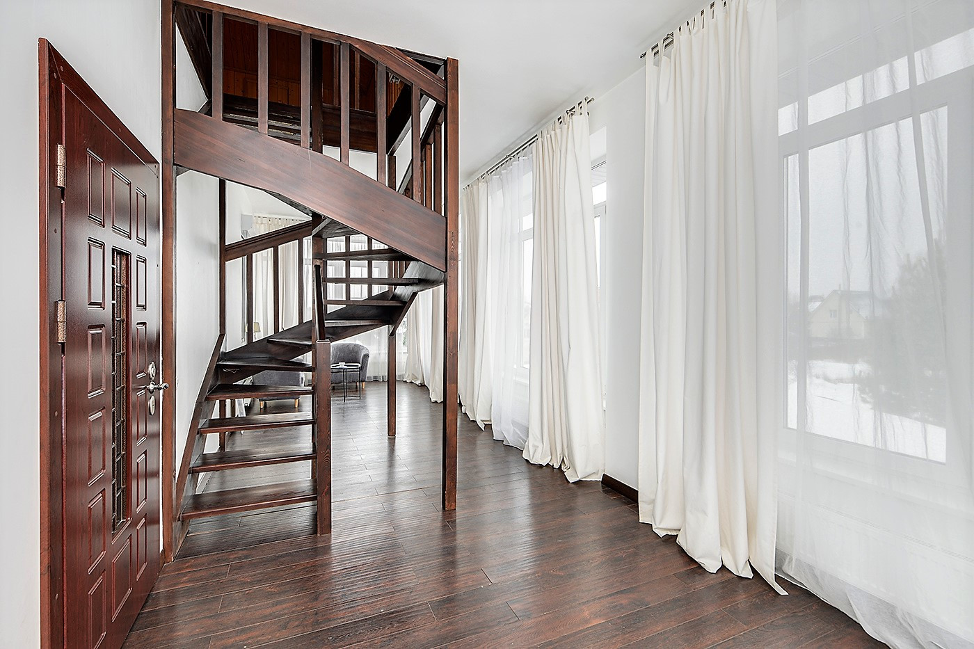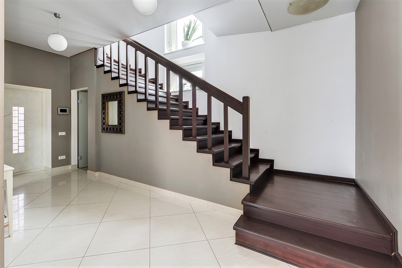На 1-м этаже пол - дорогая мраморная плитка, на 2-м ламинат высокого класса
