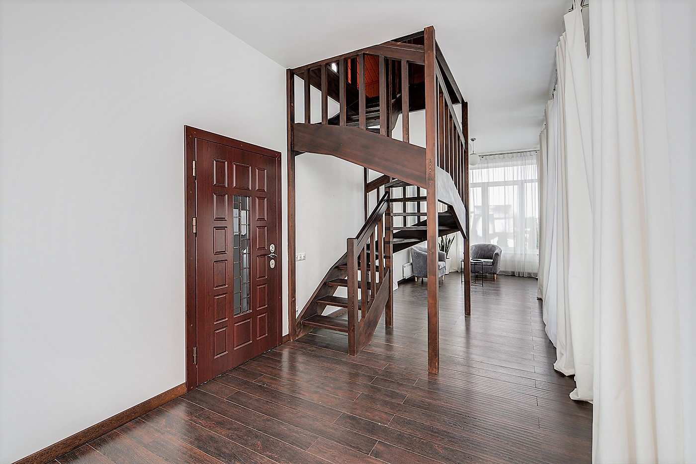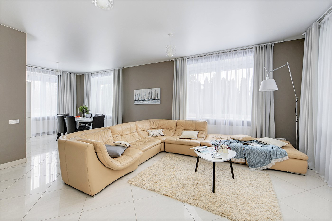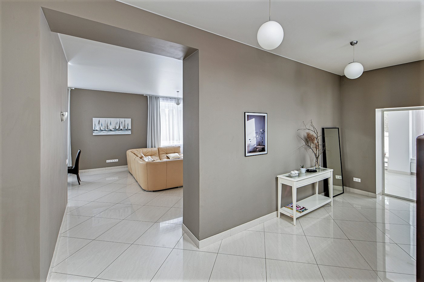 На 1-м этаже пол - дорогая мраморная плитка, на 2-м ламинат высокого класса
