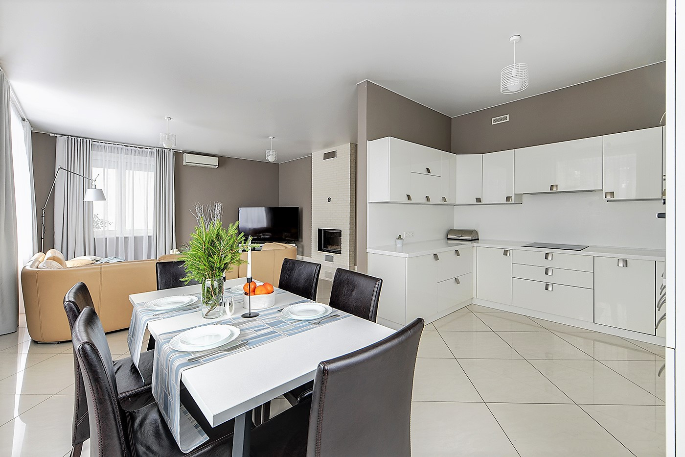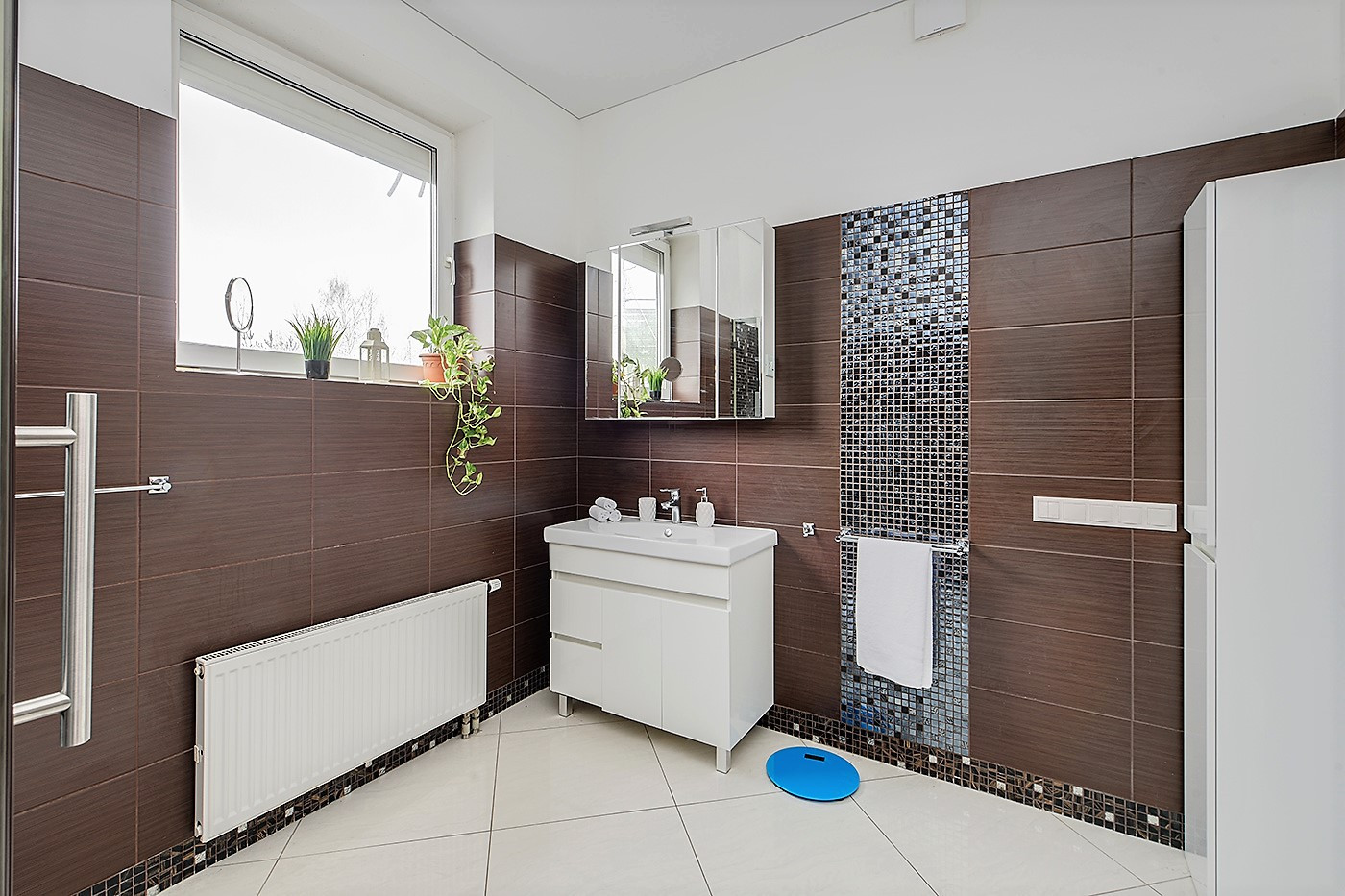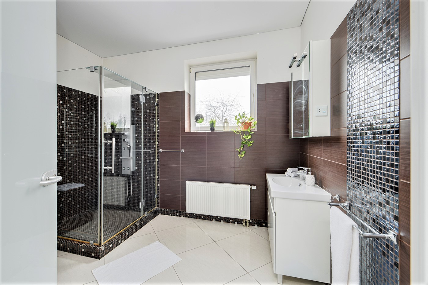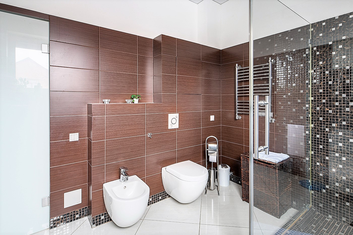 На 1-м этаже пол - дорогая мраморная плитка, на 2-м ламинат высокого класса