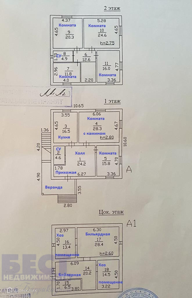 ДОМ: 2-ух этажный дом (четыре уровня), материал постройки пеноблок + кирпич, площадью 308,2 кв. м. На 1-ом этаже расположены: уютная веранда, прихожая с гардеробной зоной, холл, санузел с душем,  кухня, гостиная с дровяным камином, комната; на 2-ом этаже: четыре комнаты, санузел с ванной,. Есть мансардное помещение по периметру дома, а также цокольное помещение с бойлерной, бильярдной, двумя хозяйственными помещениями. Перекрытия: железобетонные плиты. ПРОПИСКА разрешена.