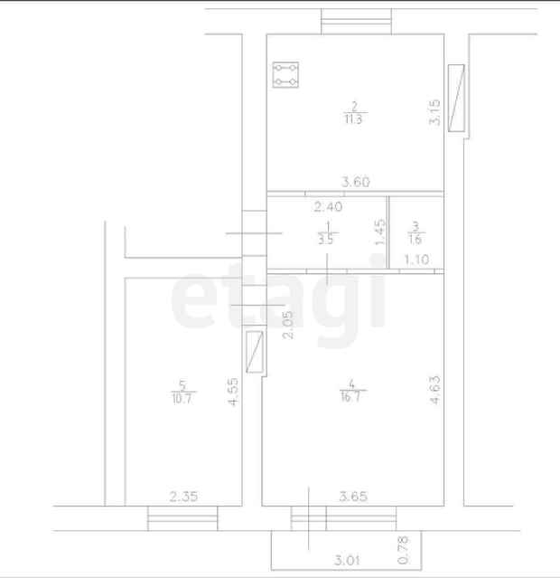 Общая площадь 43.8 м2