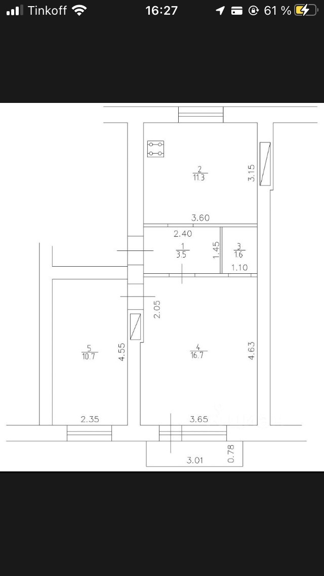 Общая площадь 43.8 м2