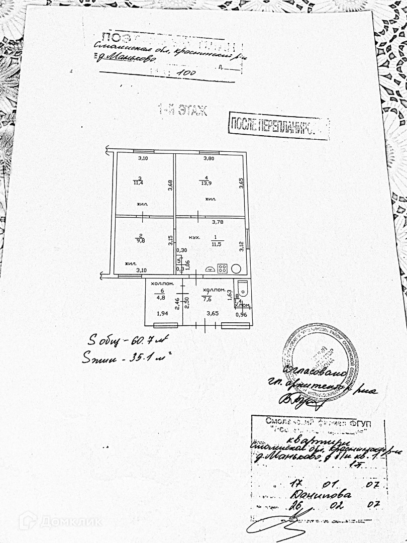 Общая площадь 60.7 м2