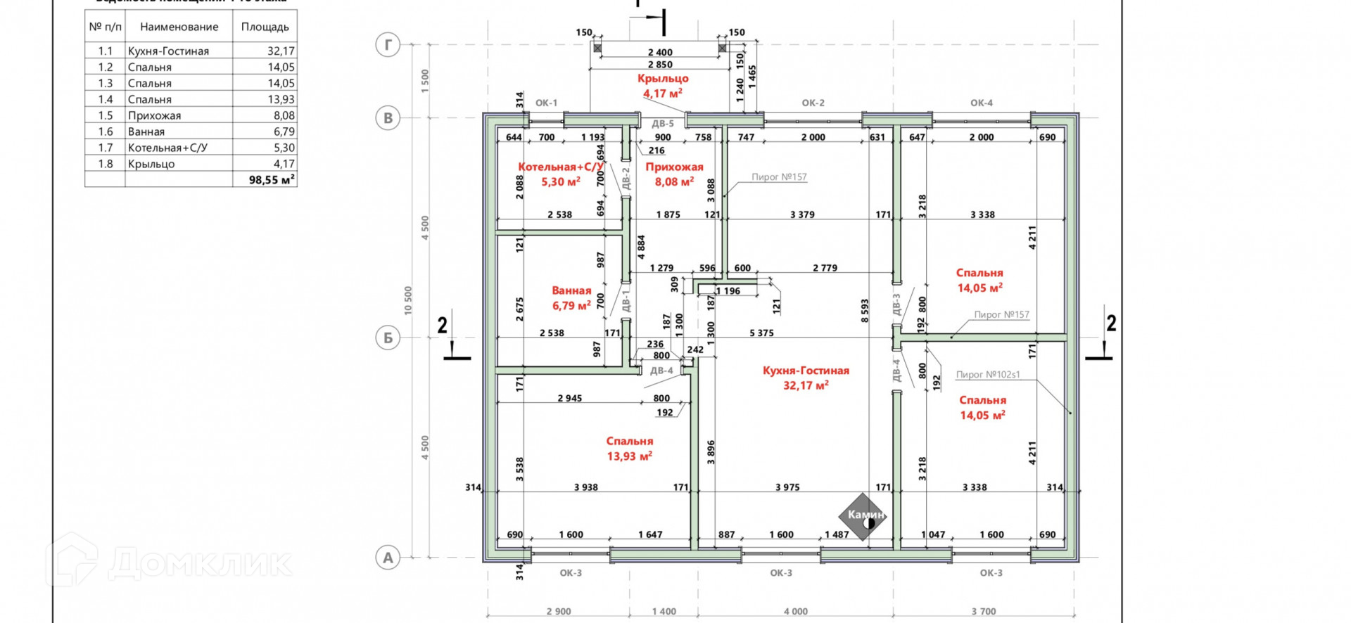 Общая площадь 99 м2
