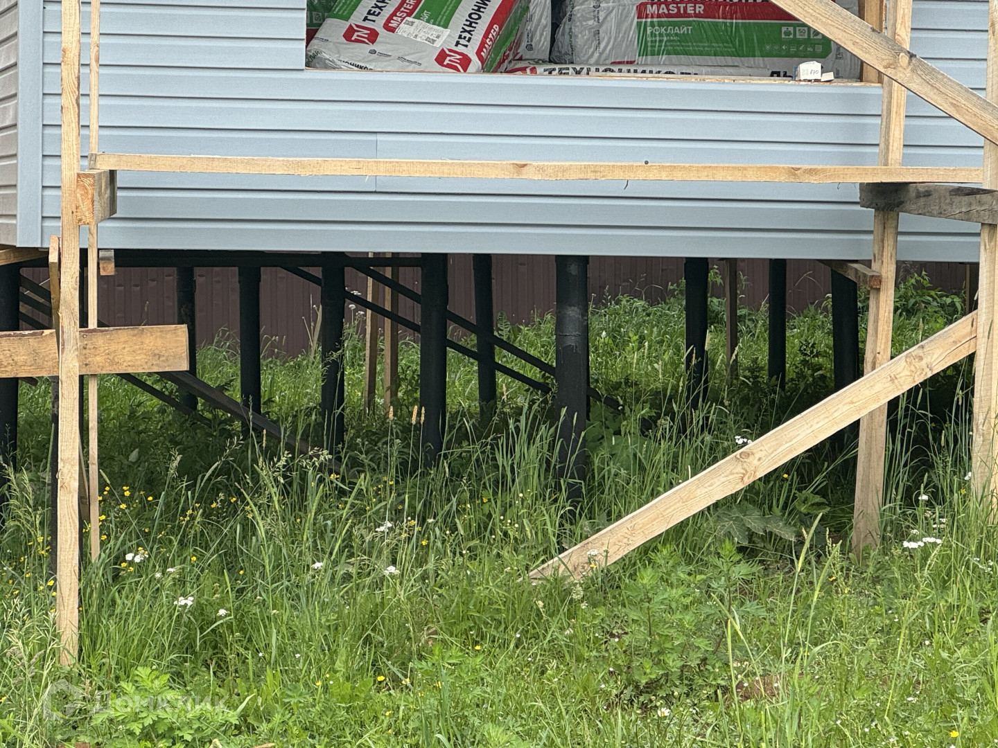 Дом на винтовых сваях с очень удачной планировкой на три комнаты и просторную кухню-гостиную, два санузла, бойлерную и коридор.