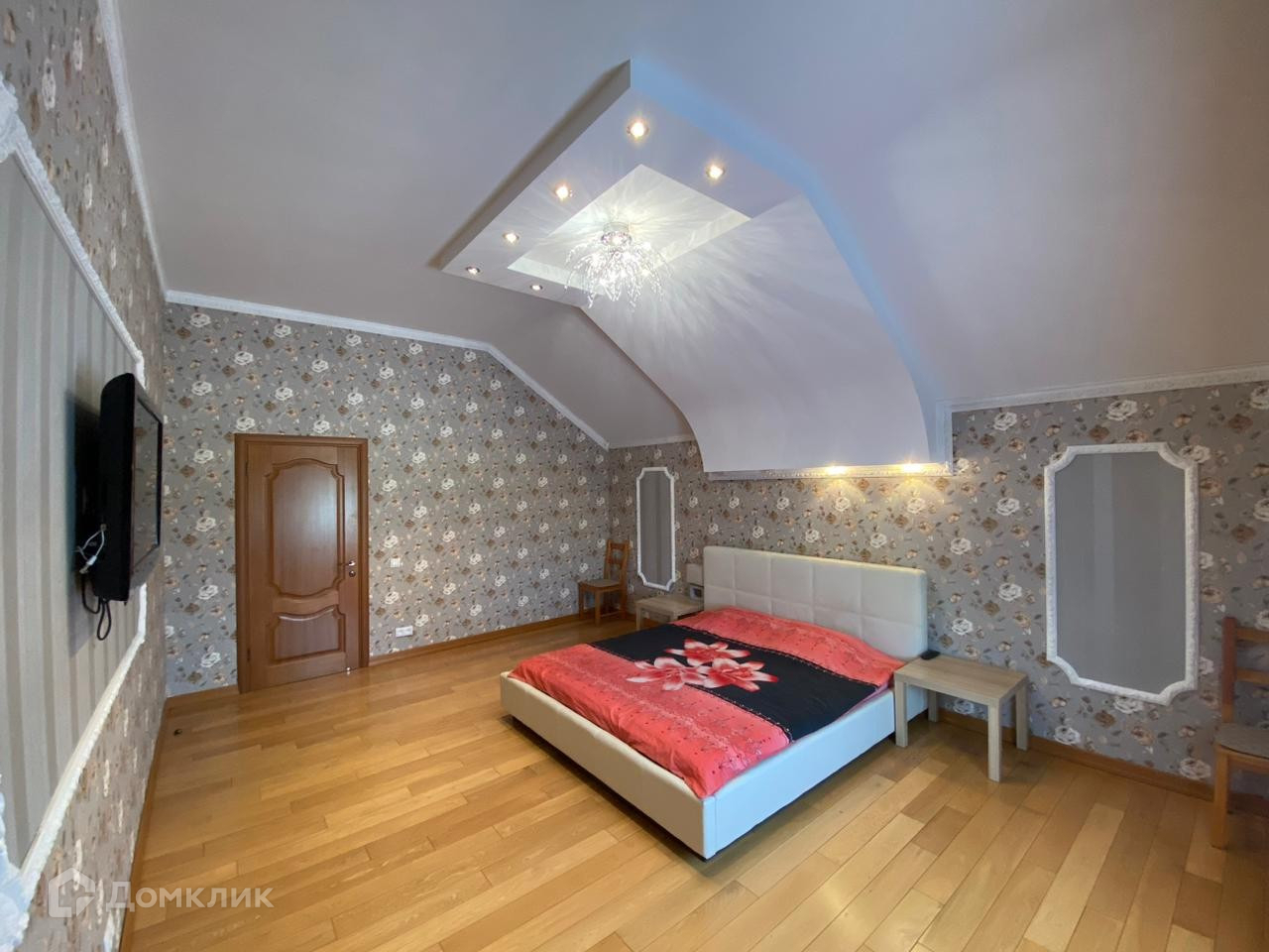 Четыре комнаты на втором этаже, два санузла , финская сауна, две просторные гардеробные комнаты-на каждом этаже, огромный зал (62 кв.м),полностью оборудованная кухня с посудомойкой- 25 кв.м., два холодильника, духовой шкаф.Теплые полы везде! Плазменные телевизоры во всех комнатах! В доме есть Wi-Fi!