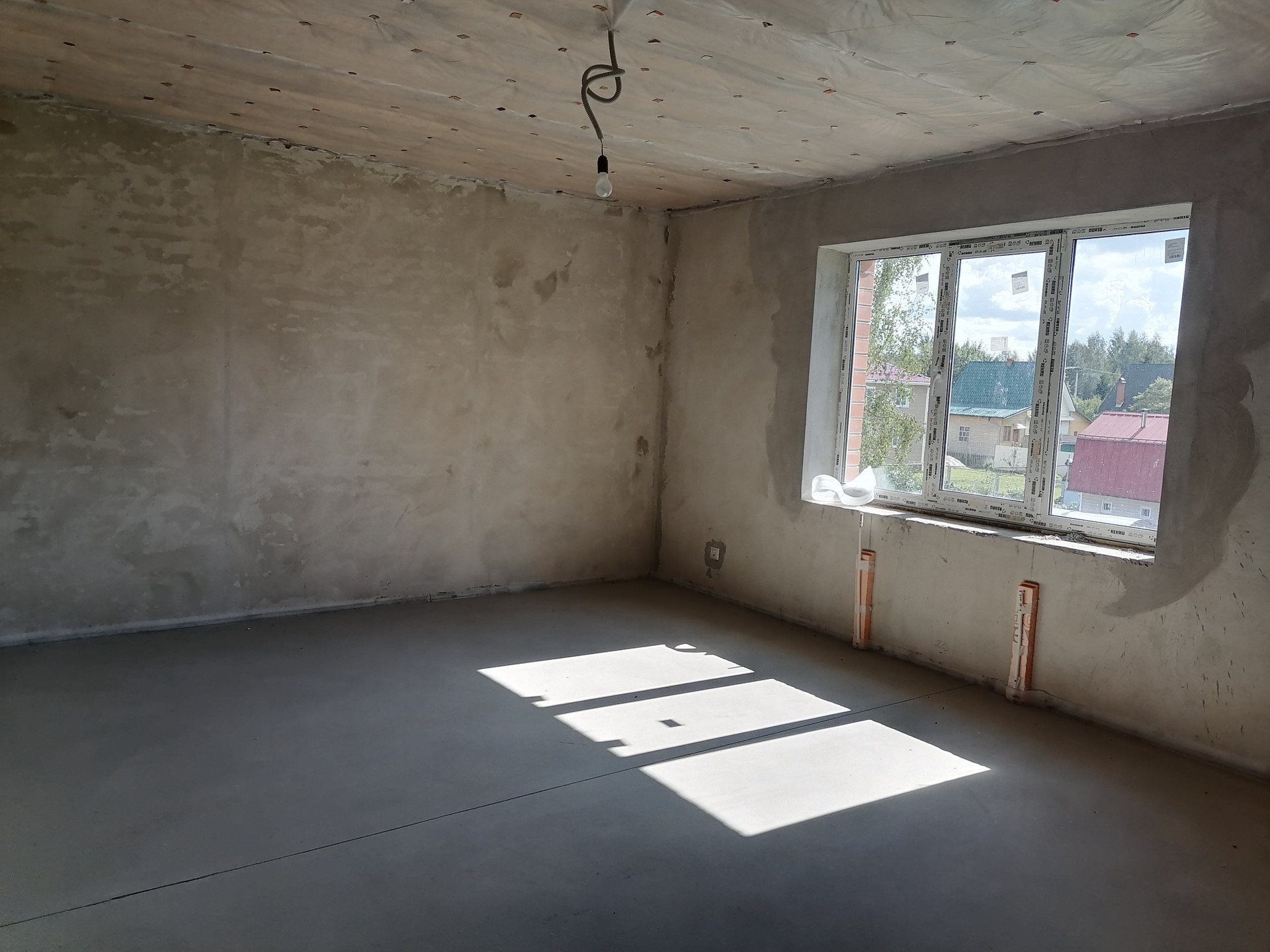Дом под чистовую отделку. Заведены и работают все коммуникации - отопление (радиаторы и тёплый водяной пол), водоснабжение, канализация, электричество.  Участок ровный, 15 соток, огорожен забором, крайний к лесу. Рядом большой пруд, школа, садик, магазины. В шаговой доступности автобусная остановка, в 2х км г. Чехов.