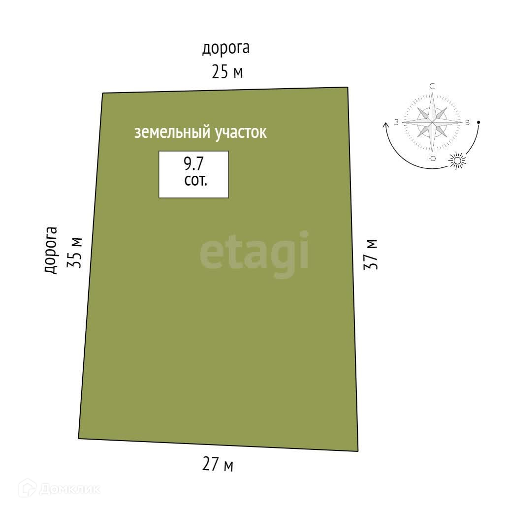 Площадь участка 9.7 сот.