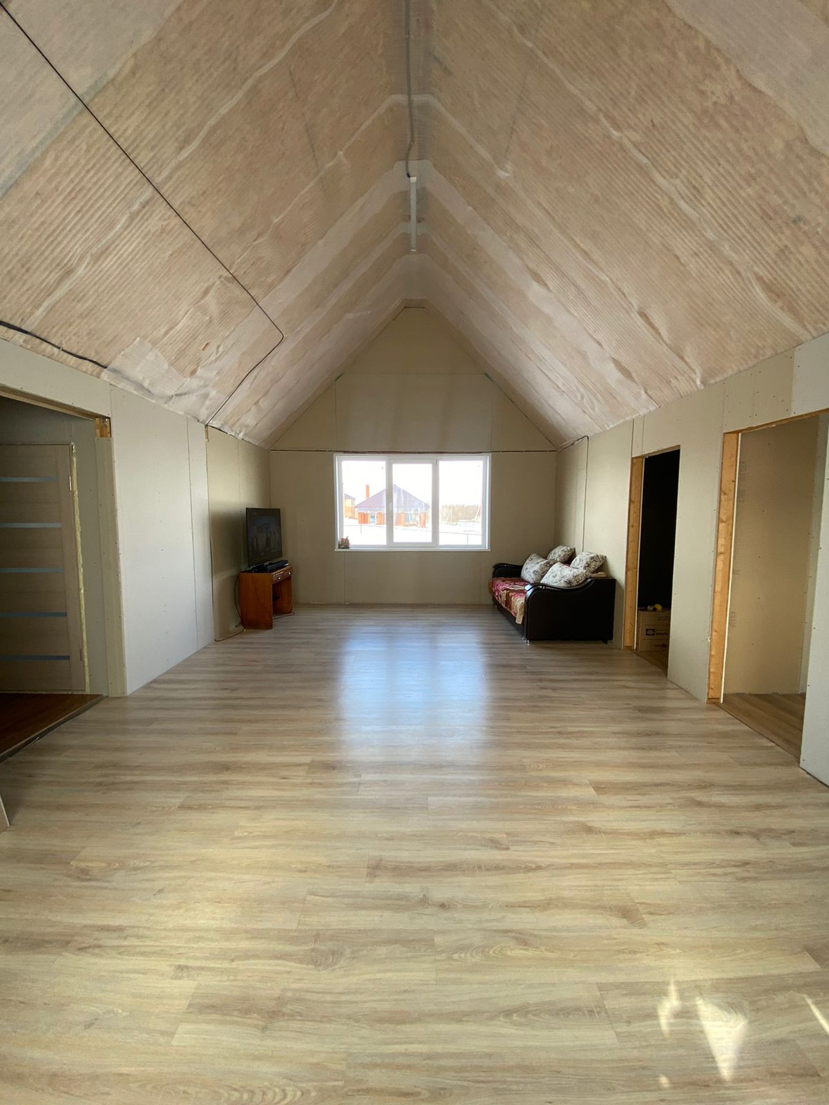 -Ламинат по всему дому+теплые полы.