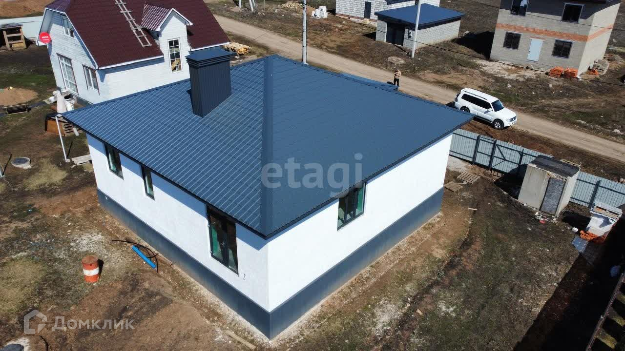 Участок прямоугольной, правильной формы 10 соток, огорожен профнастилом. Дом 111,5 м2, построен из газоблока 400, утеплитель, фасад короед. В дом заведены все коммуникации: свет, газ, вода, канализация. Отделка получистовая с теплым полом и натяжным потолком, напольное покрытие входит в стоимость, будет подбираться под покупателя, а также межкомнатные двери.