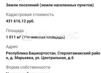 Продается земельный участок под строительство дома (ИЖС) общей площадью 10 соток, в Стерлитамакском районе в д.Верхняя Марьевка (Казадаевский с/с).Экологически чистый микрорайон. Около 7 км от г. Стерлитамак. В микрорайоне будет школа, садик, магазины. Участок правильной формы. Электричество проходит по улице. Газ проходит по улице. Освоение и застройк... |