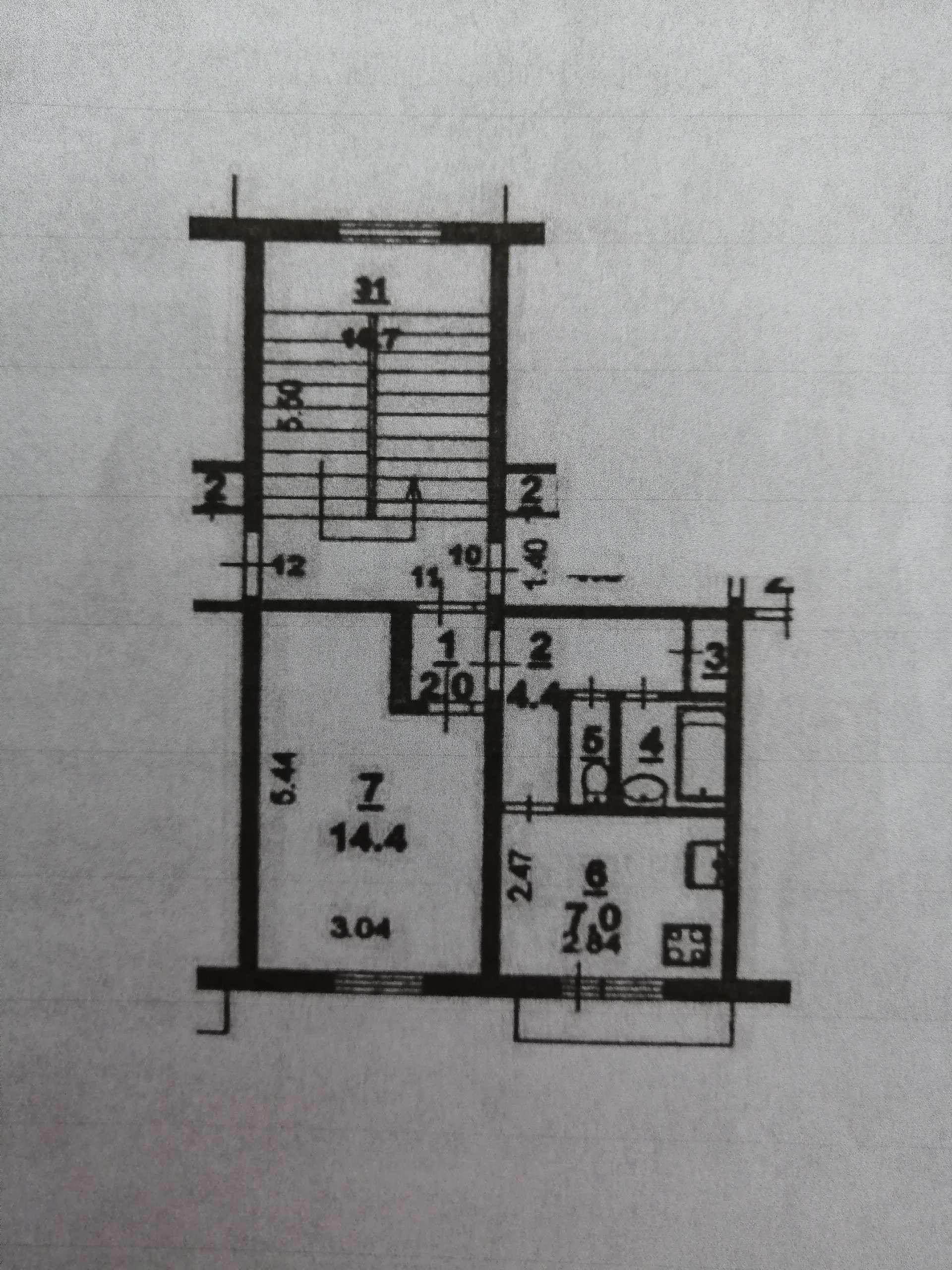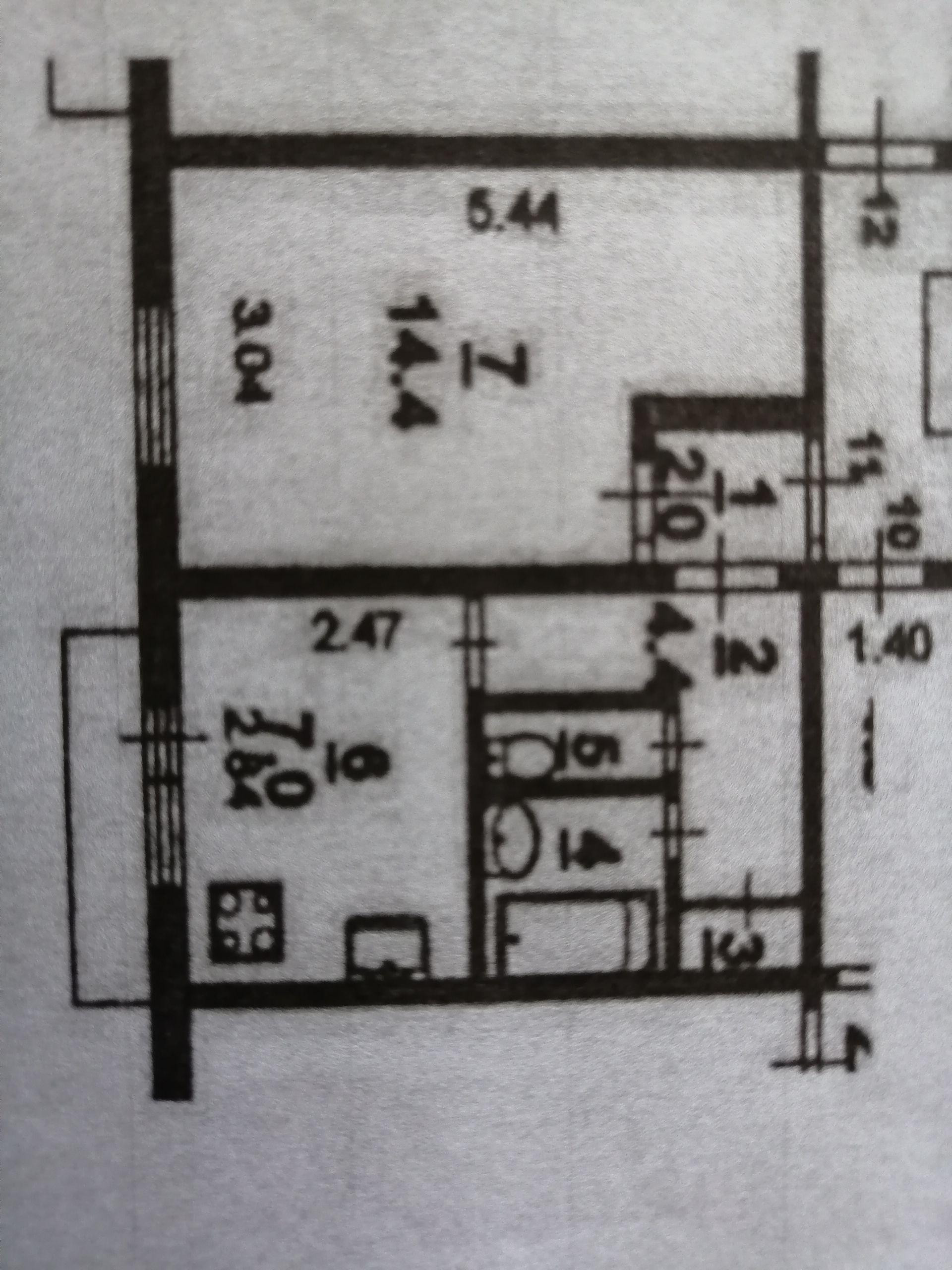 Жилая площадь 21.4 м2