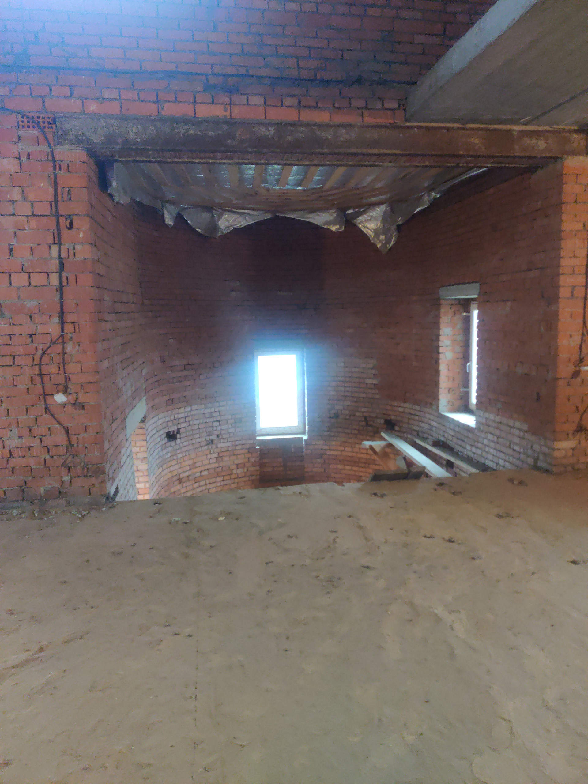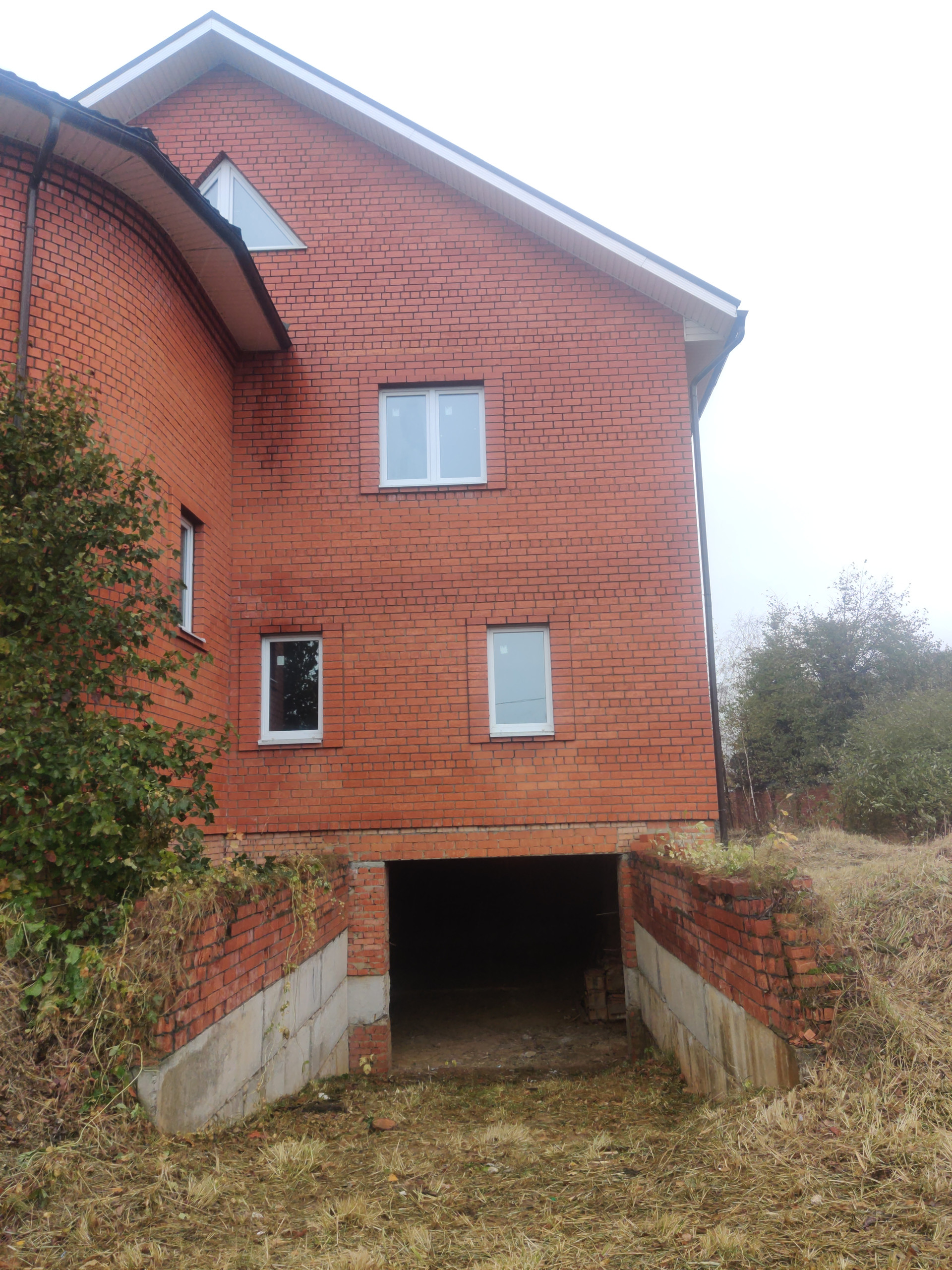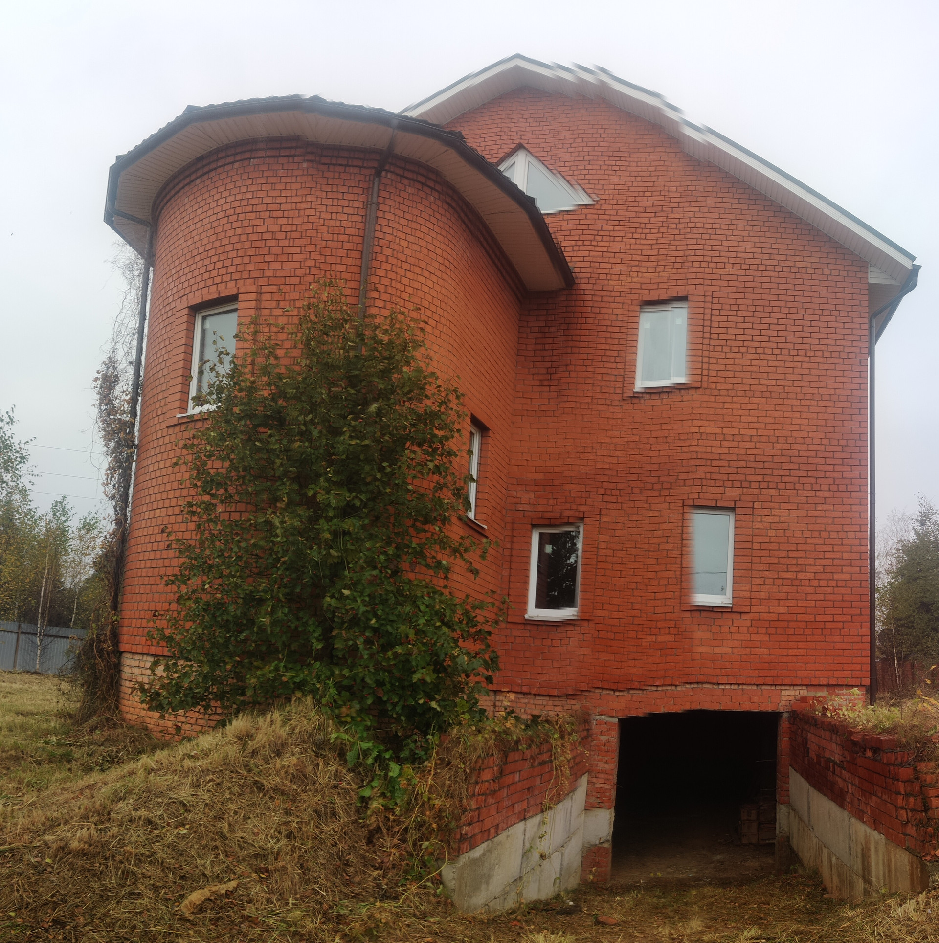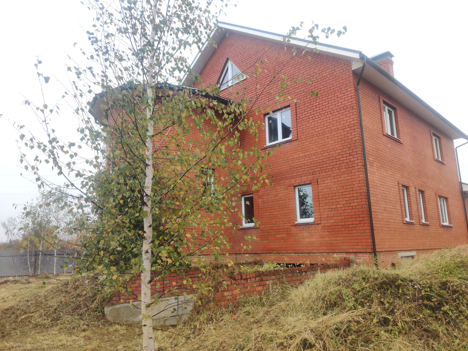 Дом имеет цокольный этаж во весь дом из железобетонных блоков ФБС-6, с заездом для машины, 2-ва полноценных этажа и мансардный этаж из красного облицовочного кирпича, толщина стен 50 см. Во всем доме вставлены окна ПВХ, крыша покрыта металлочерепицей, две входные железные двери.