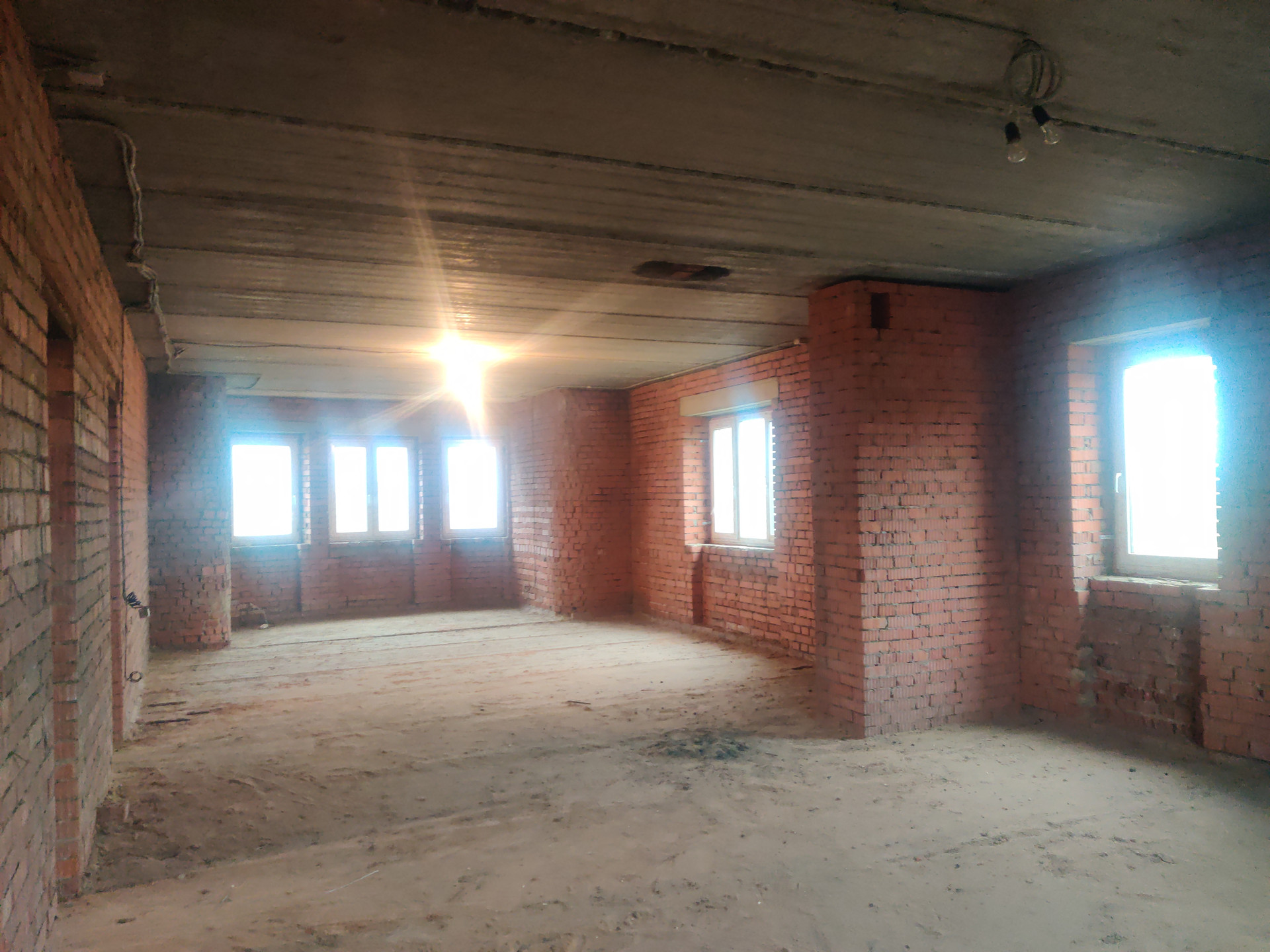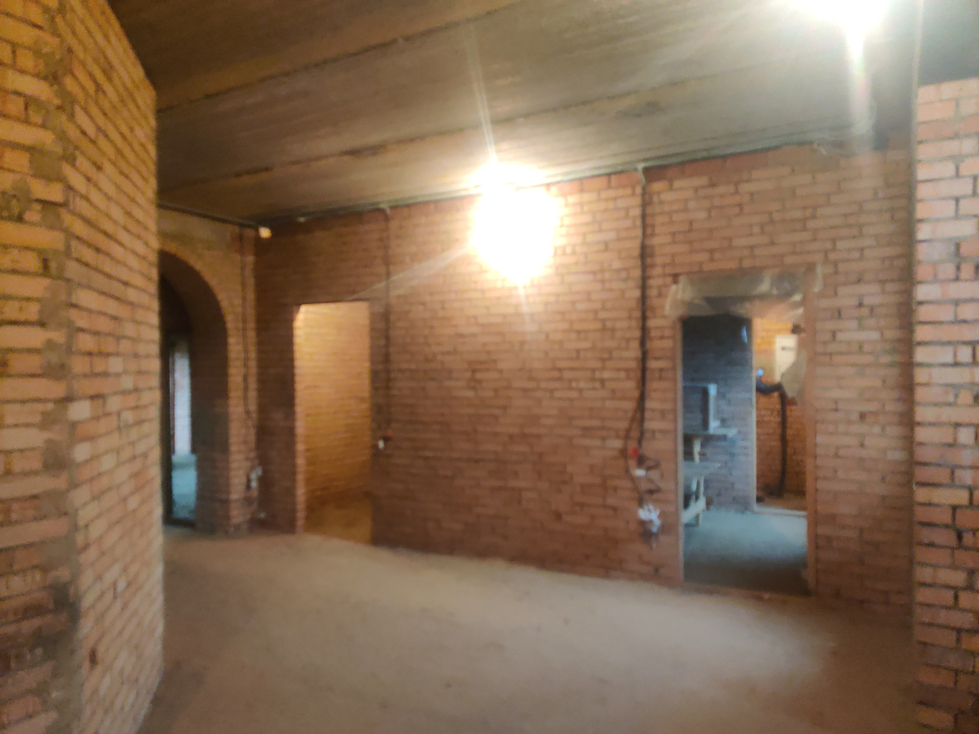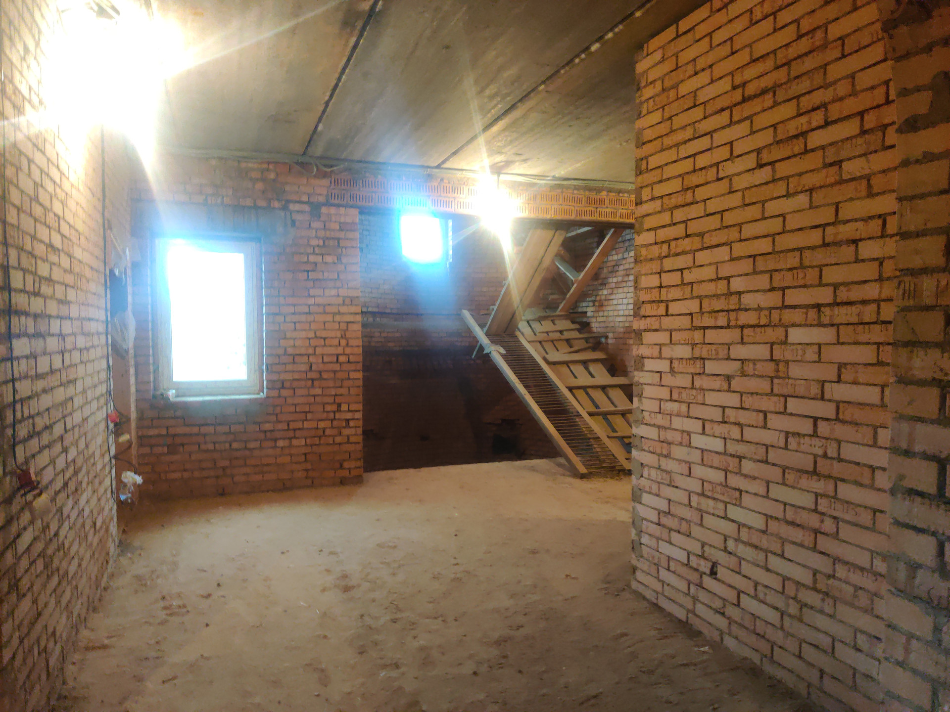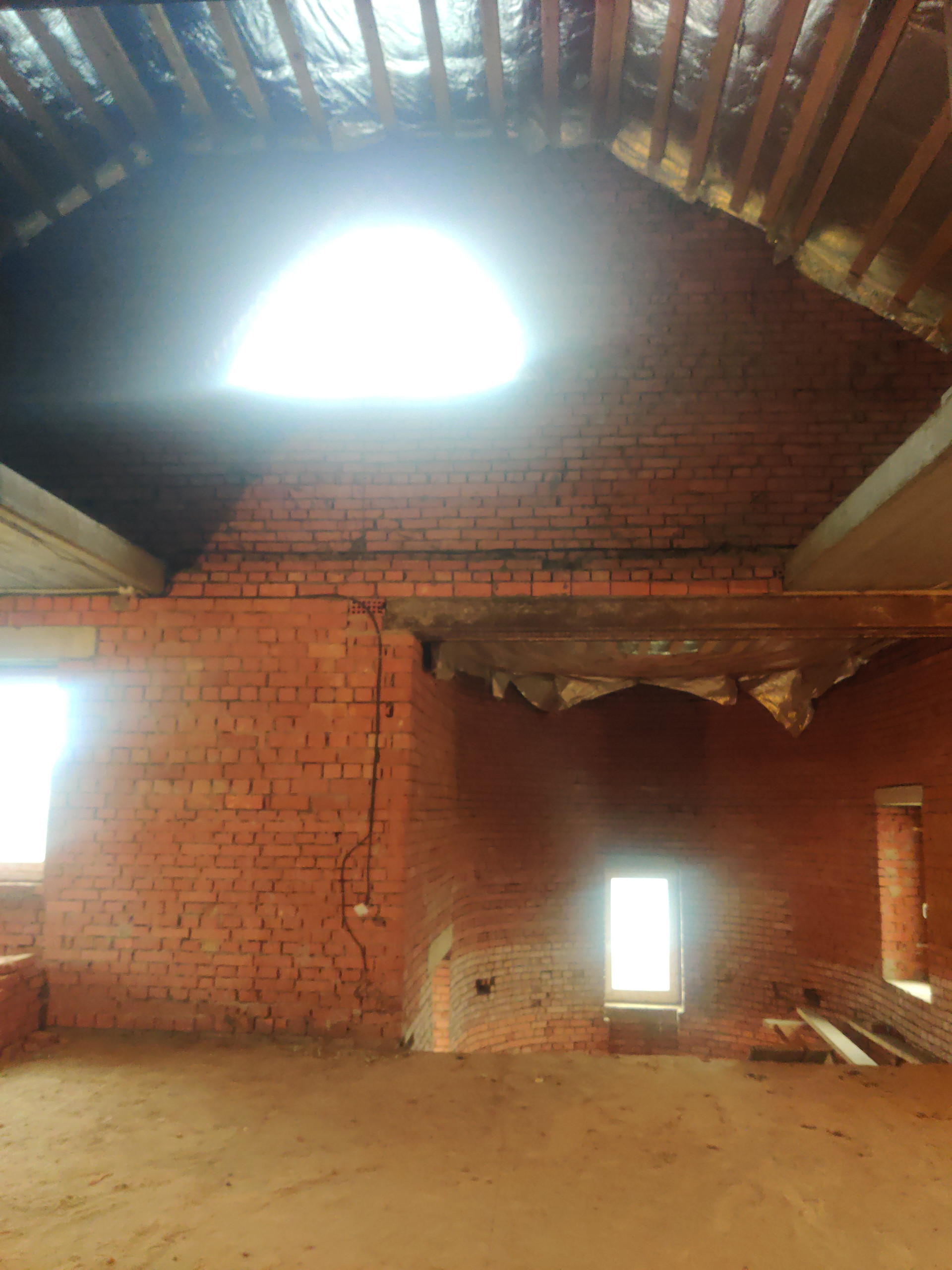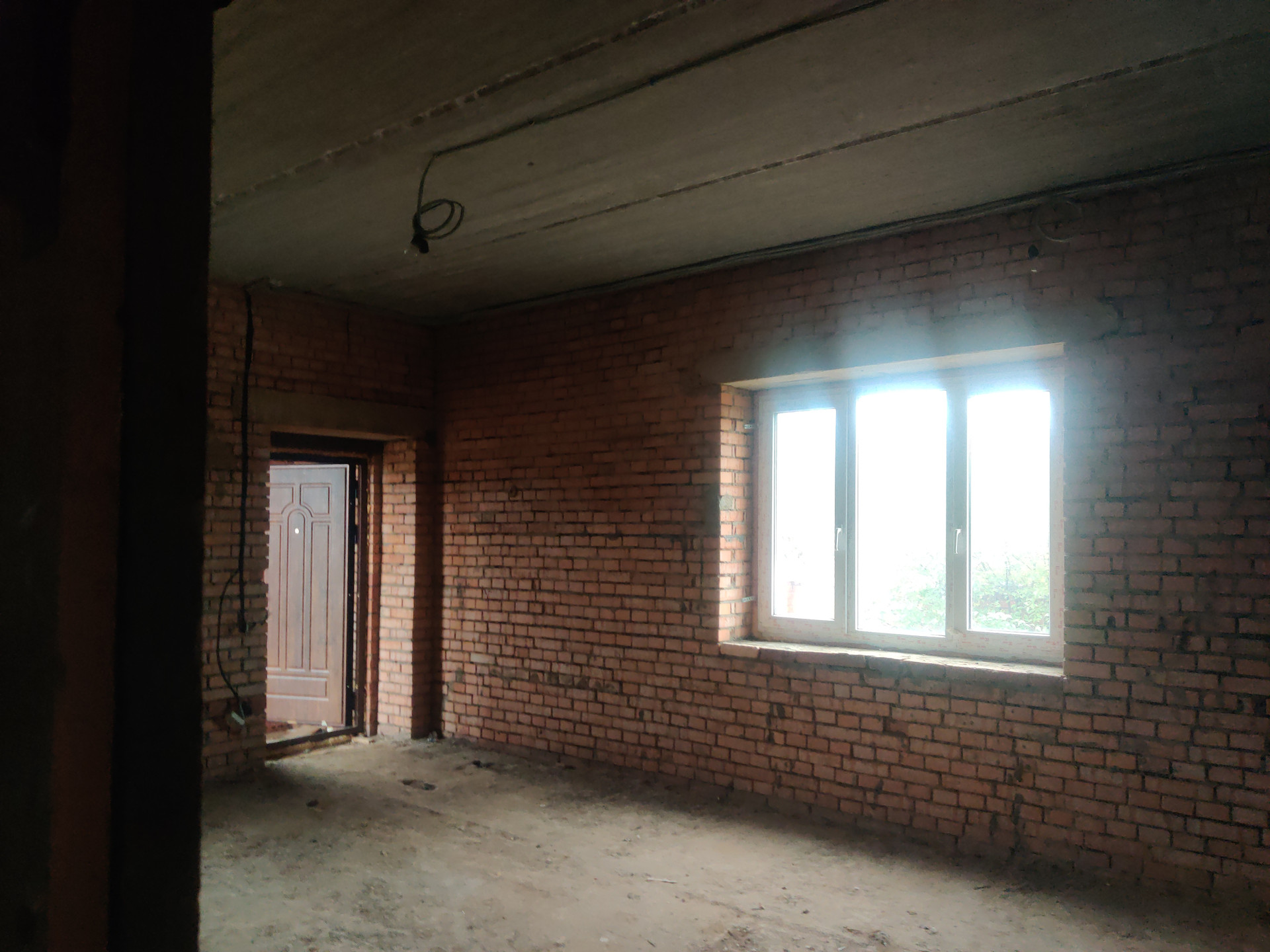 Дом имеет цокольный этаж во весь дом из железобетонных блоков ФБС-6, с заездом для машины, 2-ва полноценных этажа и мансардный этаж из красного облицовочного кирпича, толщина стен 50 см. Во всем доме вставлены окна ПВХ, крыша покрыта металлочерепицей, две входные железные двери.