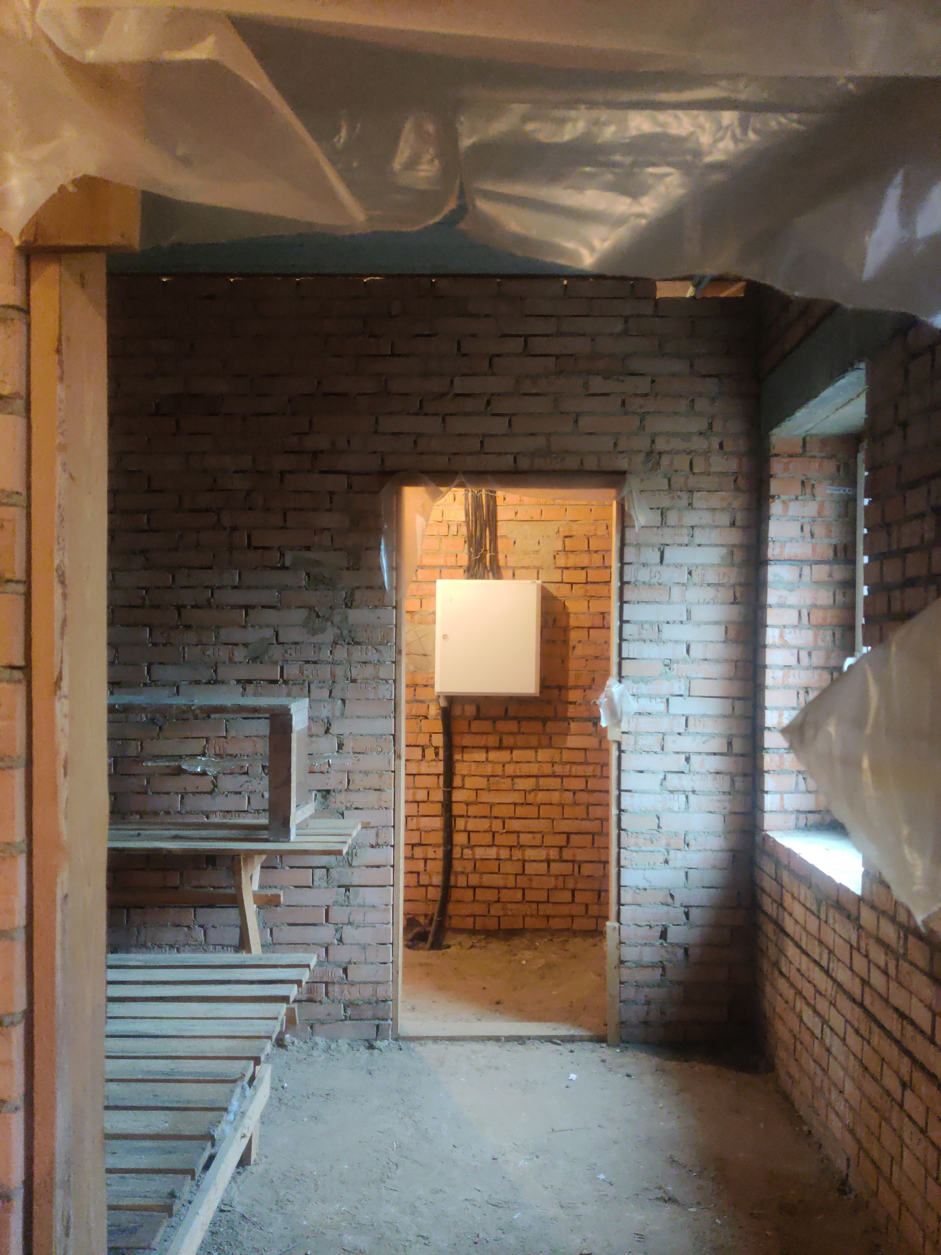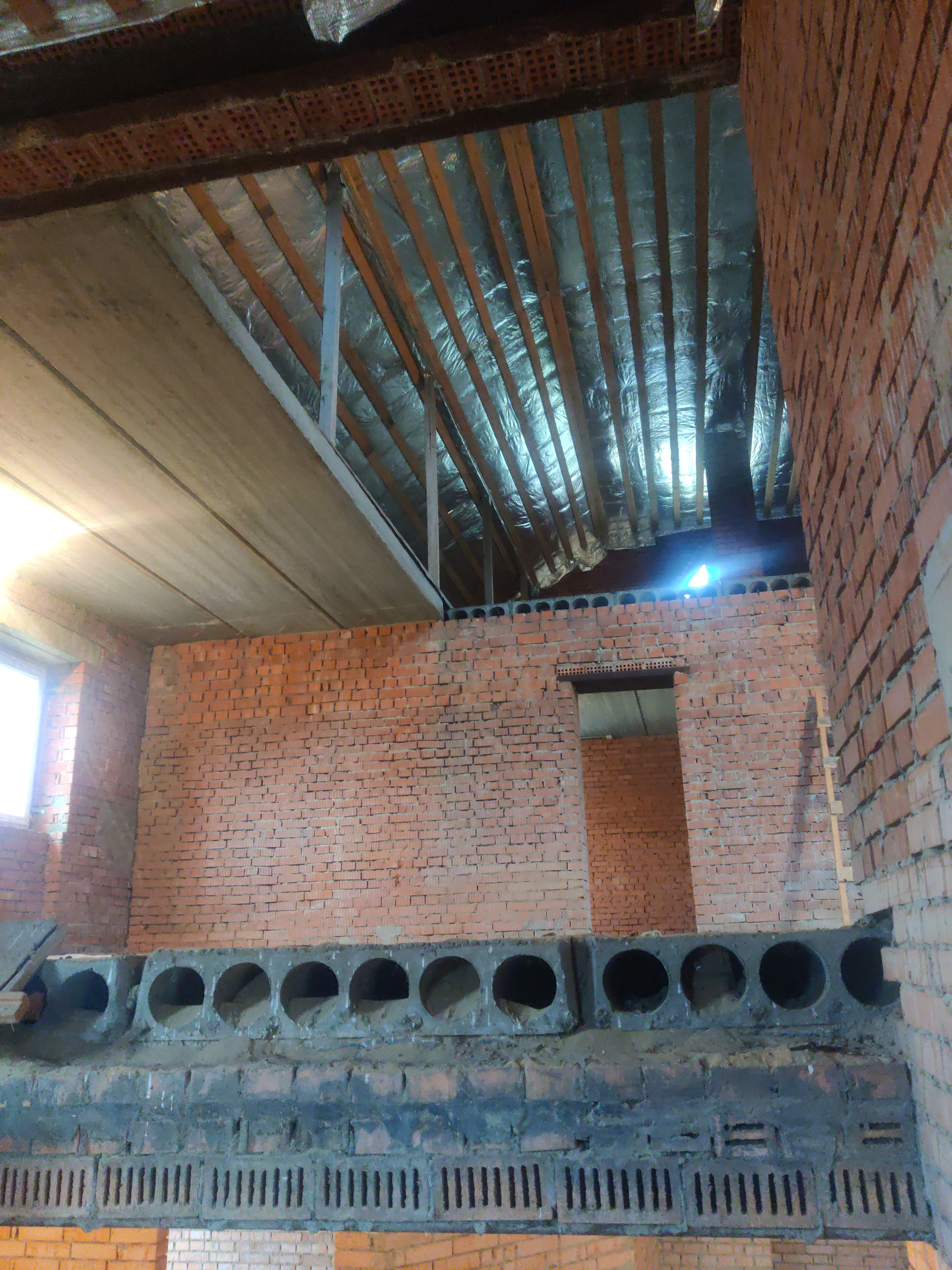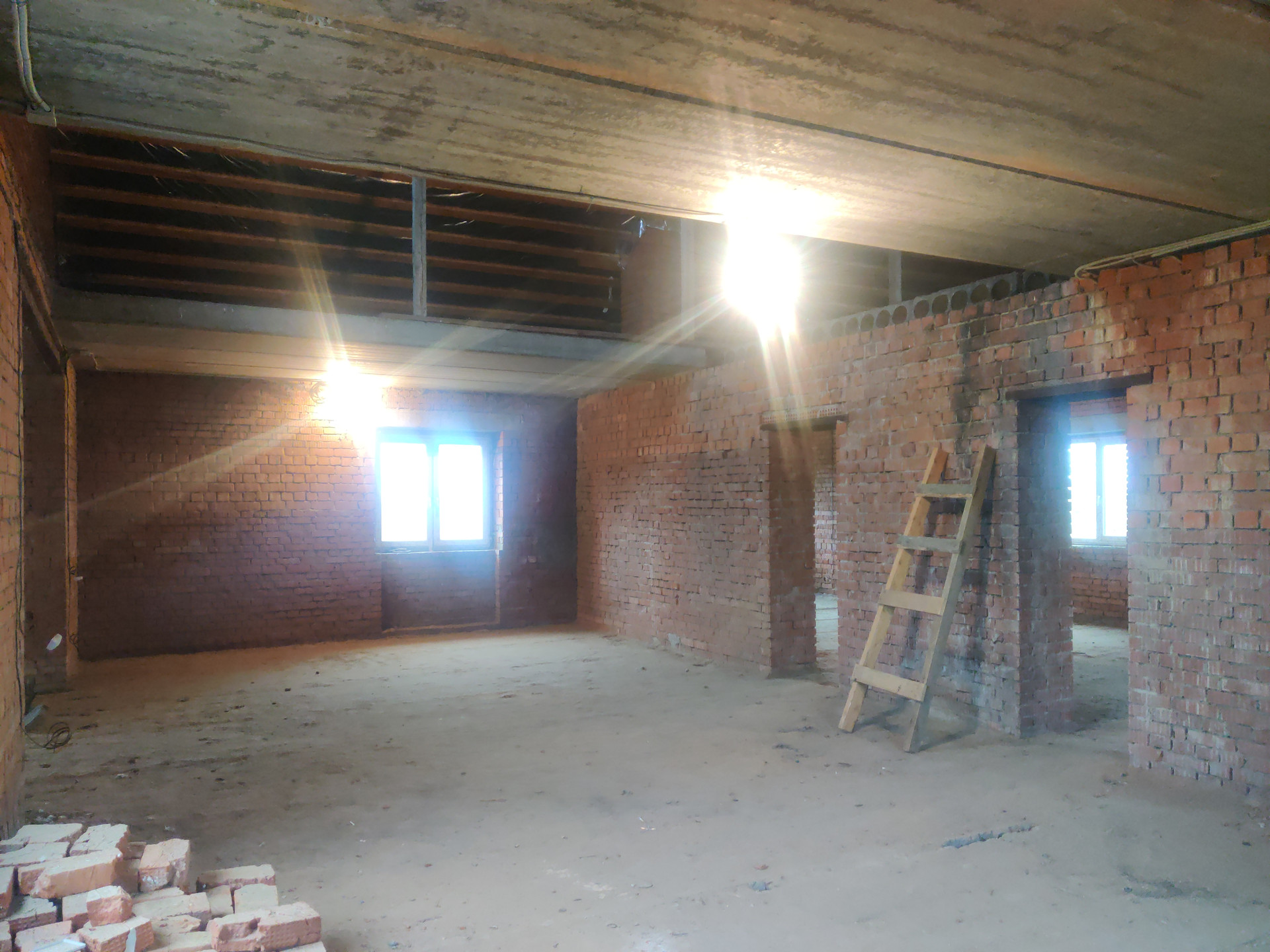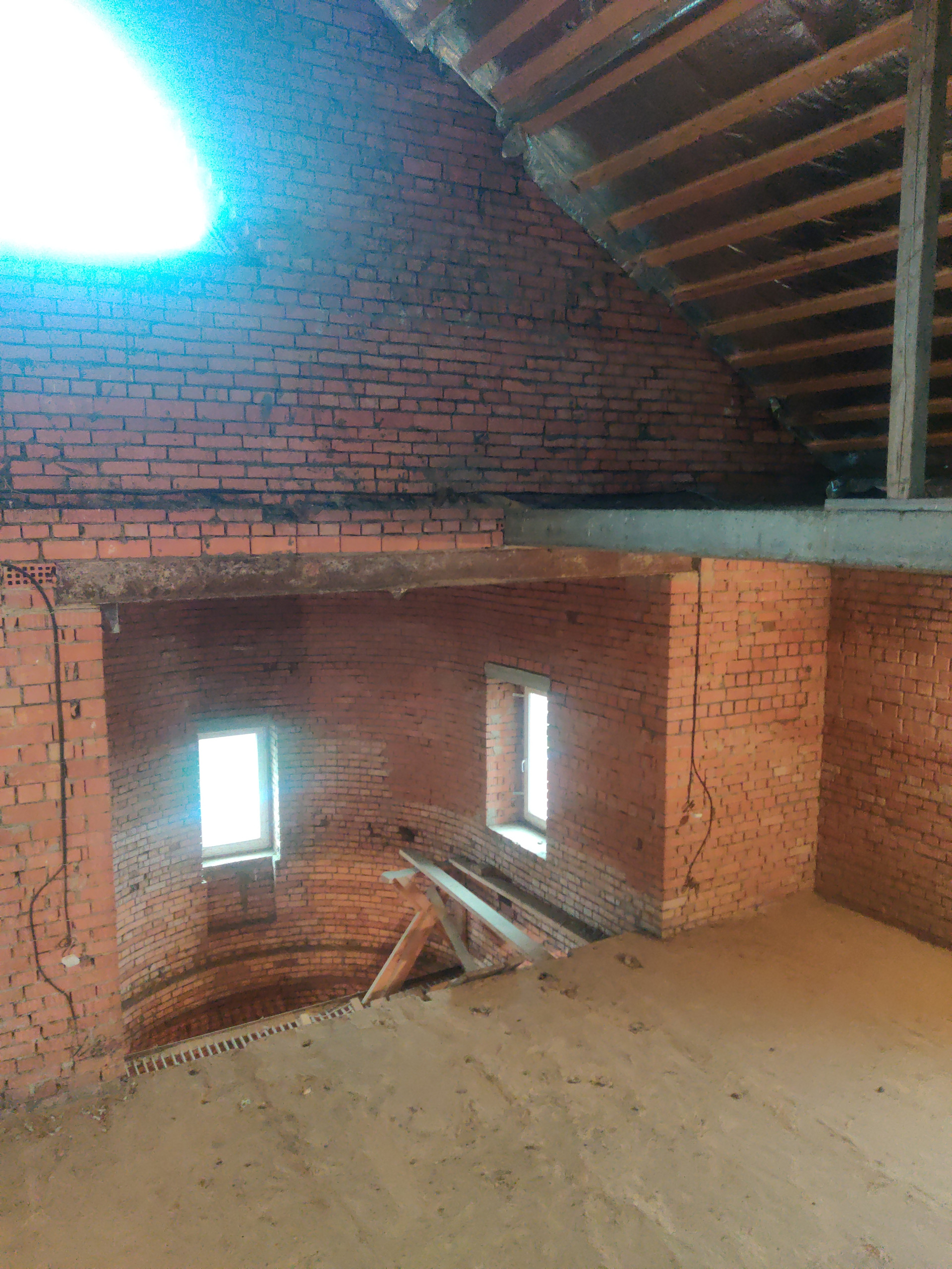 Дом имеет цокольный этаж во весь дом из железобетонных блоков ФБС-6, с заездом для машины, 2-ва полноценных этажа и мансардный этаж из красного облицовочного кирпича, толщина стен 50 см. Во всем доме вставлены окна ПВХ, крыша покрыта металлочерепицей, две входные железные двери.