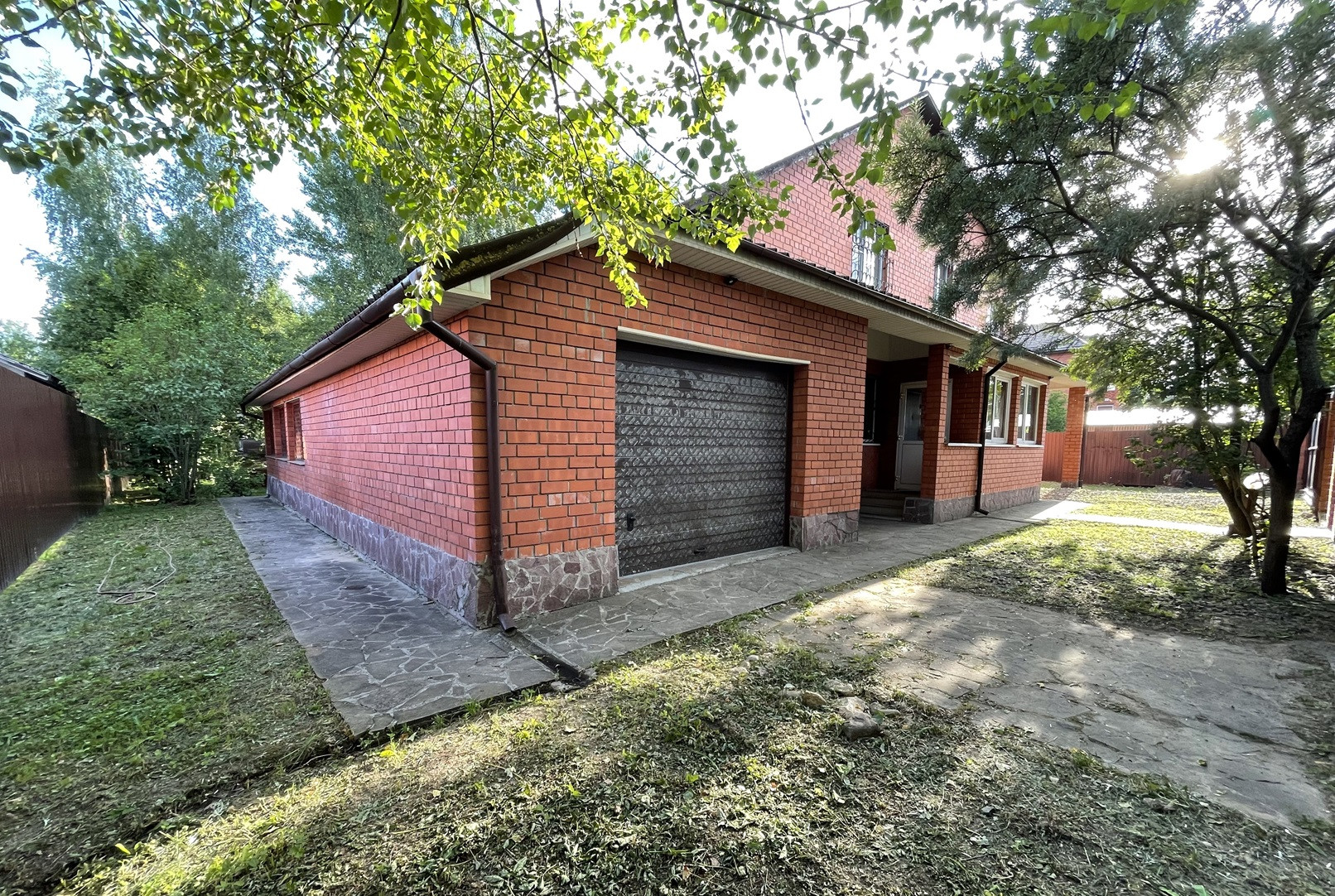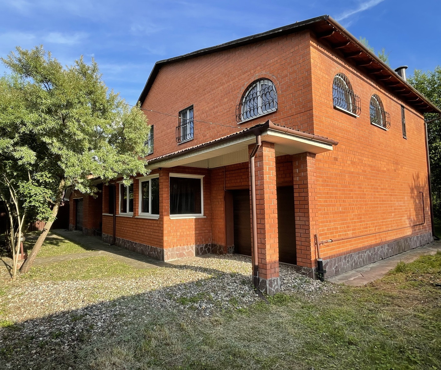 Продаётся просторный кирпичный дом площадью 220м2 (+ пристроенные второй гараж 33м2 и навес для беседки/спортзала/мастерской 30м2). На участке в 12 соток многолетние деревья, спасающие летом от жары. Рядом леса с ягодами и грибами, много карьеров для купания в 15мин на авто. Отличное место для круглогодичного проживания всей семьей. Соседи живут круглый год.