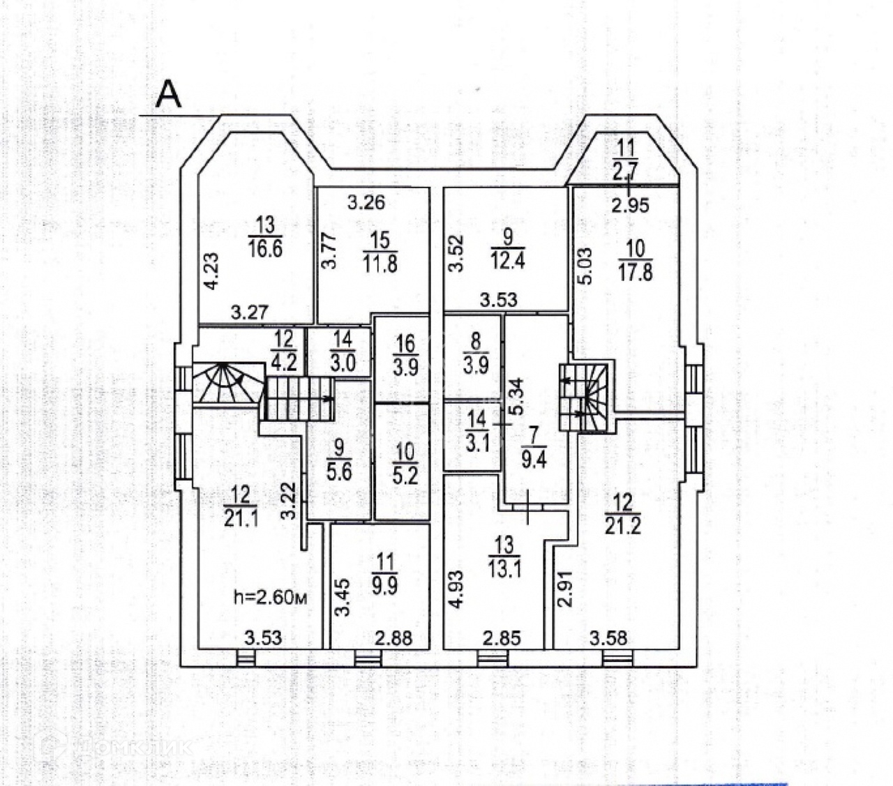 Мансардный этаж: 175 кв.м, высота потолка 2,6м