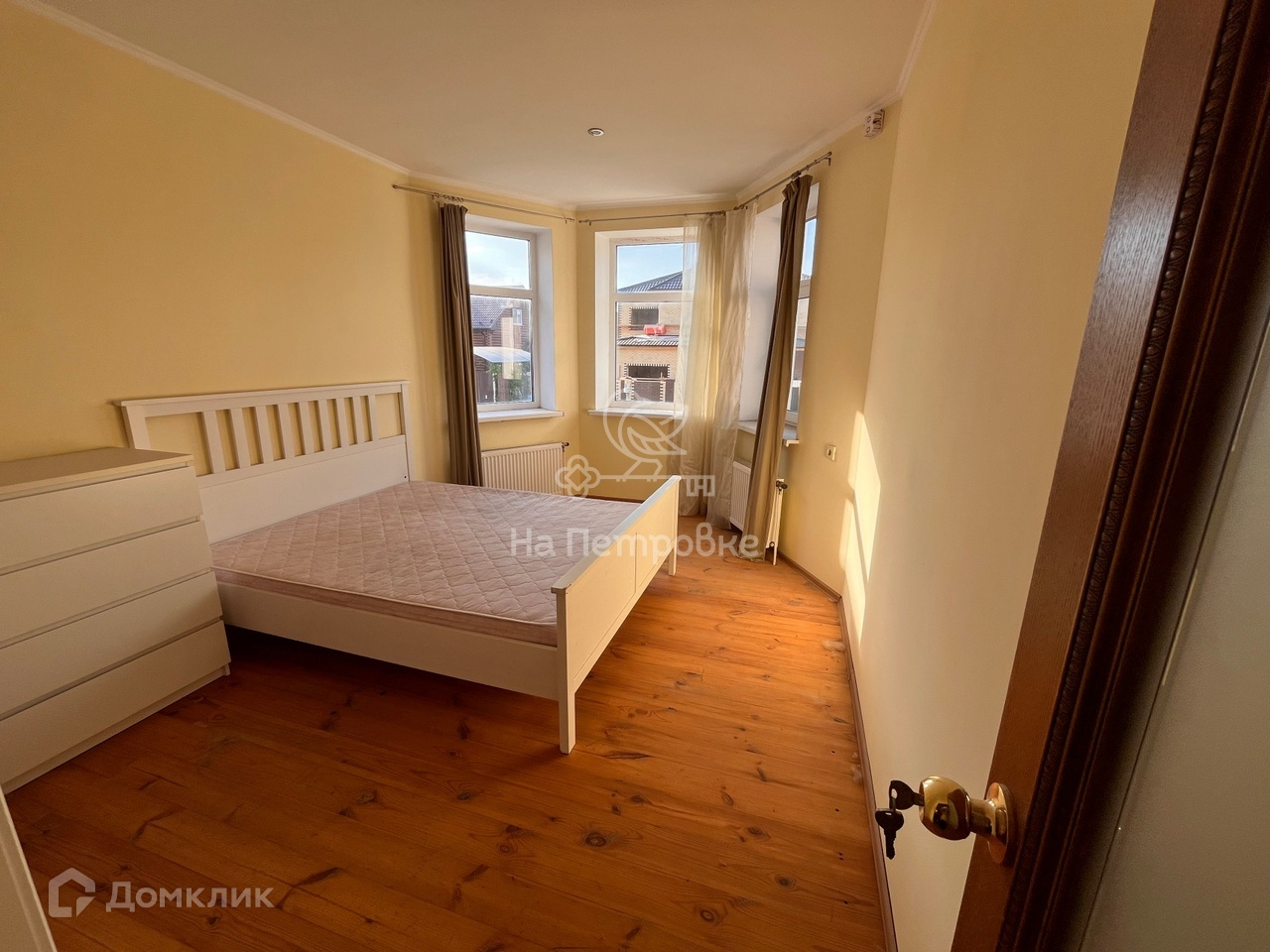 Внутренняя отделка: стены – штукатурка и краска. Полы в холле, кухнях и ванных комнатах в плитке, в спальне полы из ламината. Лестницы – деревянные, одна  монолитная, плитка на ступенях. Потолки из  гипсокартона. Двери деревянные, шпон.
