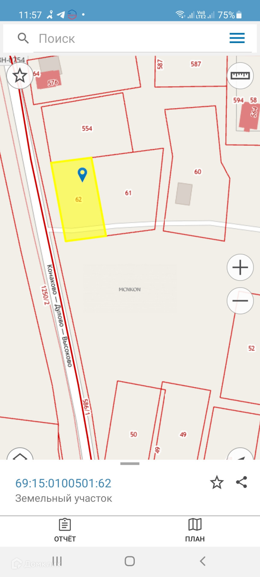 Арт. 18739262 Участок 25 соток (10+15 соток) в д.Марьино, 300 м от реки Донховки. Участок угловой рядом с дорогой.
