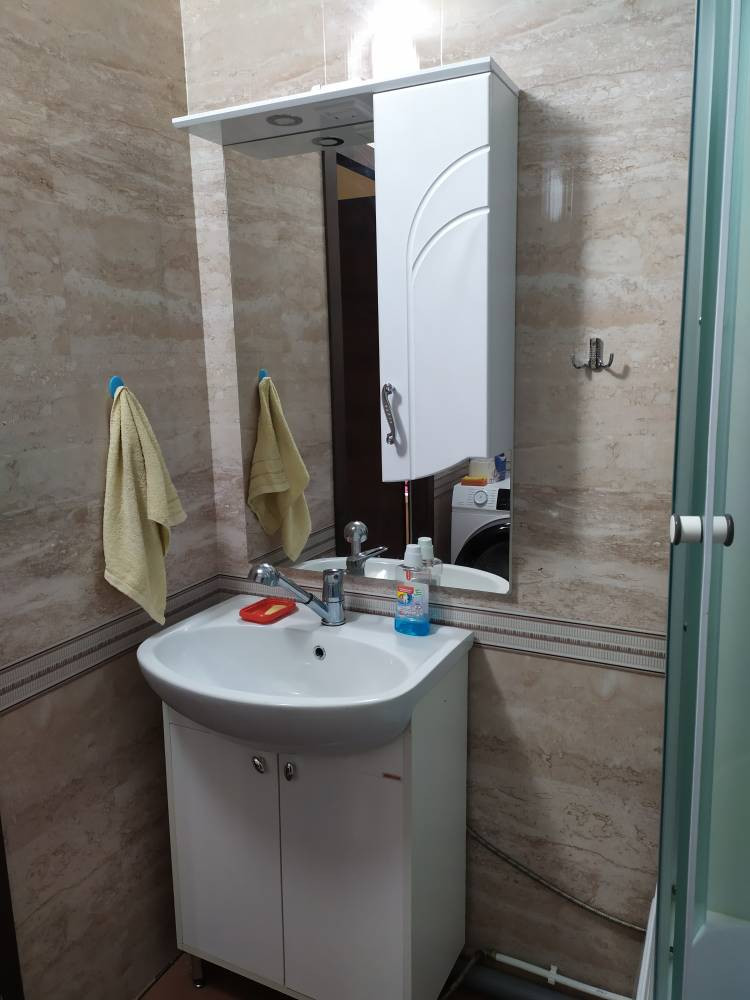 Состояние очень хорошее: пластиковые окна, натяжные потолки, совмещенный санузел - "под ключ", косметический ремонт.