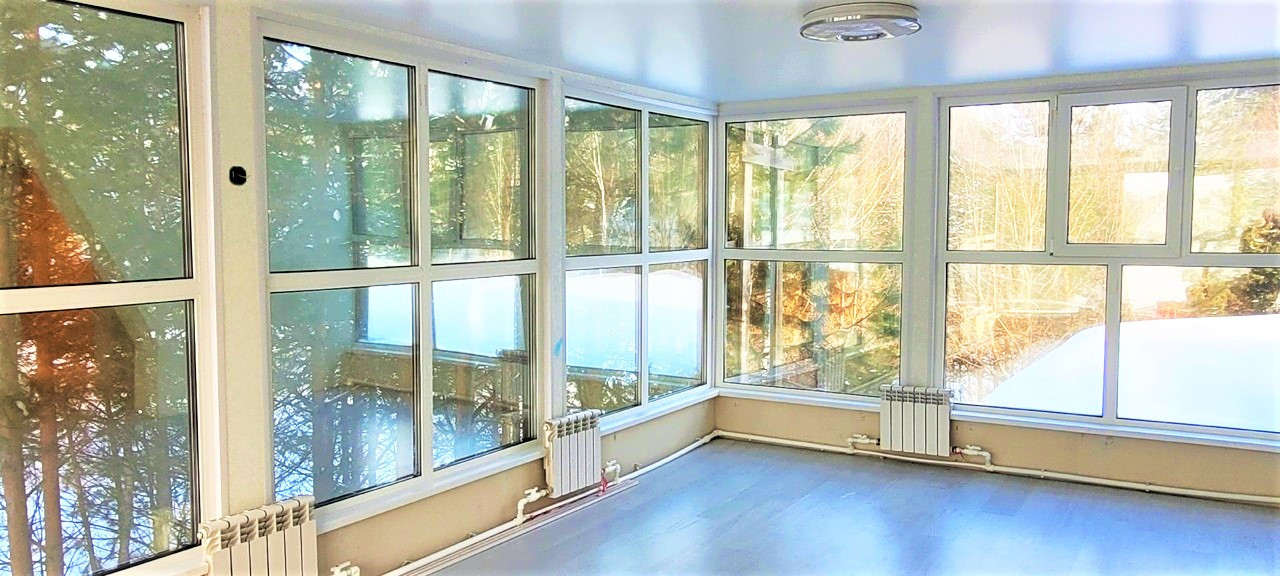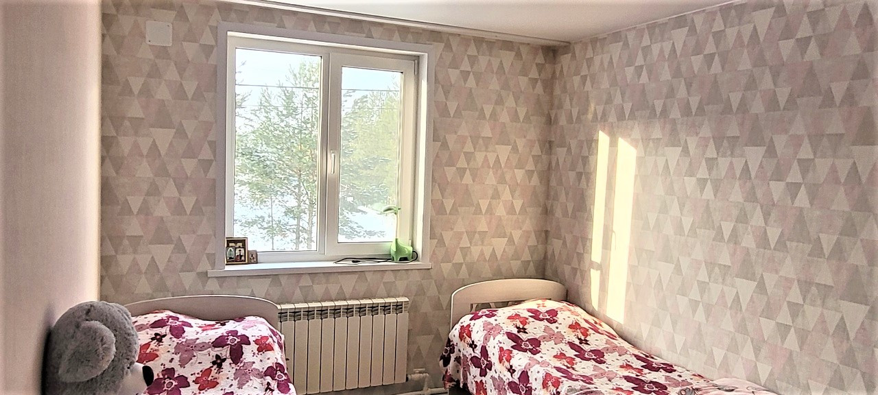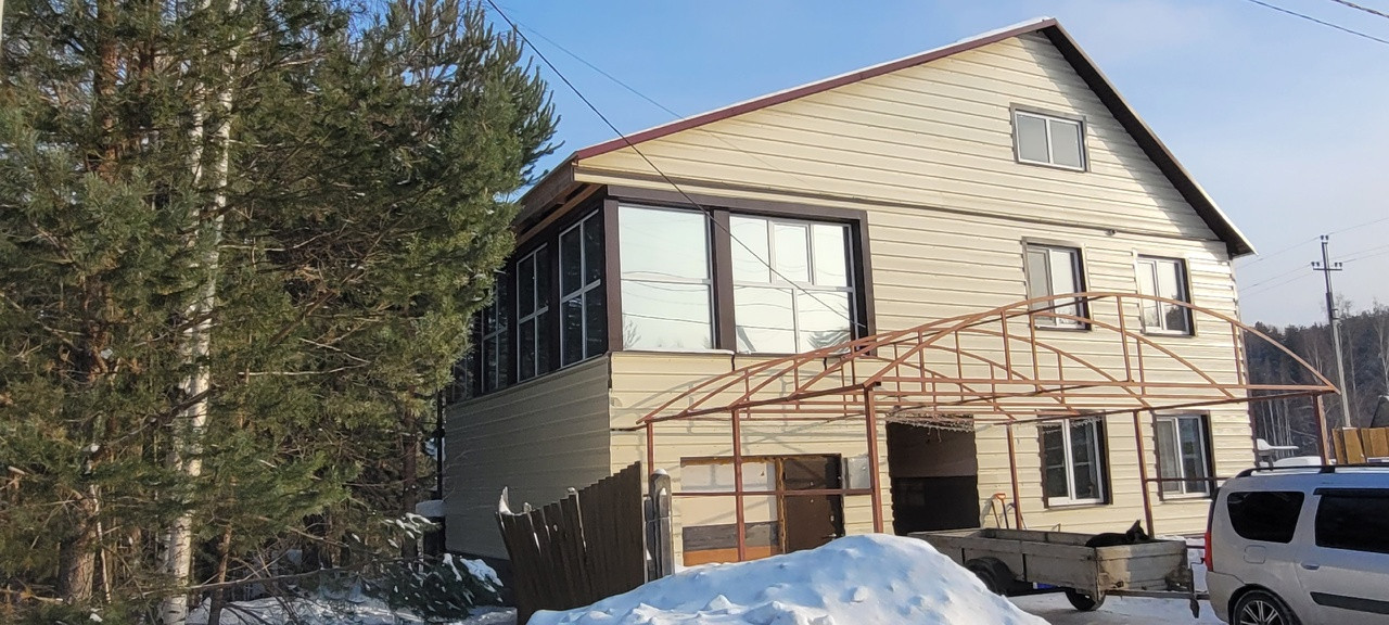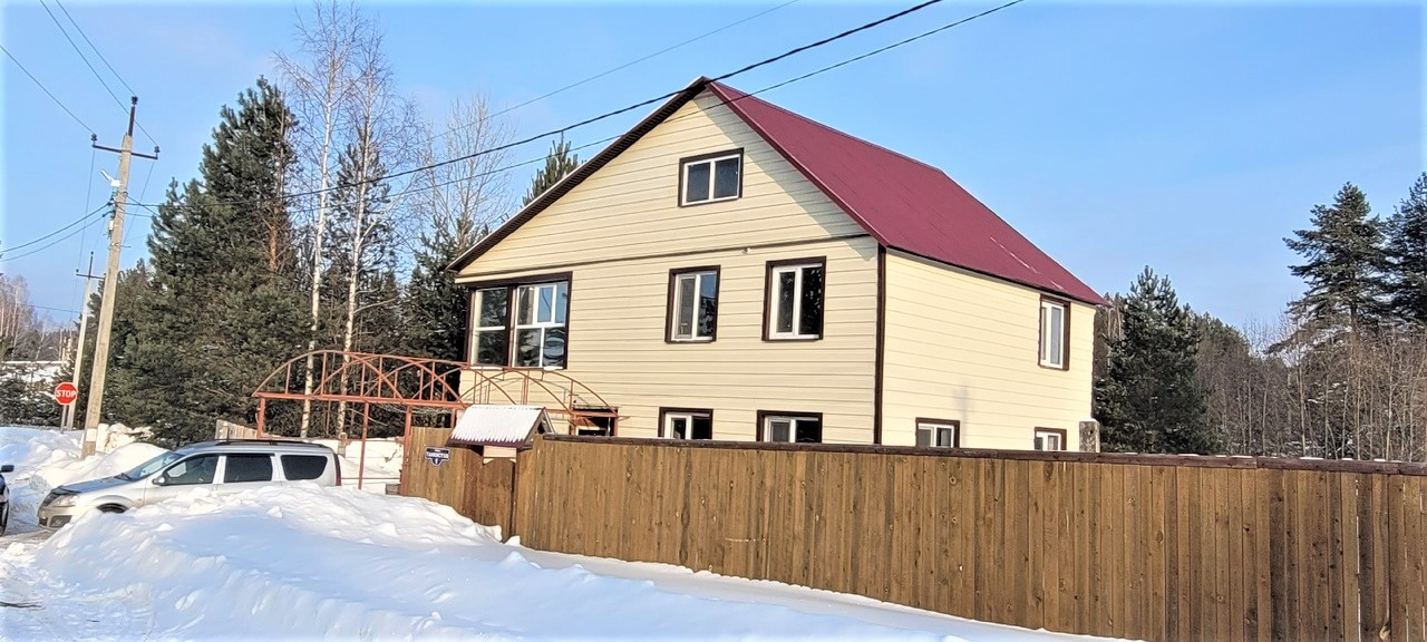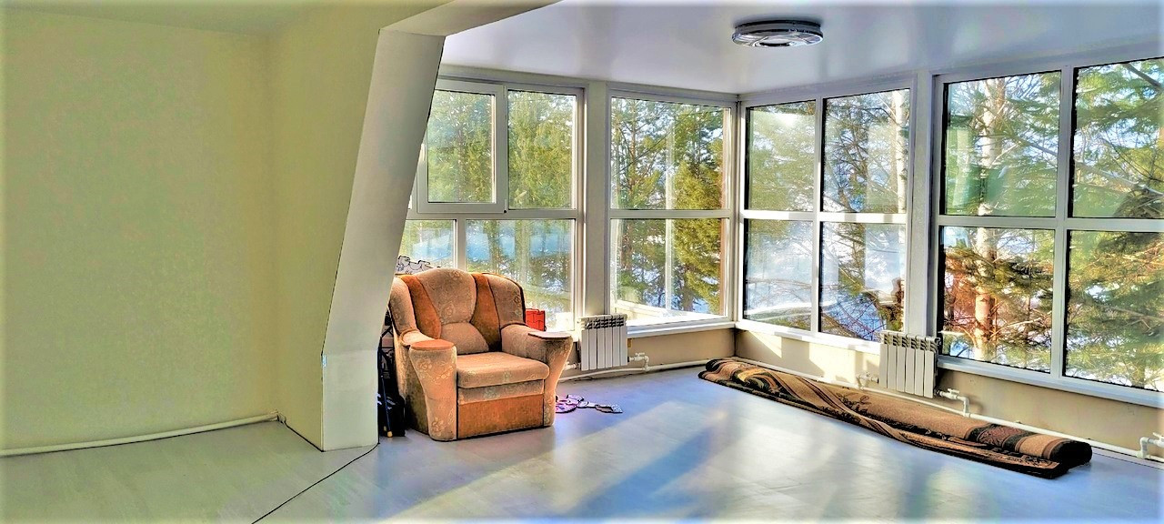Дом состоит из двух уровней и имеет два санузла. На втором этаже дома находится большая теплая веранда с витражами и две спальни.