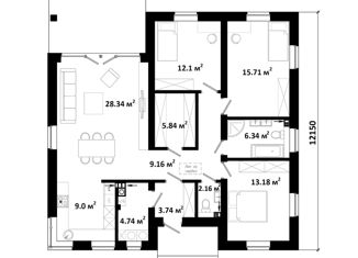 Общая площадь: 150 м2