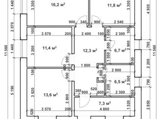 Общая площадь: 57.5 м2