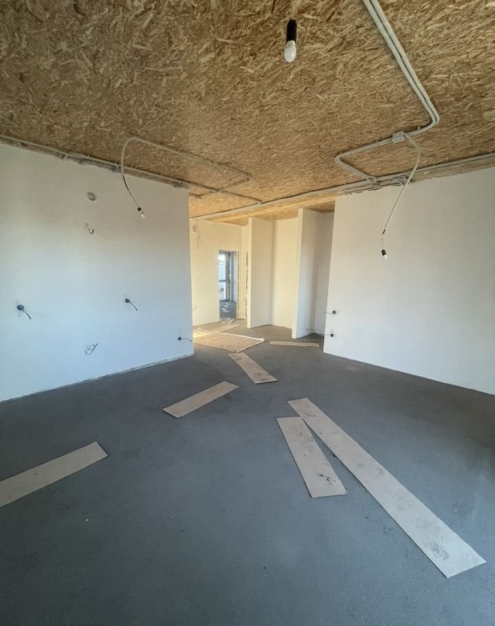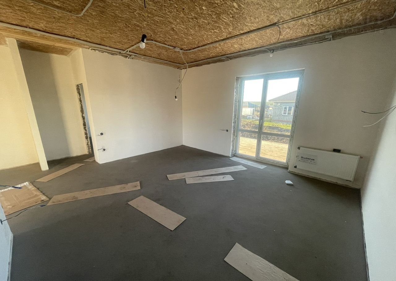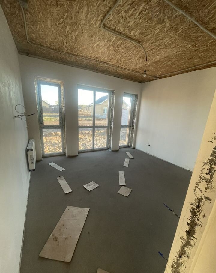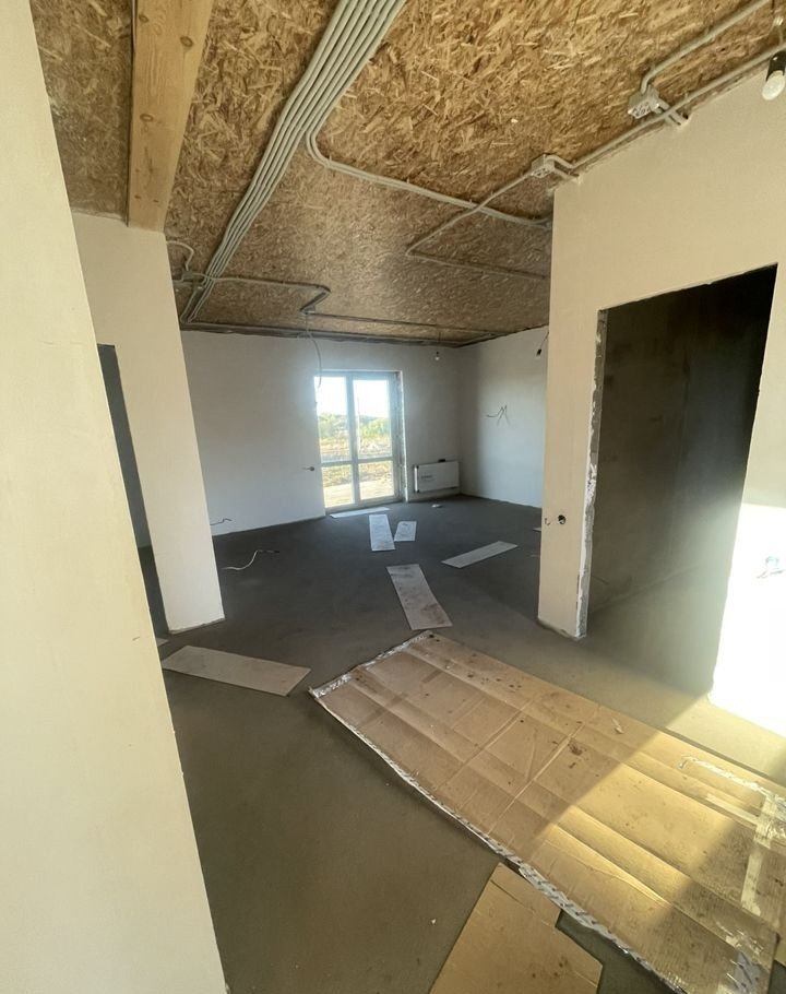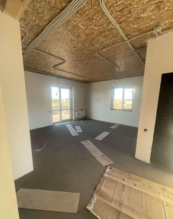 Дом в предчистовой отделке. Стены отштукатурены под обои, разведено электричество, теплый пол по всему дому, радиаторы отопления, пол стяжка, эл. котел.