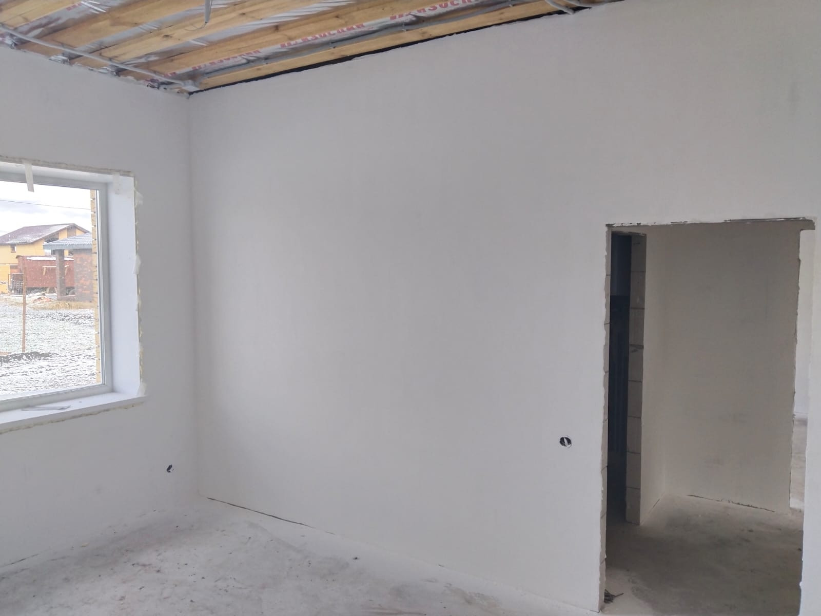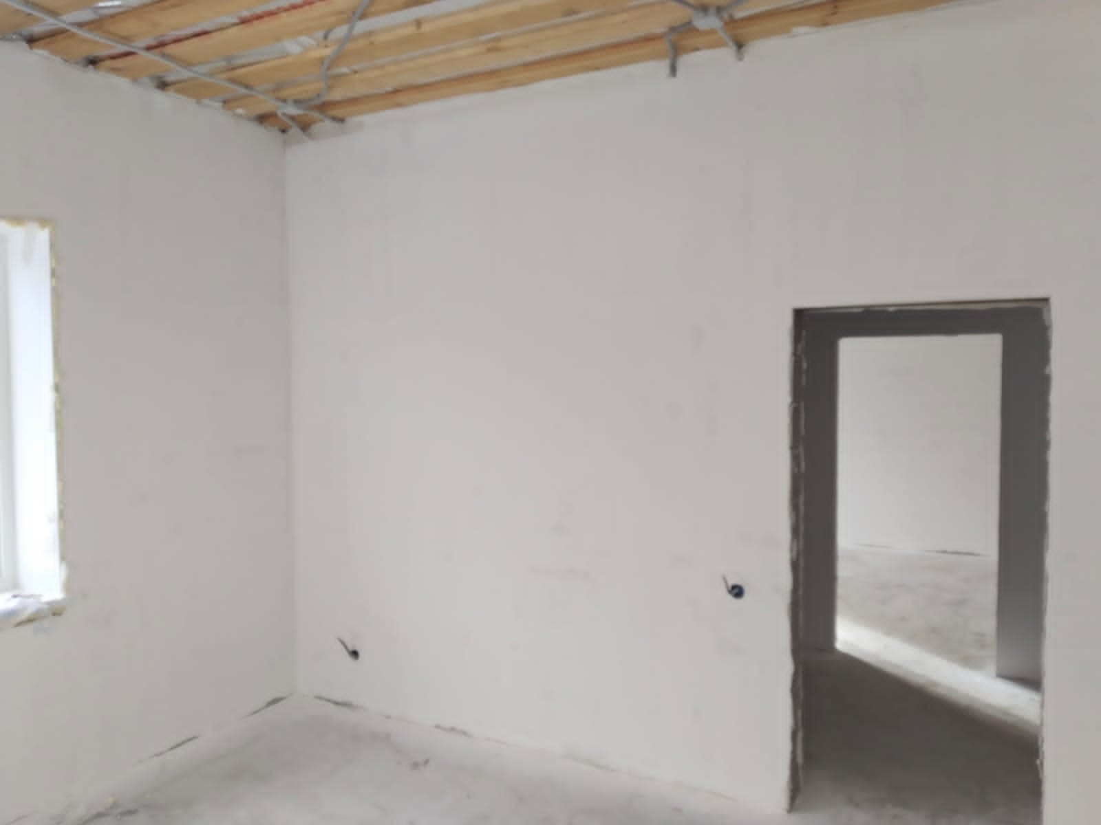стены выровненные по маякам сухими штукатурными смесями, подготовка под поклейку обоями