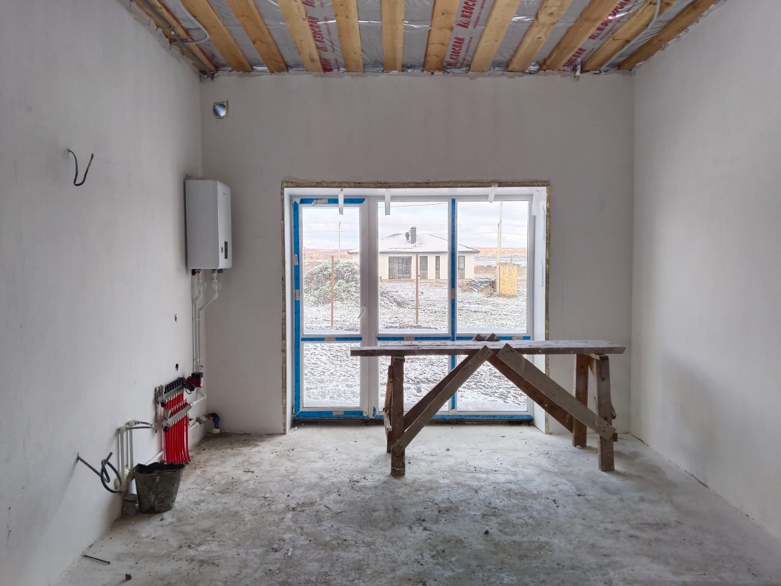 напольное покрытие: полусухая стяжка идеально ровная , позволяет уже уложить ламинат