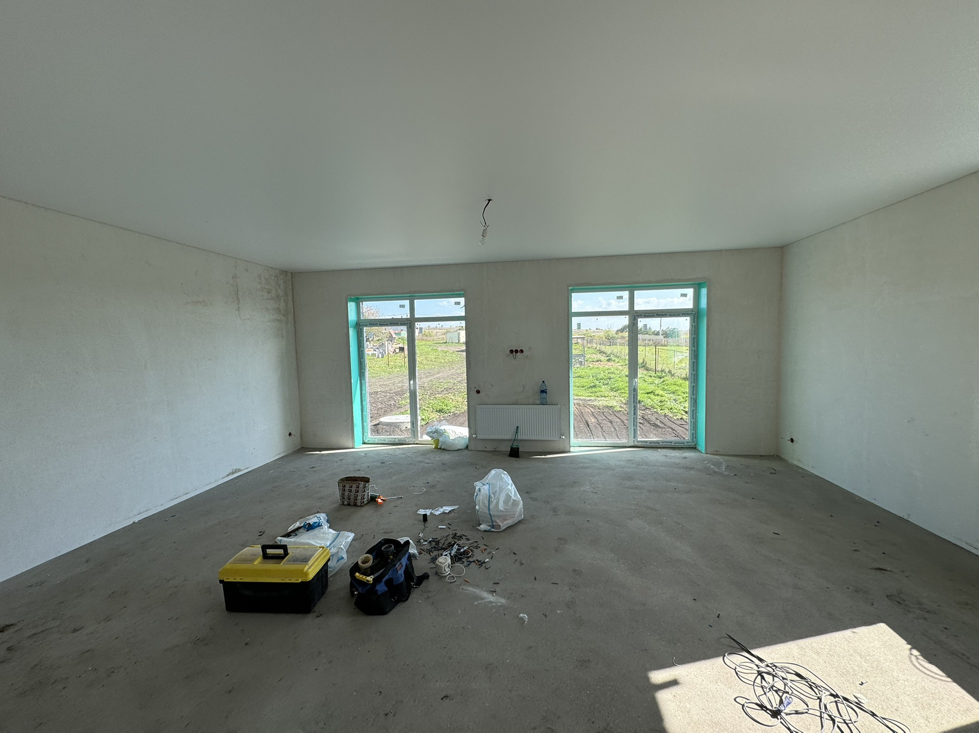 напольное покрытие: полусухая стяжка идеально ровная , позволяет уже уложить ламинат
