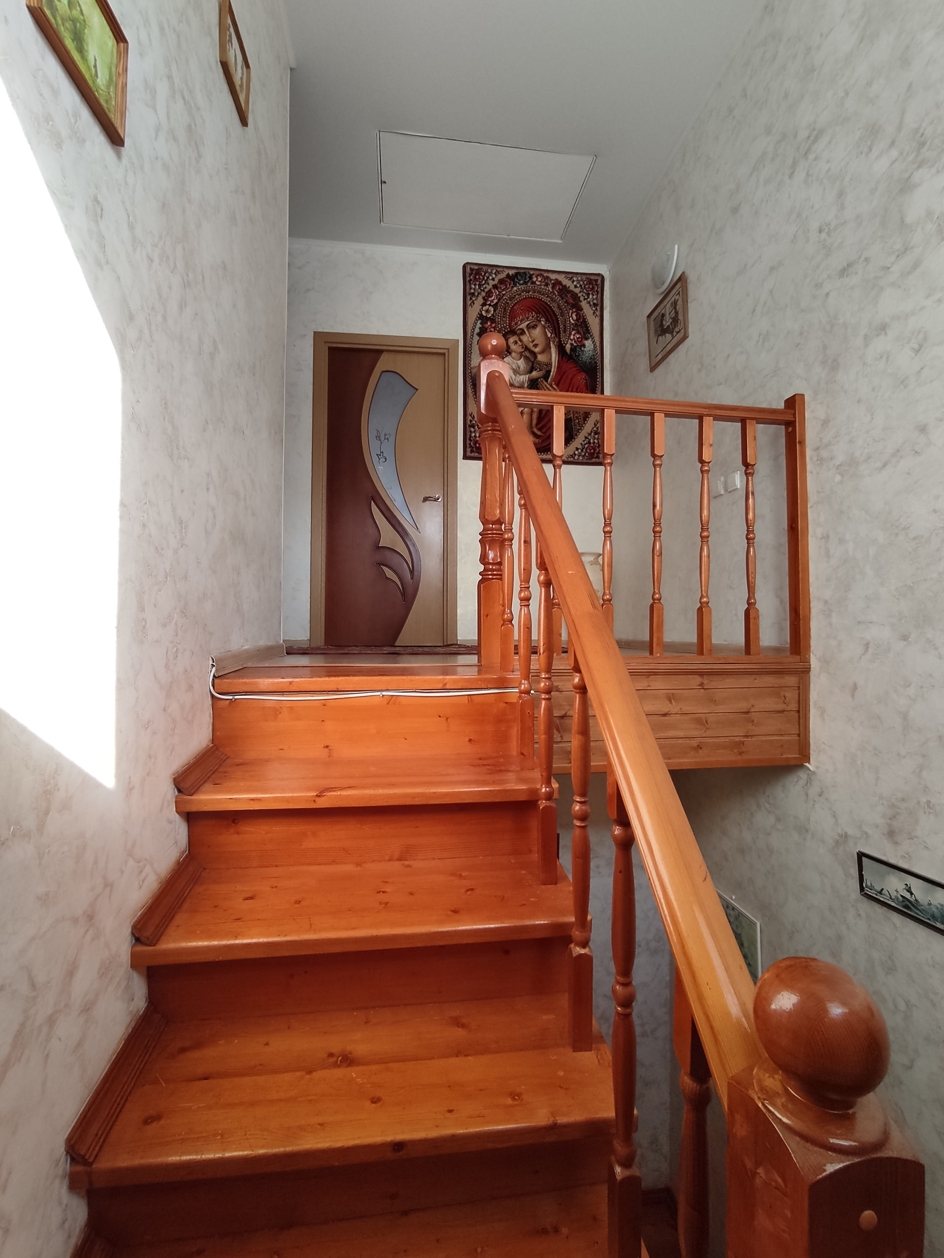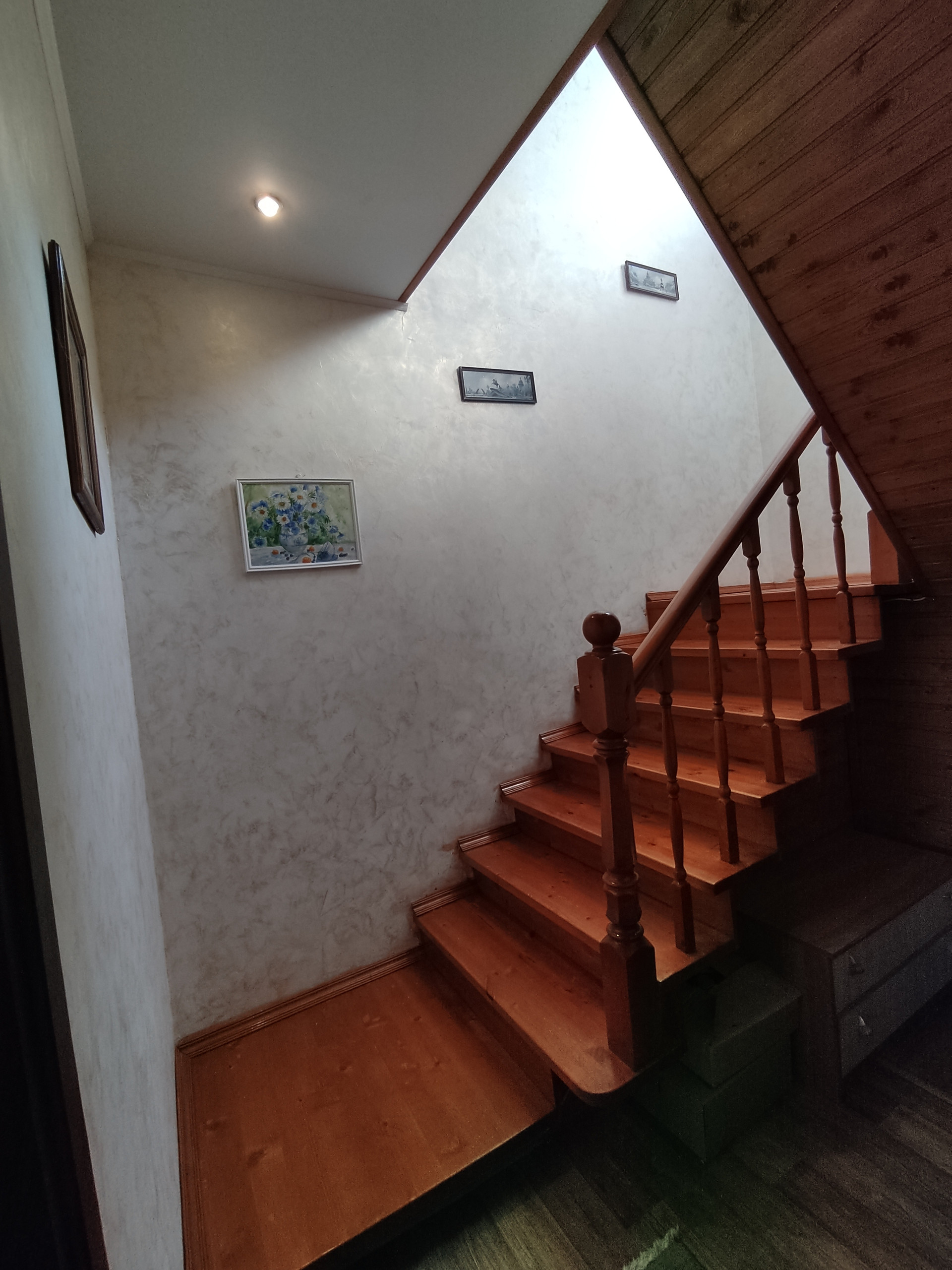1этаж- зал, кухня, с/у, кладовка, веранда(15кв с выходом на участок (2 сот). Дубовая лестница на второй этаж.