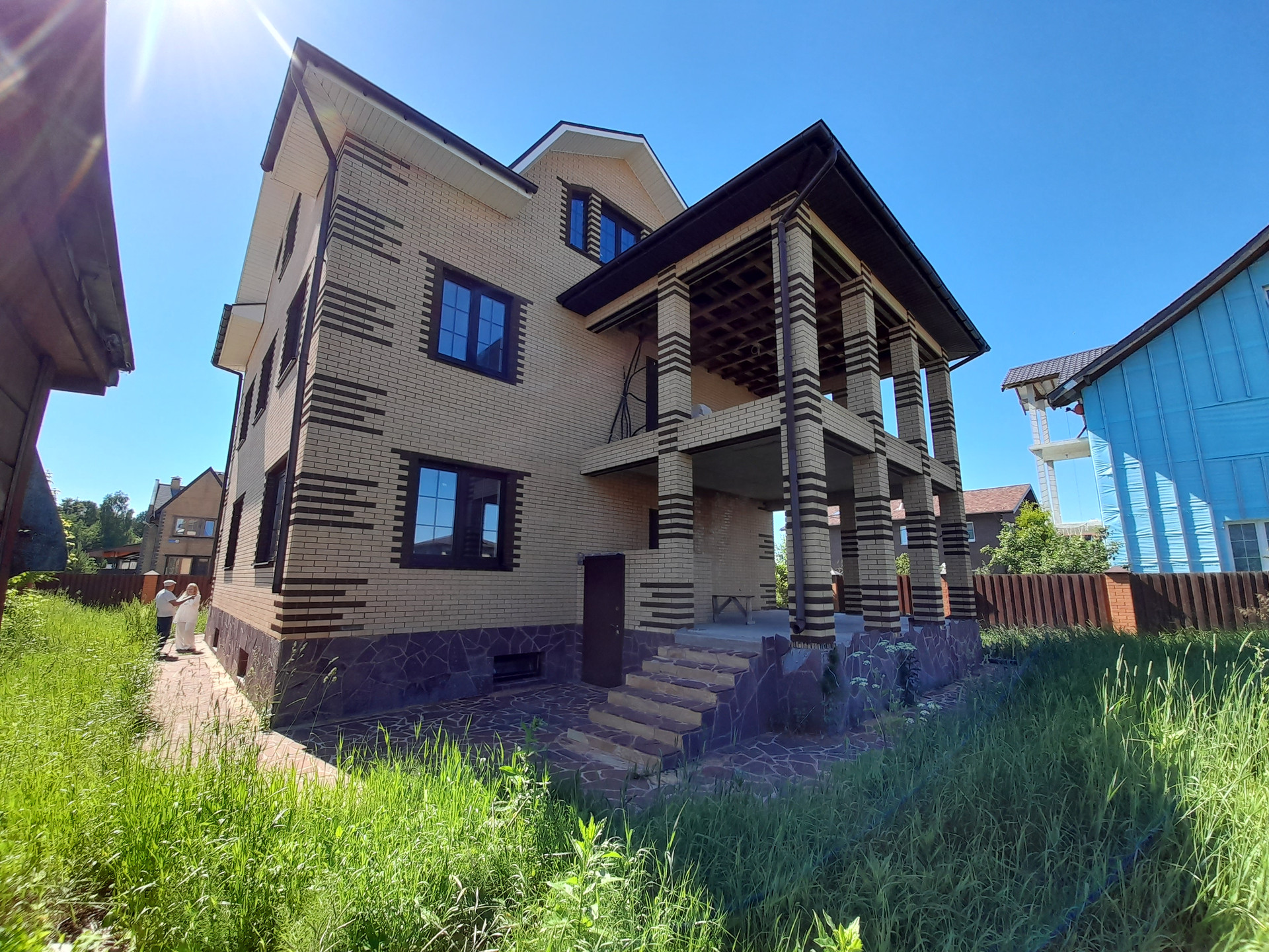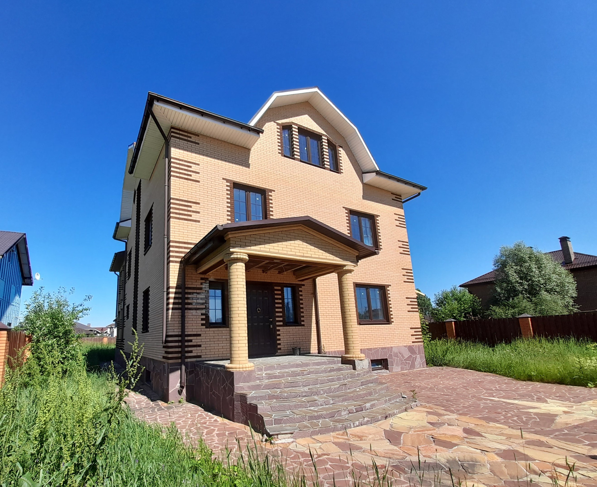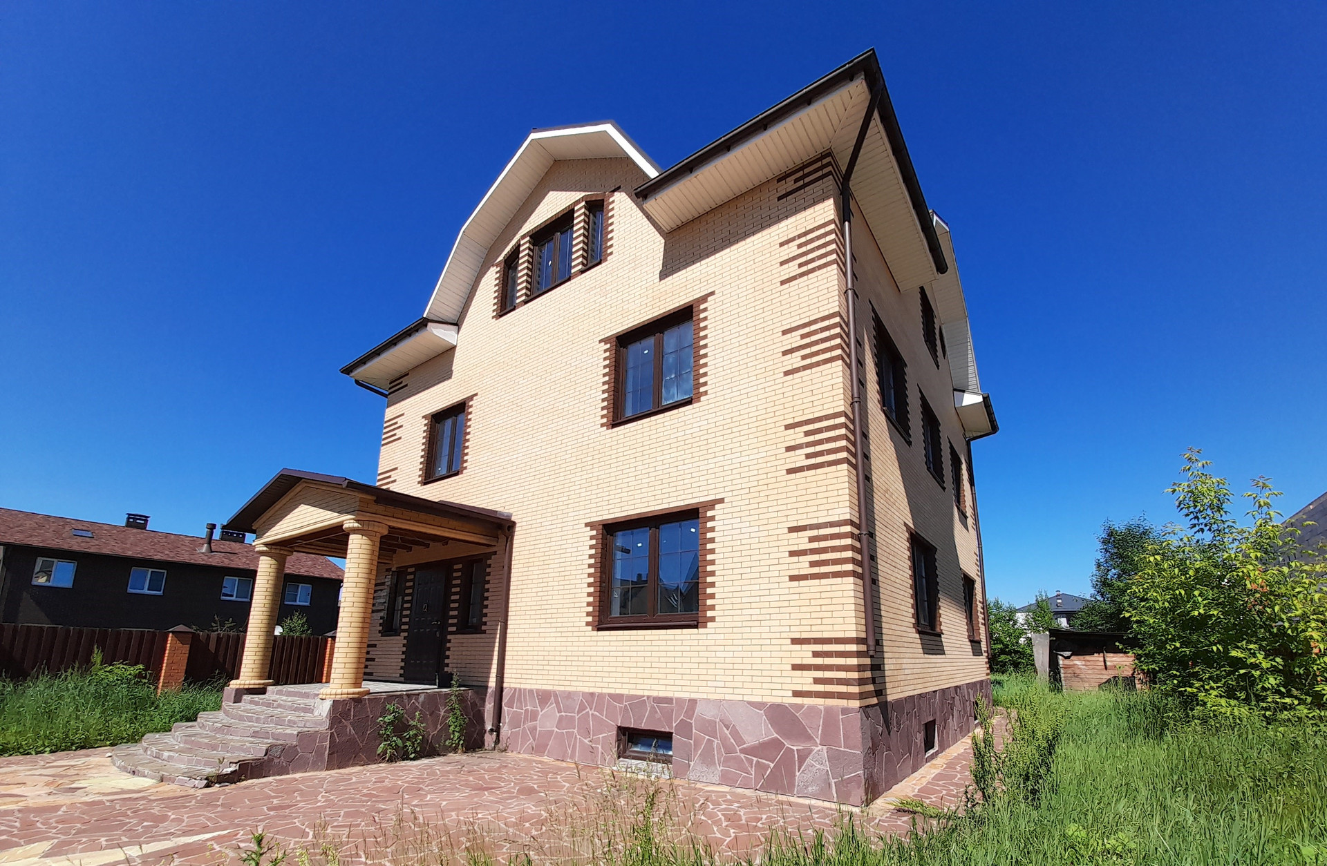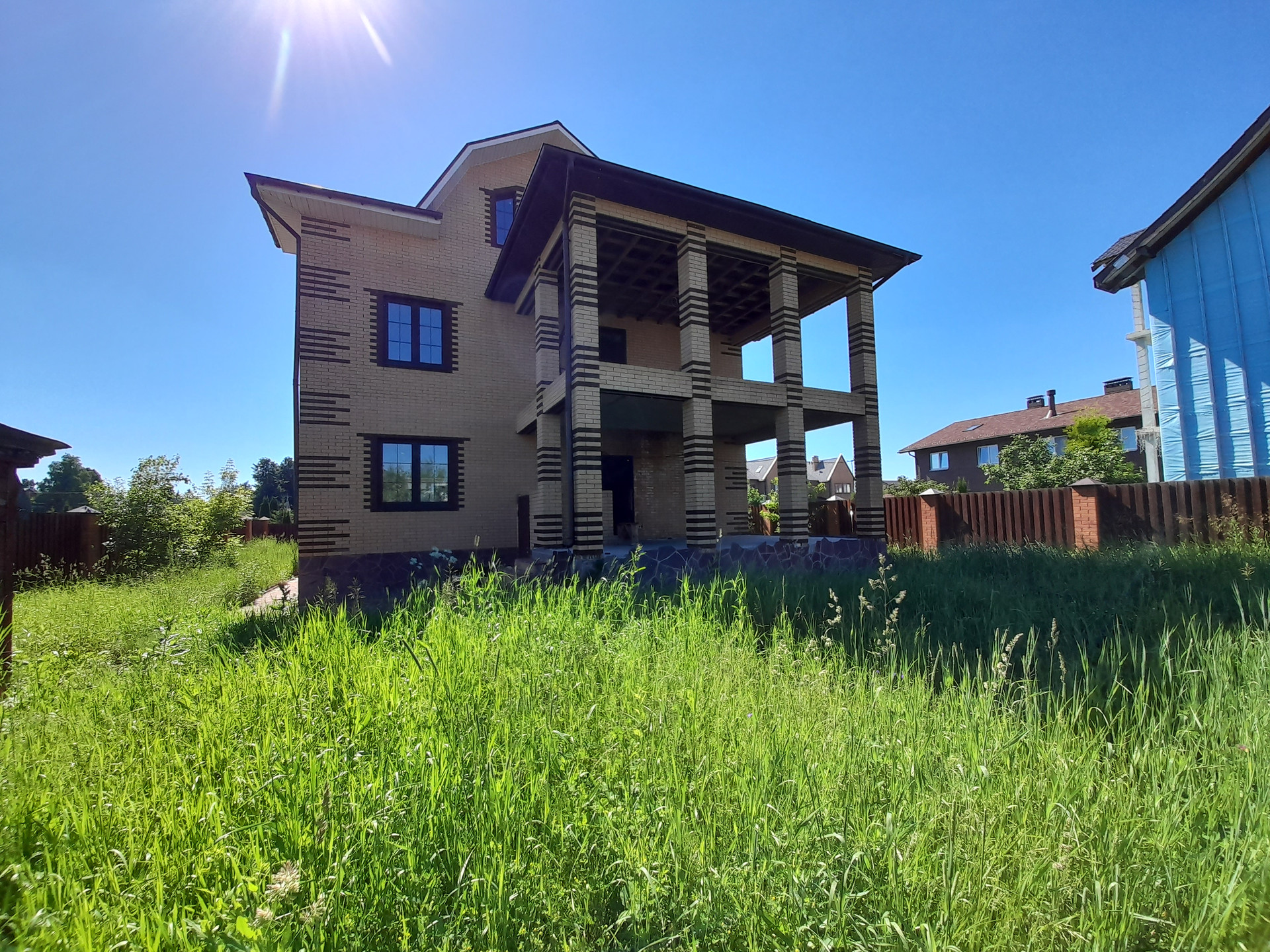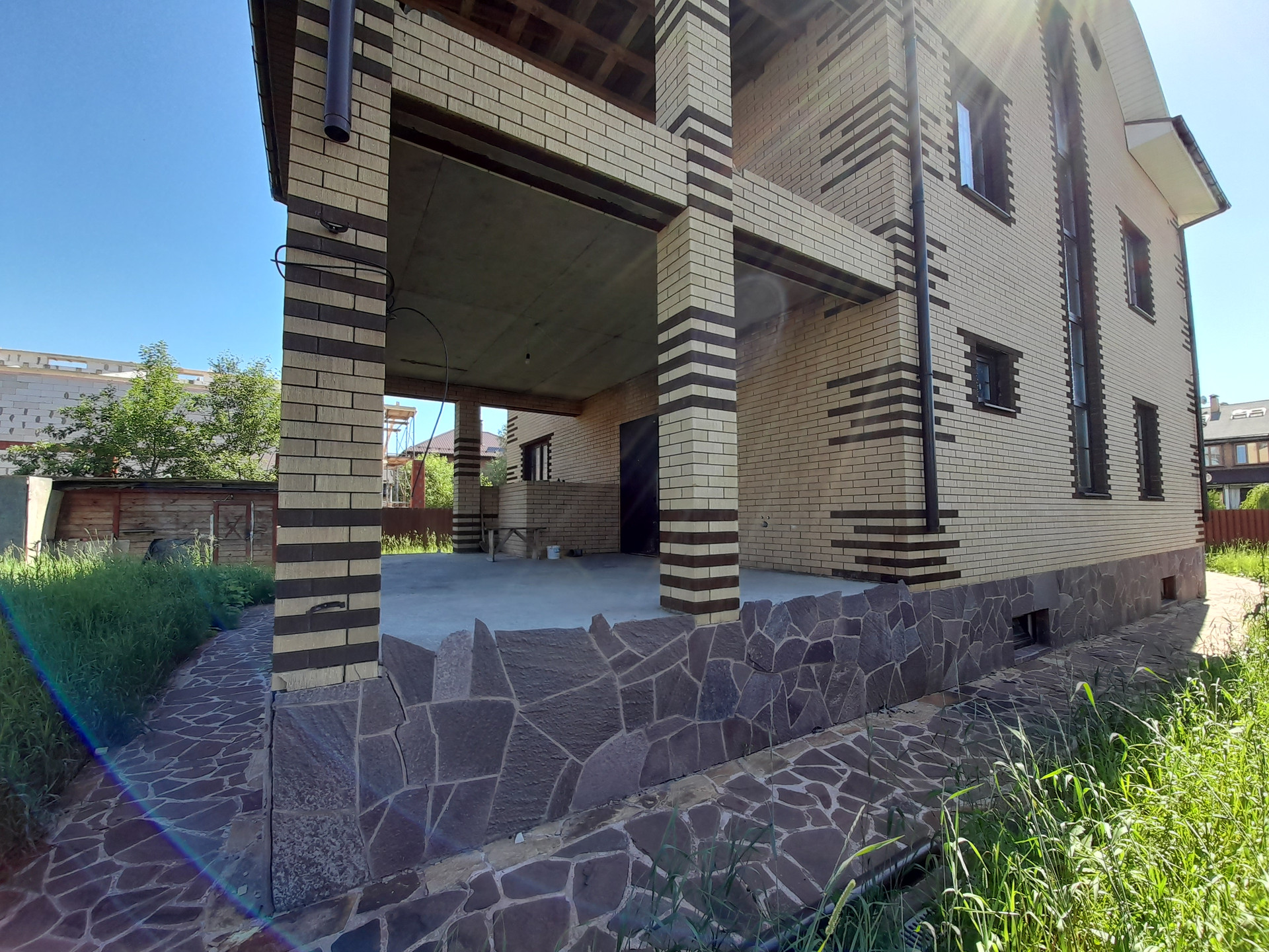 Вблизи деревни Мартемьяново, в коттеджном поселке Апрелевка-парк, в 30 км от Москвы продается дом 306 метров на участке 7.67 сот.; дом 2018 года постройки, из пеноблоков, утеплен, облицован отделочным кирпичом. Участок огорожен, площадка для парковки автомобиля вымощена камнем. Дом под чистовую отделку, все коммуникации разведены - трубы отопления медные, выводы под кондиционер, сами кондиционеры новые, в коробках остаются в доме , свет, вода, канализация в доме. Поселок газифицирован, газ рядом с домом. Дом в 4 уровня: цокольный этаж планировался для хозяйственных нужд - душевая, сауна, прачечная, холодильная комната. На первом этаже большая кухня- гостинная с камином, два санузла, котельная, второй выход на летнюю веранду и в сад. На втором этаже три комнаты и два санузла, выход на большой балкон с отличным видом. На мансардном этаже также три комнаты и два санузла. Дорожки отделаны камнем, запас камня остается на участке, сливы - отливы, дренажные каналы, все сделано добротно из дорогих материалов. Поселок круглосуточно охраняется, работает уборочная техника. Большая территория для отдыха - детские игровые площадки, территория для занятия спортом, для принятия солнечных ванн.