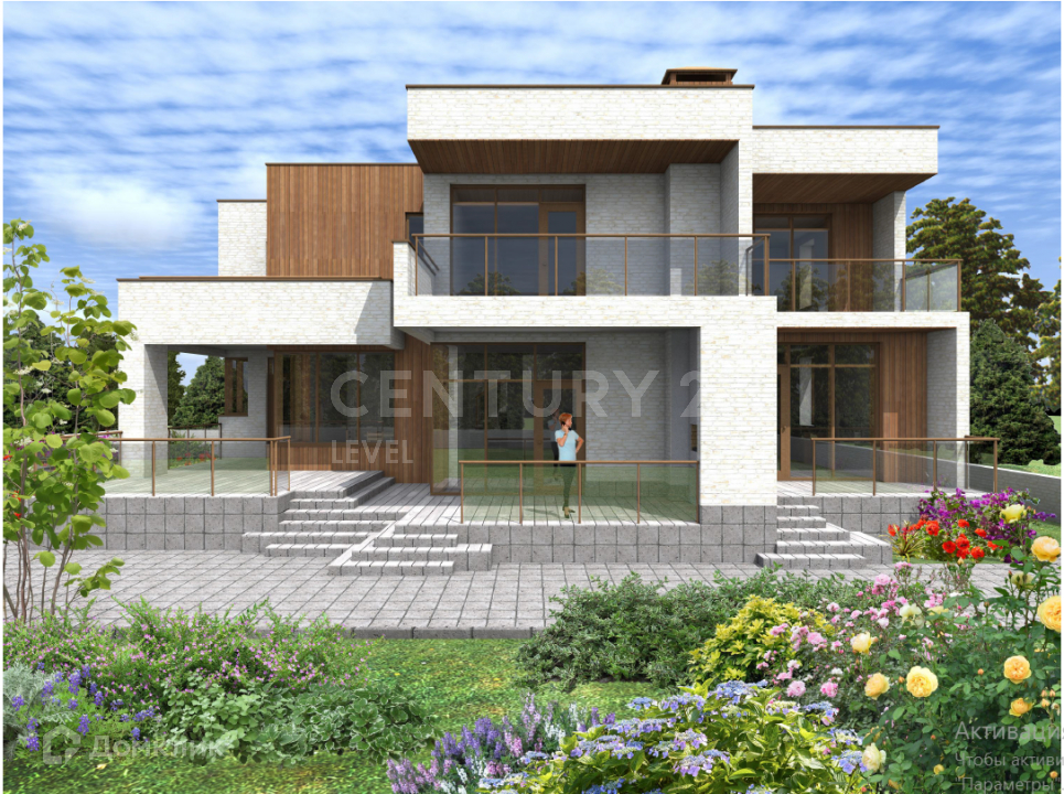 Второй этаж  две детских комнаты, кабинет, мастер-спальня с гардеробной, гостевая комната, три балкона и четыре санузла. В проекте предусмотрен гараж на две машины с дополнительным помещением для хранения.