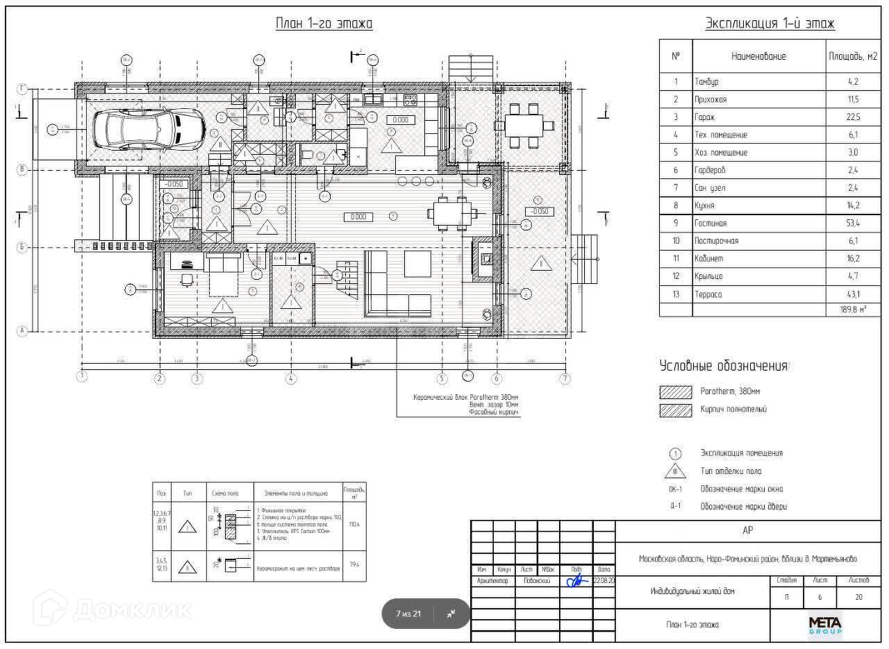 - Внешние стены: Керамический блок Wienerberger Porotherm 44.