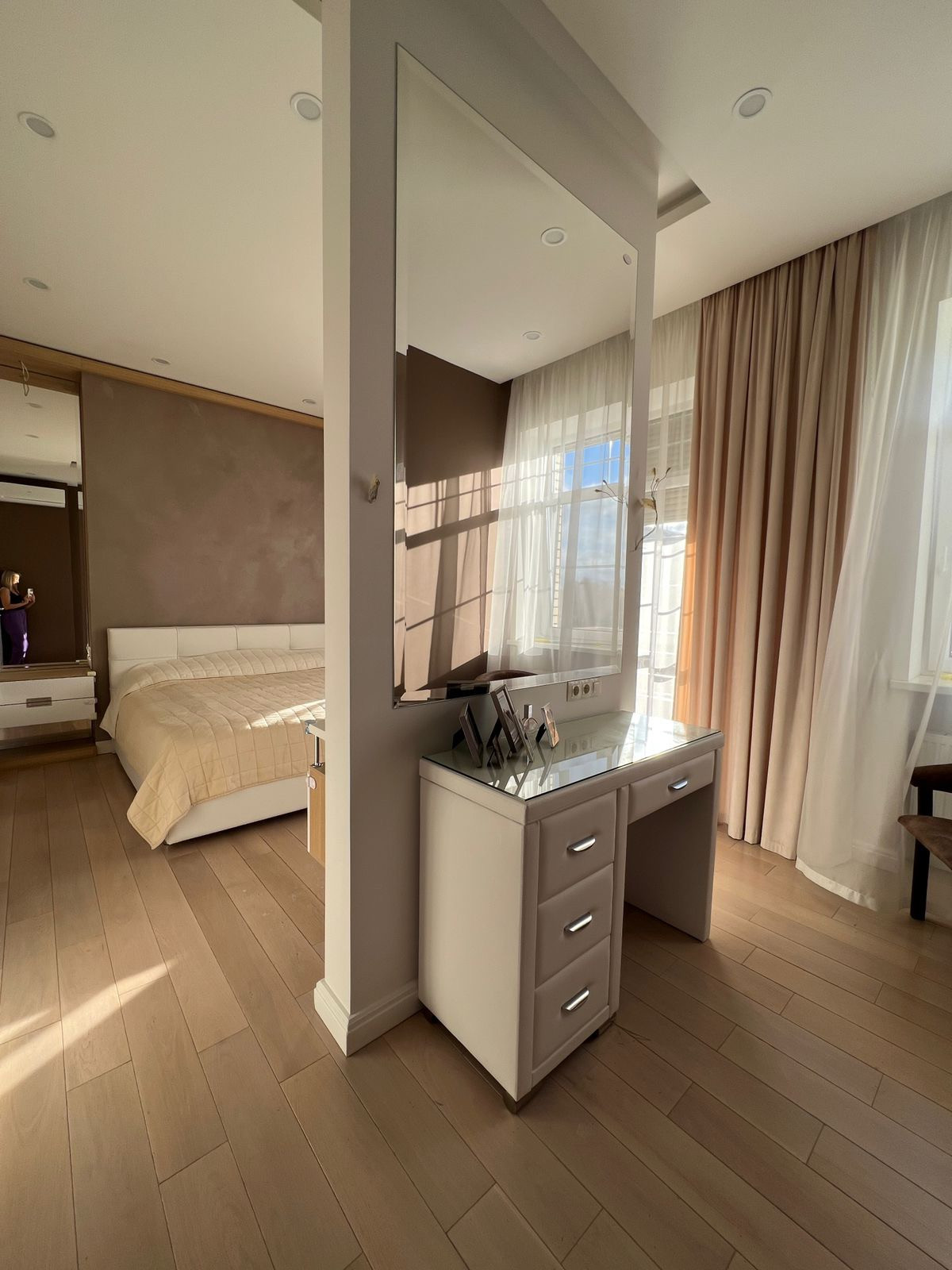 в к/п «Апрелевка-Парк». Дом газифицированный и обслуживается в Мособлгаз. Стены кирпичные. 3 жилых этажа, 5 жилых комнат, 3 санузла, гардеробная первого этажа, отдельная большая зеркальная гардеробная второго этажа, большая гардеробная третьего этажа ,прачечная, закрытая терраса (32 м2) с мебелью из натурального ротанг и качелями, комната хозблок (5-ти ступенчатая система водоочистки, резервное электрическое отопление, система аварийного частичного электроснабжения- до 5-ти часов самых необходимых зон), участок 2 сотки в собственности с мангальной зоной, собственная парковка на 3 автомобиля (с возможностью расширить), крытая площадка для хранения хозинвентаря. Кондиционеры на каждом этаже. Полы плитка и инженерная доска.Продается с встроенной мебелью. Кухня Мария. На всех этажах теплые полы, установлены стабилизаторы напряжения на каждую фазу, WiFi, подключена пультовая сигнализация Гольфстрим.
