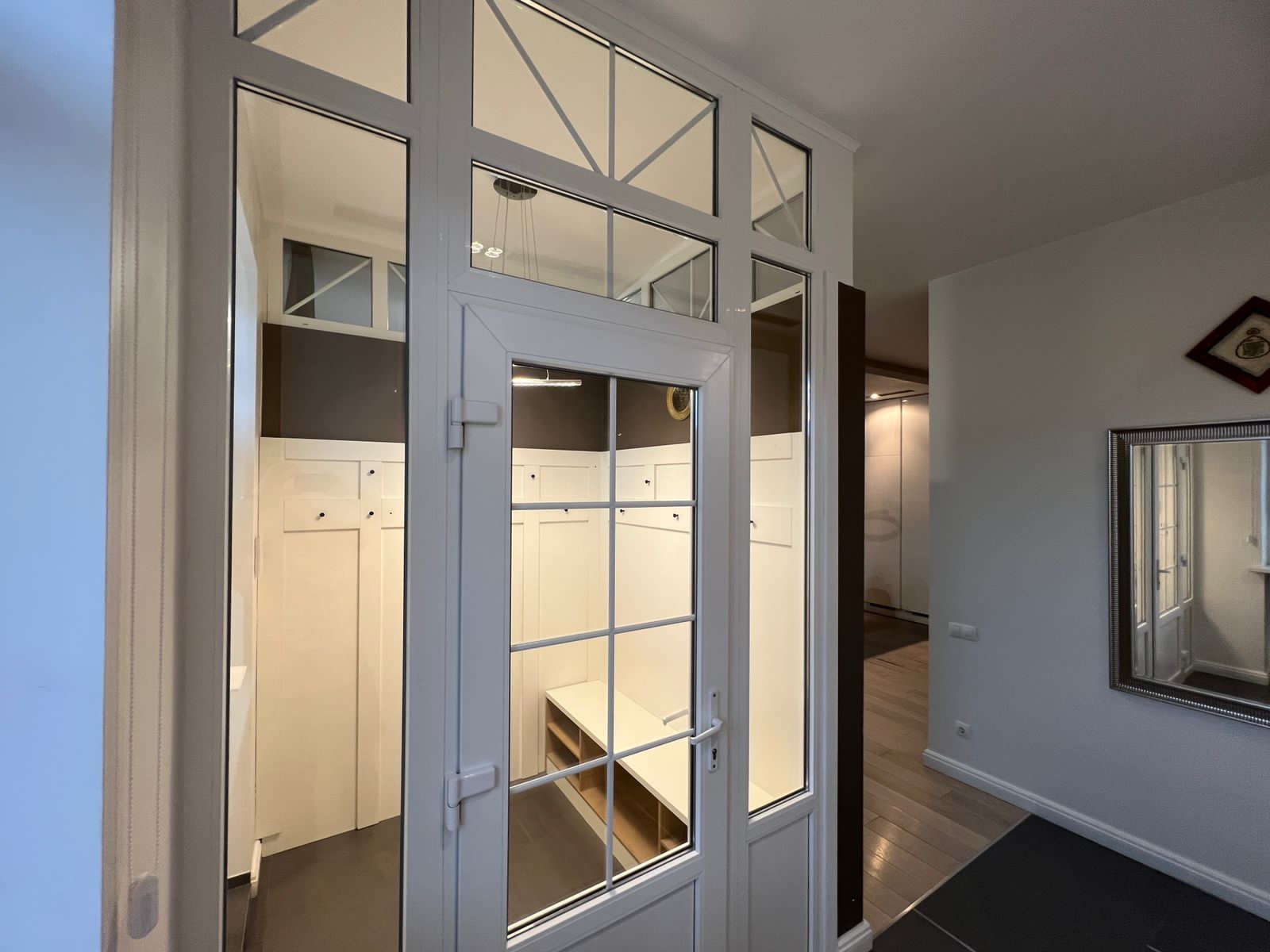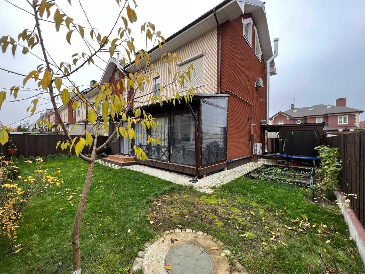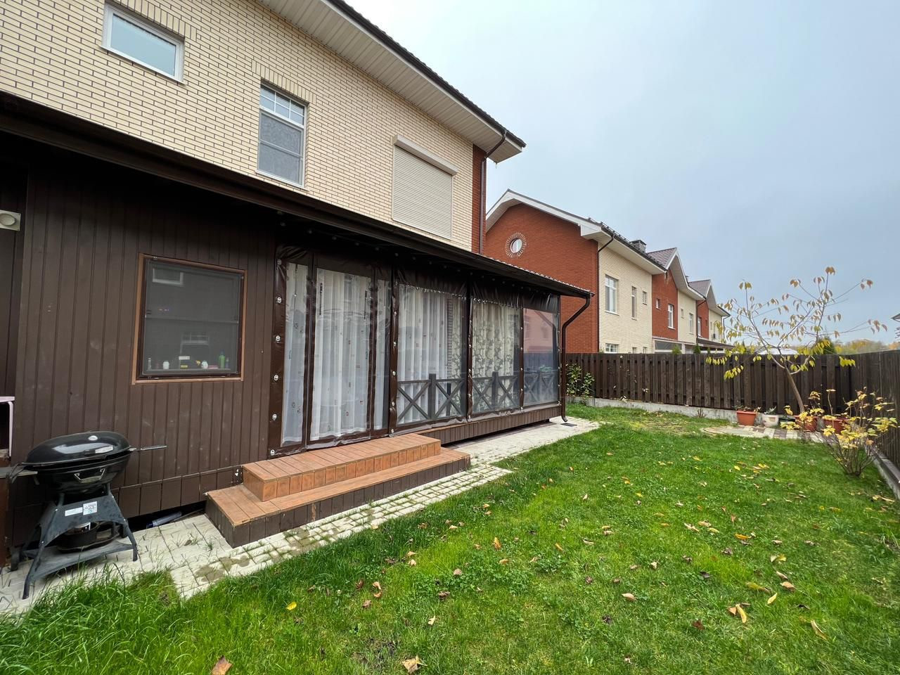 В доме поменяны все окна. На окнах 2-го этажа установлены жалюзи, в т.ч. электрический. Под таунхаусом и всем участком установлена дренажная система, стены фундамента утеплены. На участке установлен большой батут диаметр 3 метра. Разборный каркасный бассейн на 6000 л. с системой фильтрации. Круглосуточная охраняемая территория поселка, спортивные и игровые площадки, онлайн камеры видеонаблюдения. Развитая инфраструктура (школа, детсады, аптеки,магазины, кафе, спортивный комплекс).