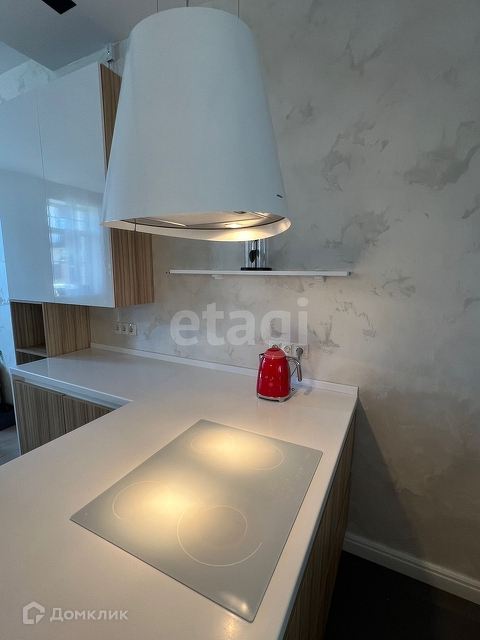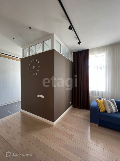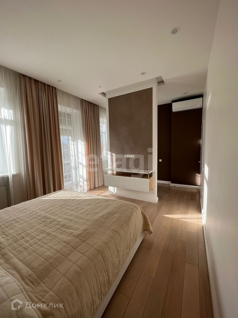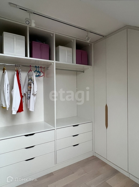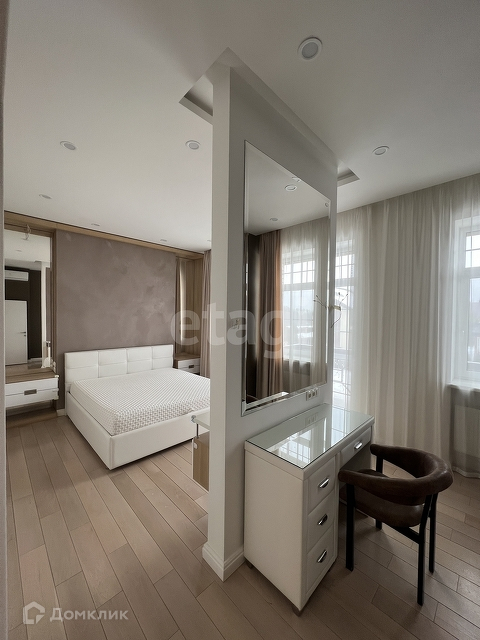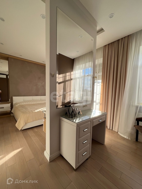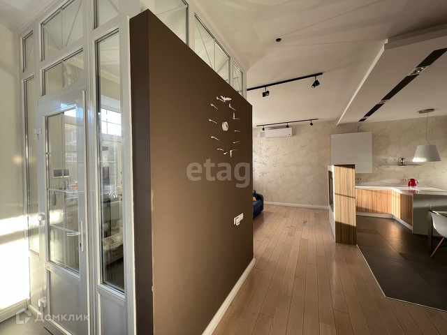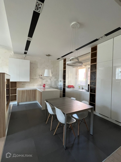 Все стены крашенные, отделка декор штукатуркой. На полу инженерная доска, плитка с теплым полом. Вся мебель (шкафы, тумбы) и техника встроенная.