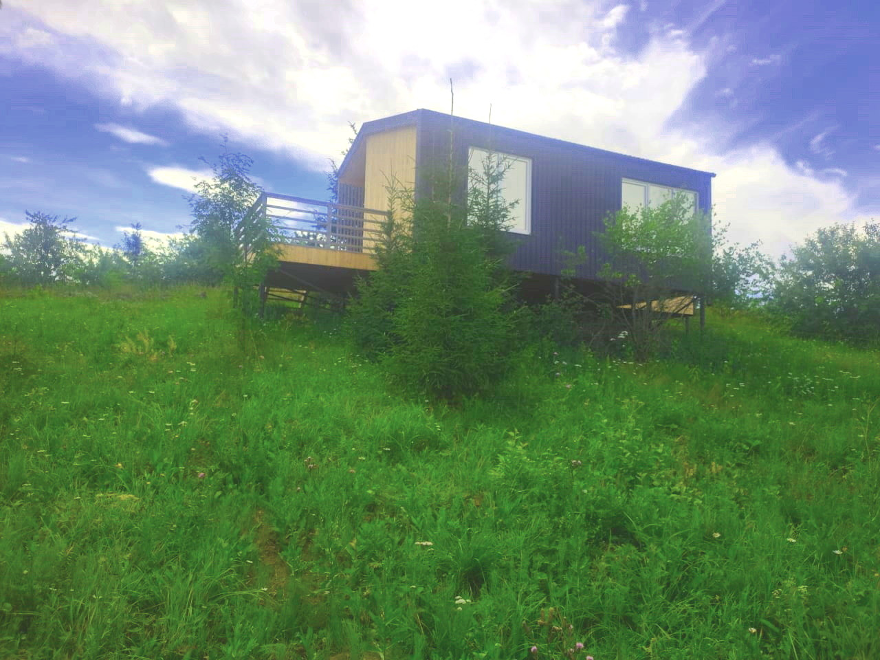 Истринский г.о., д.Мартюшино, предлагается дом с террасой общей площадью 72 кв.м. на участке 6 соток под садоводство. Дом одноэтажный, каркасный, на свайном фундаменте. Утепление пола и потолка составляет 200мм, стен 150мм, высота потолков 3,5 м, снаружи отделка лиственница, внутри сосна. Планировка: кухня - гостиная, 2 спальни, санузел, холл. Дом располагается на возвышении, поэтому через панорамные окна открываются виды лесных пейзажей и окрестностей.