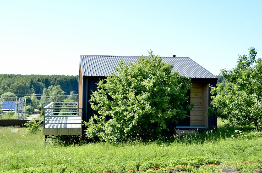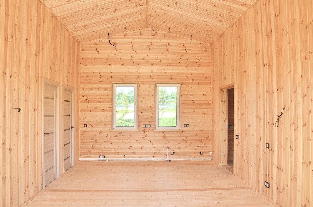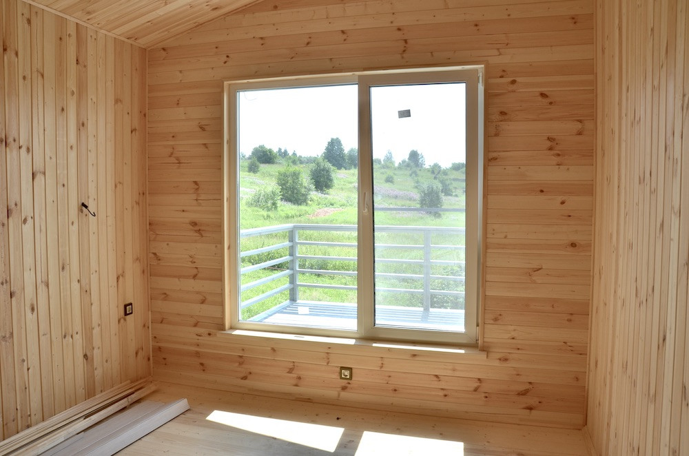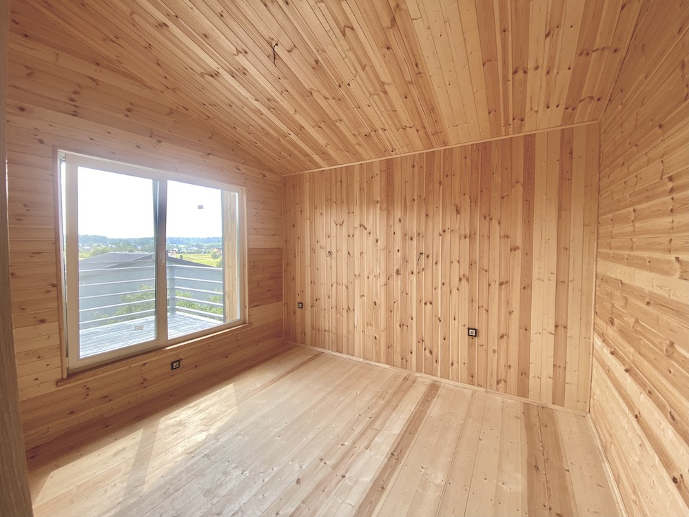 Фасады, подшивы свесов кровли, терраса, отделка стен и потолков - дерево.