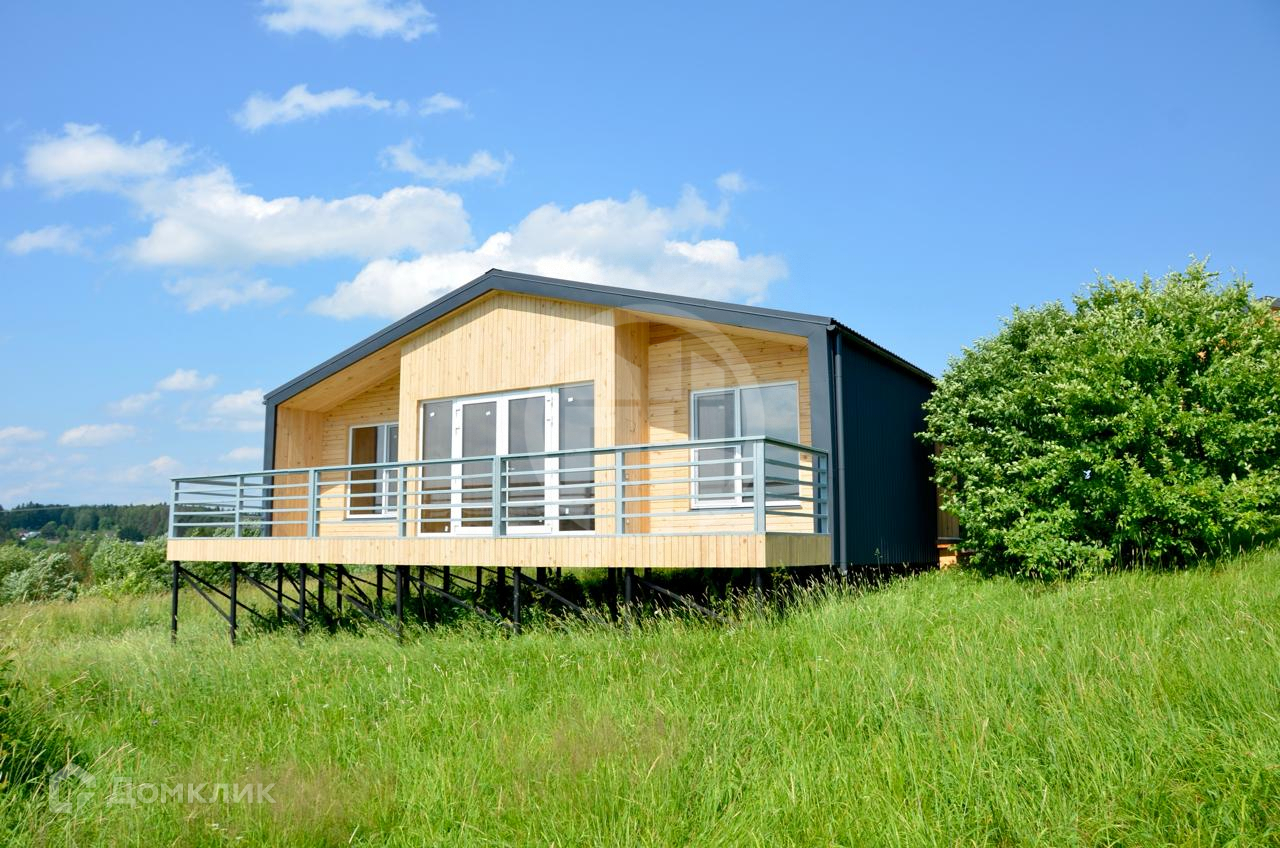 Продается загородный дом с террасой и с панорамными окнами. Высота потолков 4 метра! До с просторной гостиная 26 кв м с кухней 2 спальни.