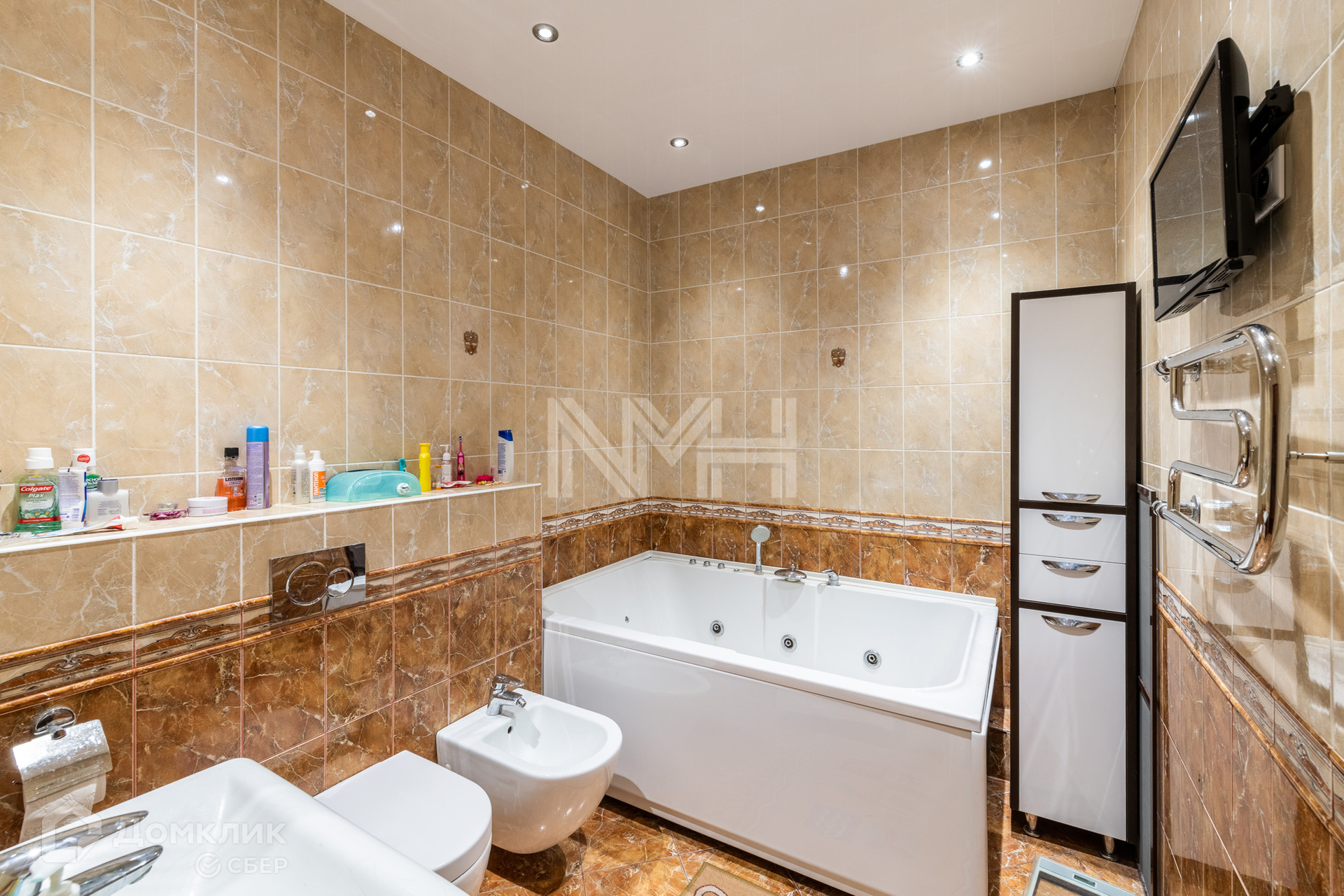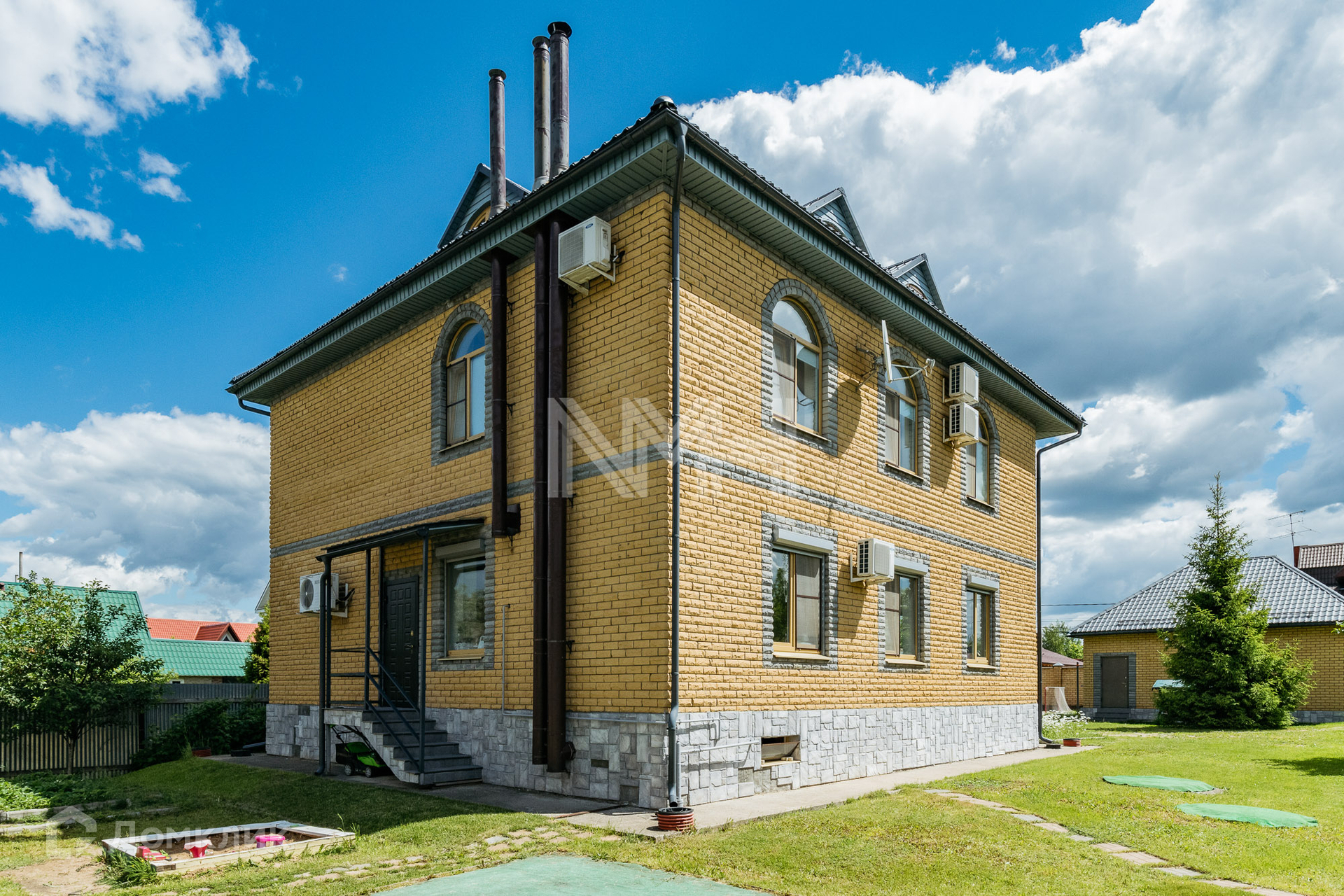 Конструктив: фундамент монолитный/ленточный, стены — кирпич, кровля — металлочерепица. Выполнена внутренняя отделка. На первом этаже оборудован теплый пол. Окна первого этажа оборудованы рольставнями.