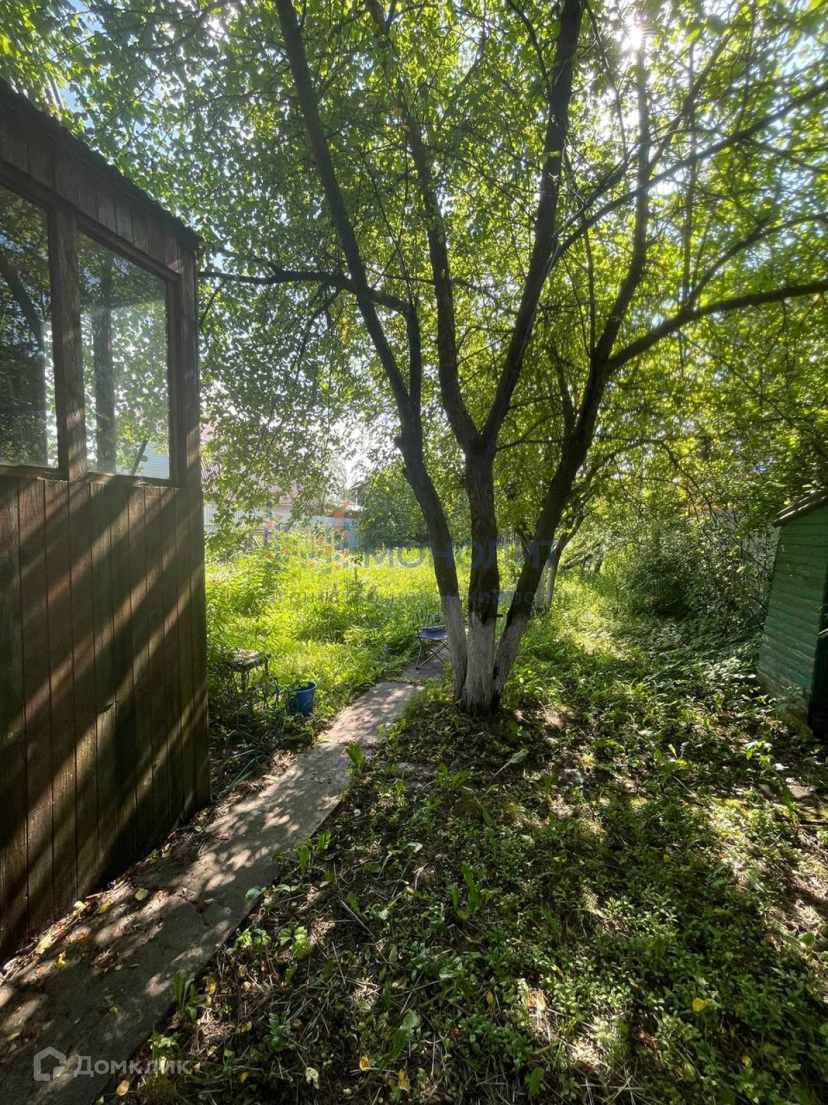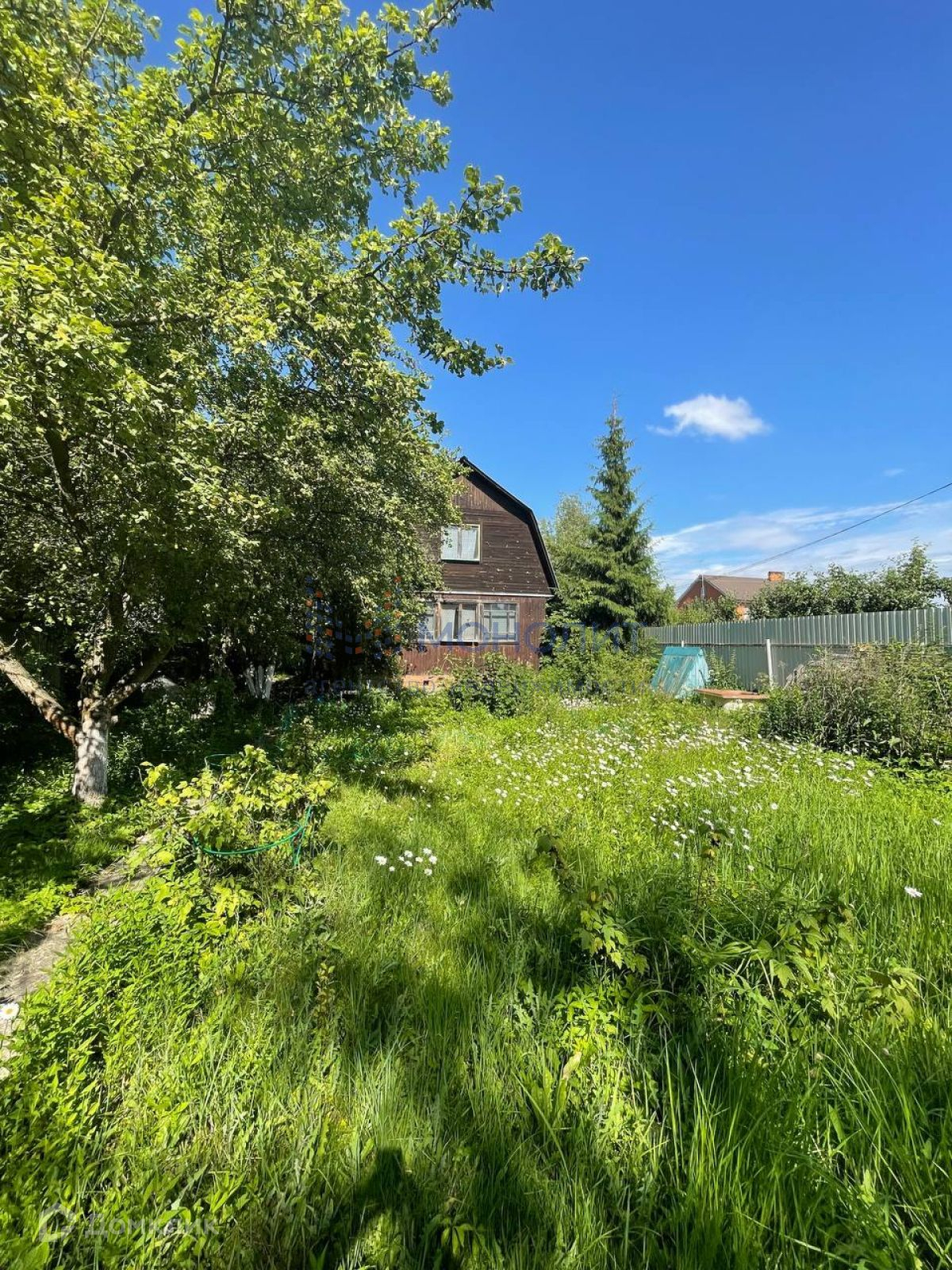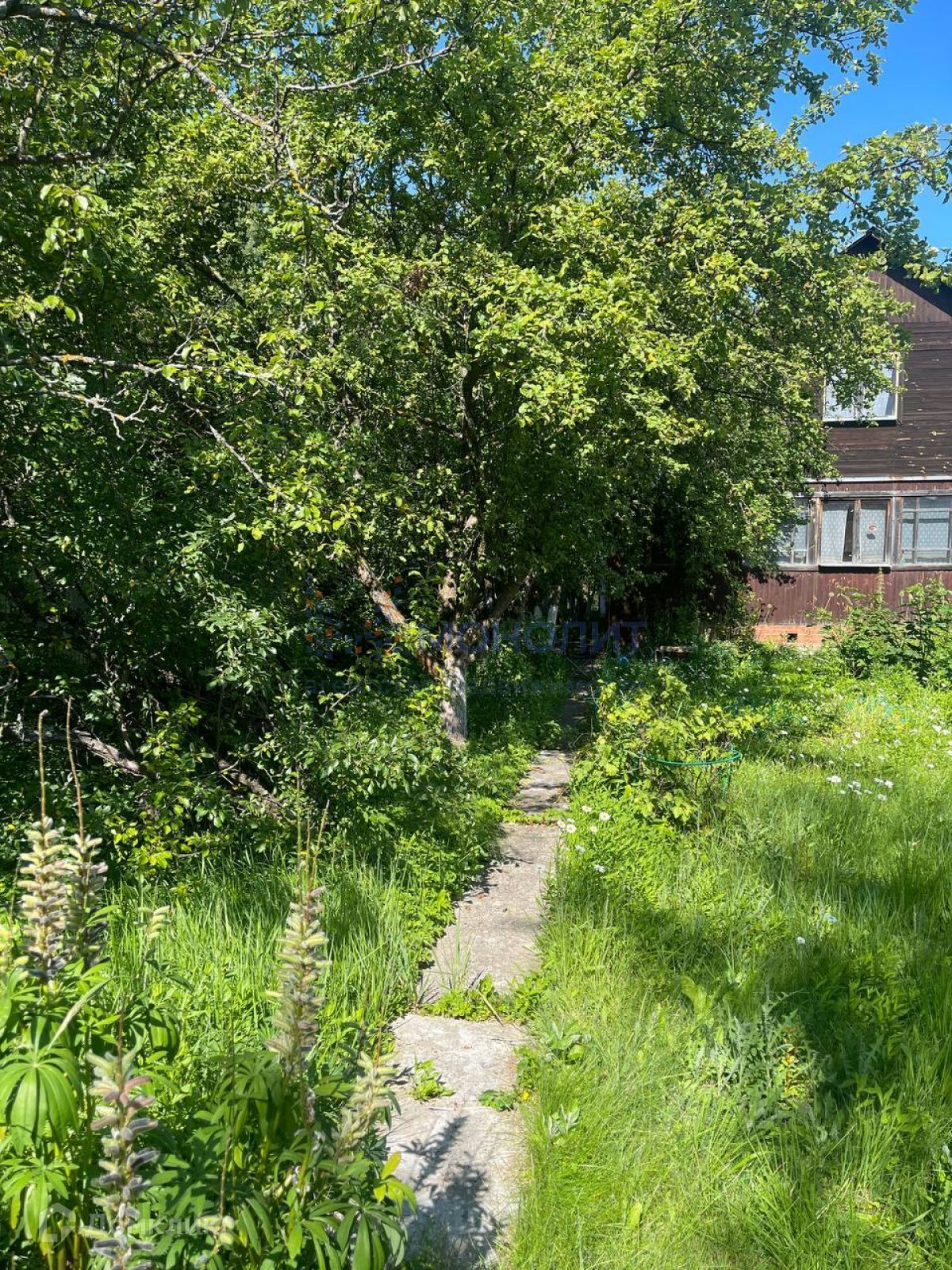 Дом расположен на участке площадью 6 соток. На участке расположено большое количество плодовых деревьев (яблони, груши, сливы, вишня, черешня, ирга и т.д.) так же кустарники (чёрная/белая/красная смородина, ежевика, малина, орешник и т.д.)