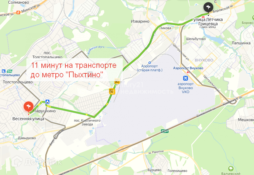Метро "Аэропорт Внуково" в 6-ти минутах езды на машине