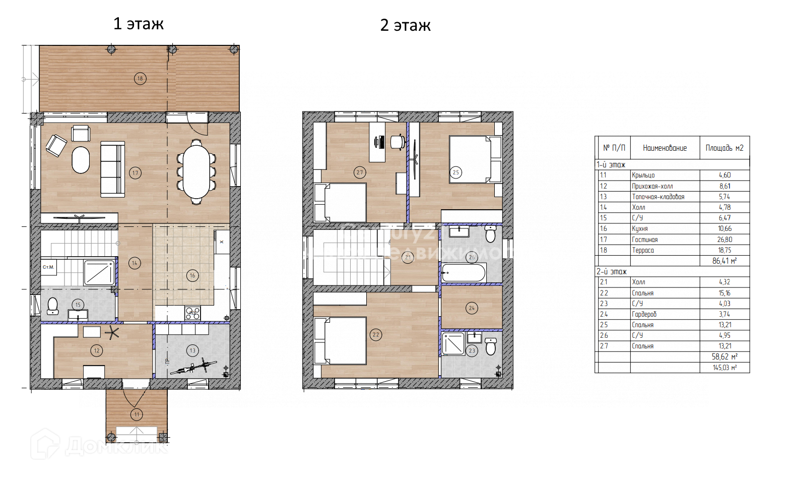 Большая кухня-гостиная, 3 санузла, гардеробная, терраса