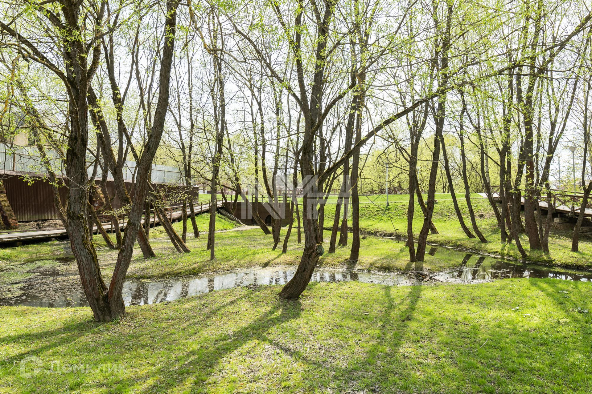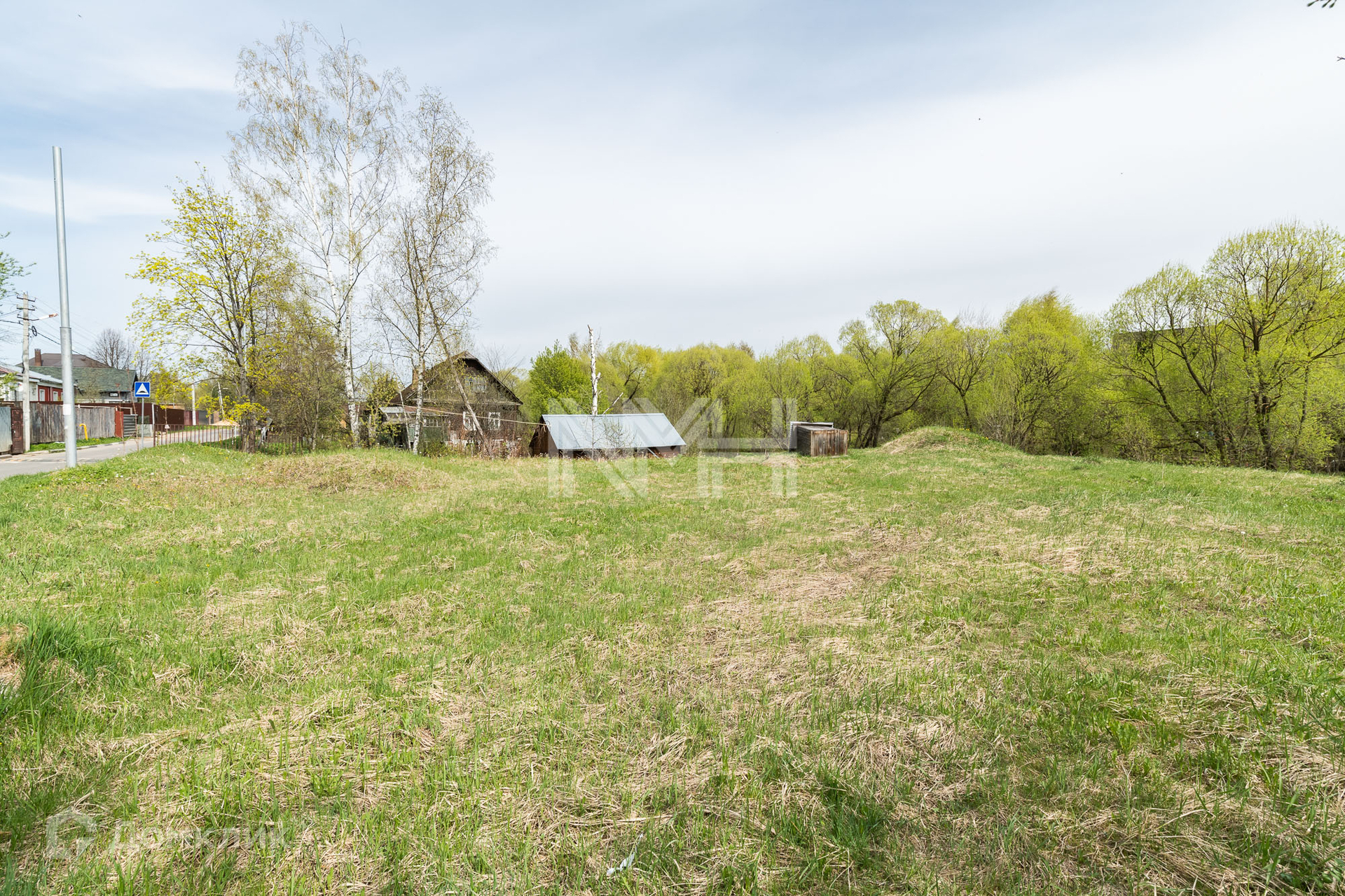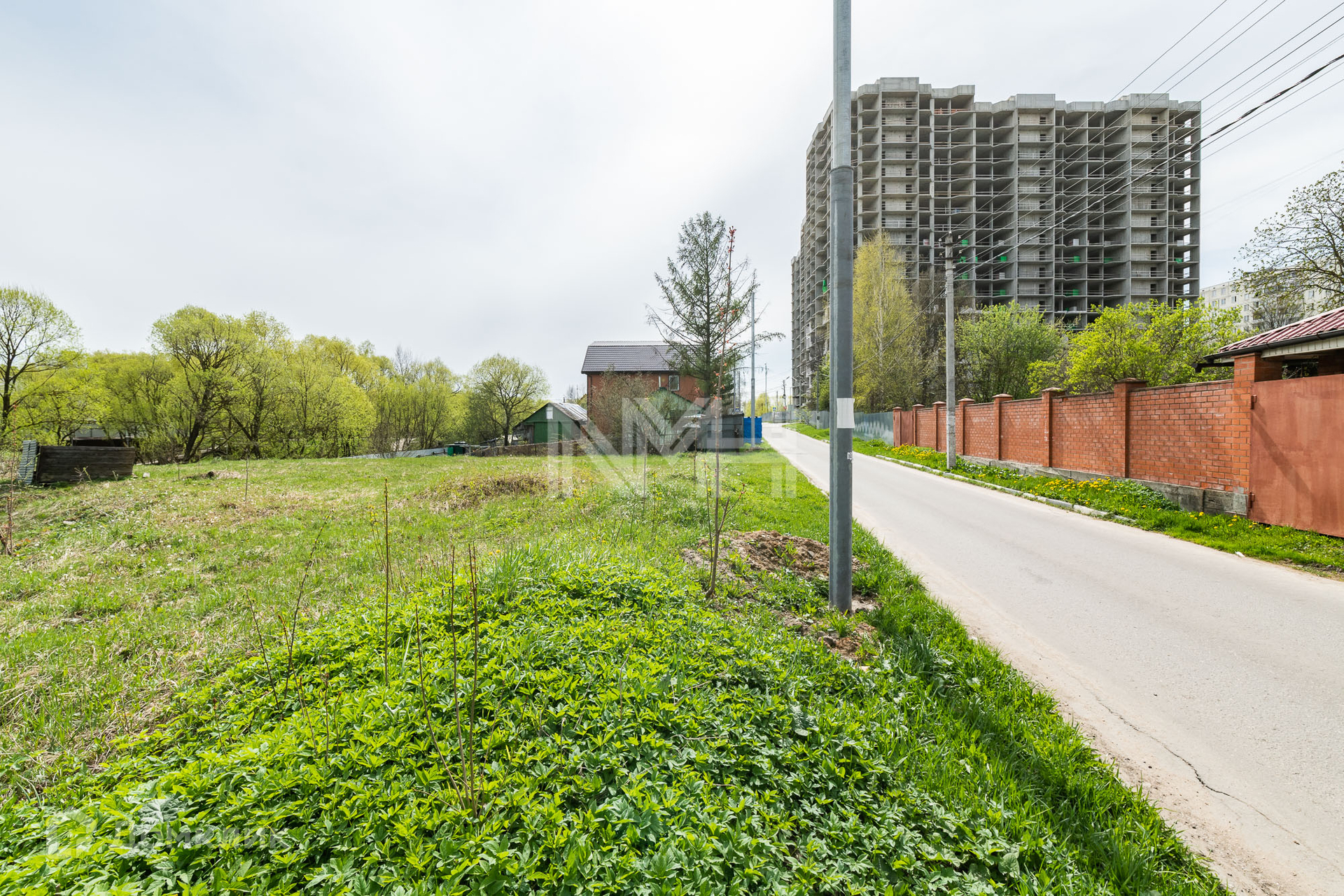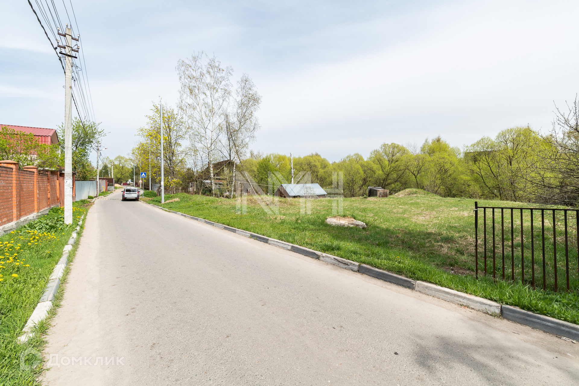 Участок правильной формы, без насаждений, обнесен забором с 3 сторон и видом на парк. На участке расположена хозяйственная постройка.