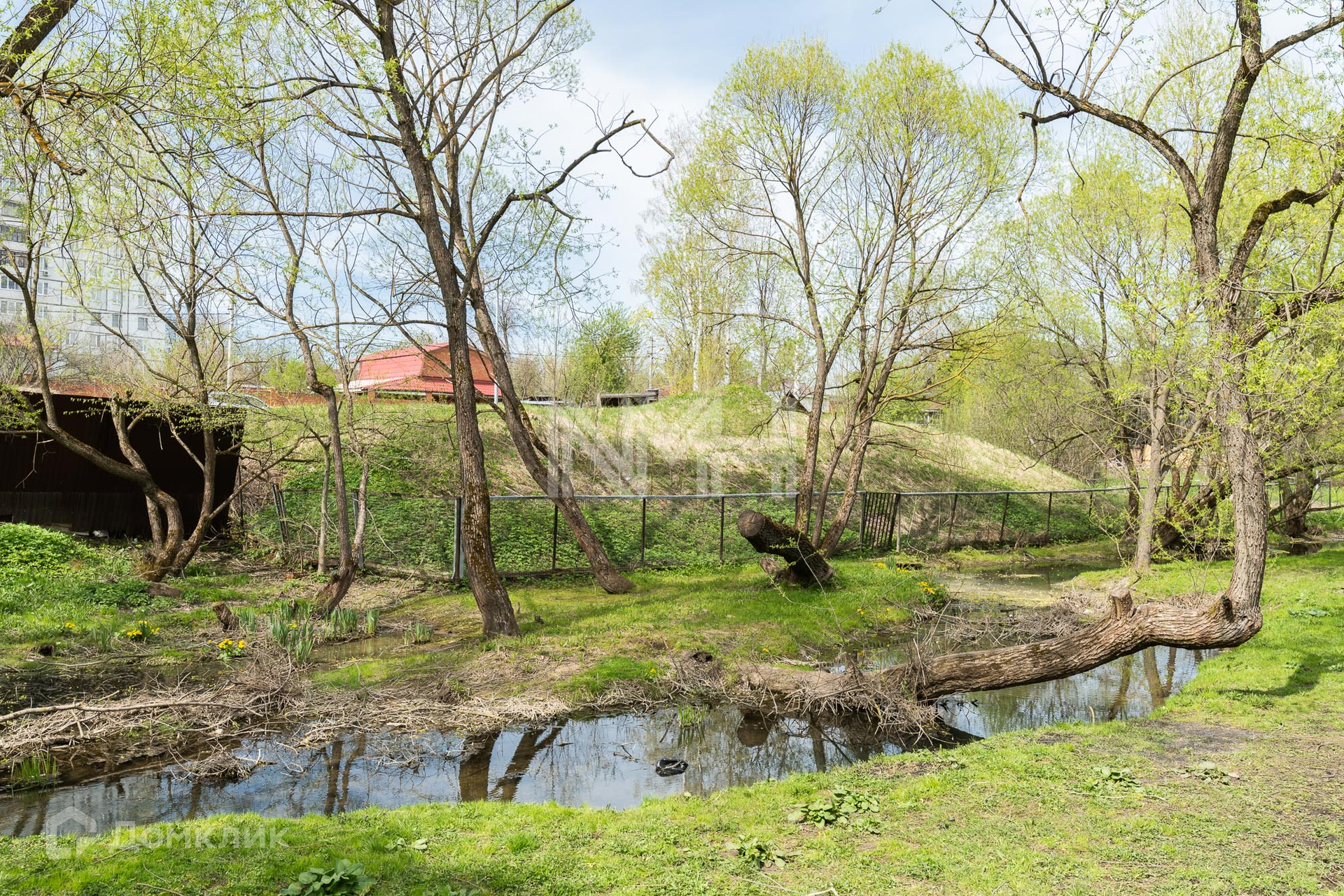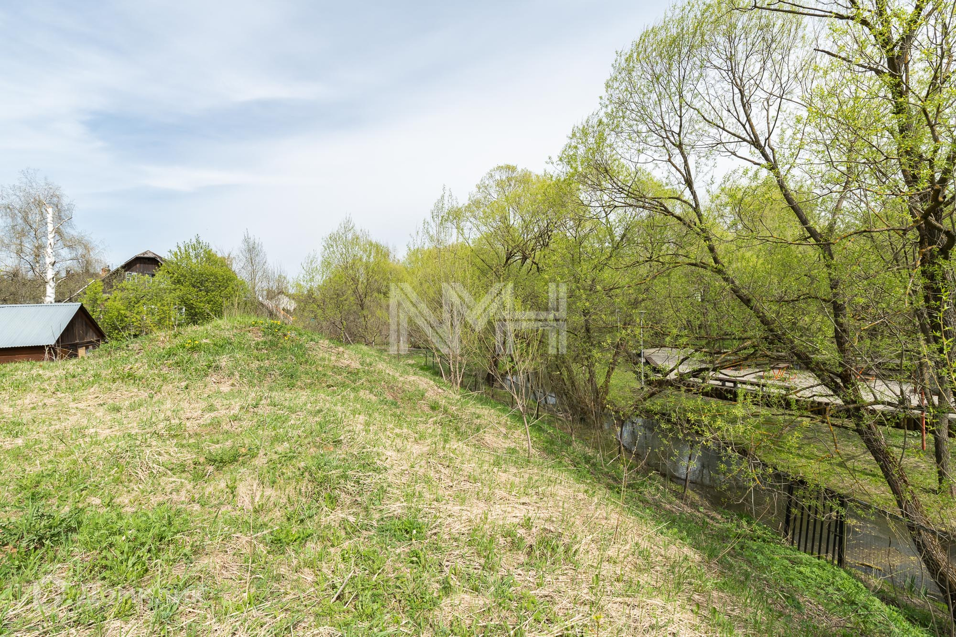 По границе участка протекает ручей, за ним оборудован парк Ручеек (есть возможность обустройства собственного выхода в парк). Участок сухой, высокий, выравнивался привозной землей (грунт завозился под контролем собственника в 2012 году). Участок имеет нестандартный рельеф и богатые возможности для ландшафтного дизайна: основная часть участка выровнена и расположена на возвышенности (уровень выше соседних участков), по задней стороне резкий спуск в сторону ручья. Асфальтированный подъезд до участка, дорога обслуживается городскими коммунальными службами.